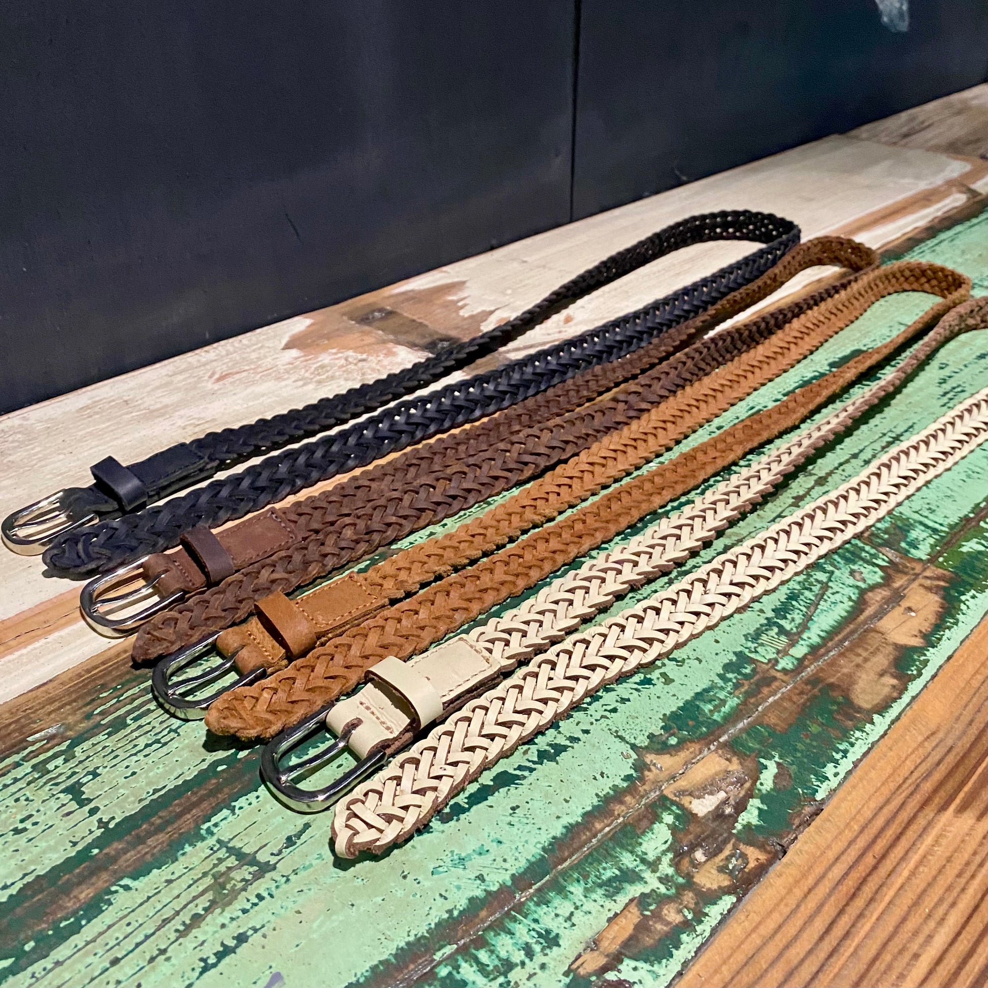 These belts in 2 styles has been individually hand plaited to create a stunning fashion accessory that teams perfectly with jeans, dresses or skirts. This strong leather in 4 different colours used creates a belt that you will have for a very long time. Being able to thread the buckle prong through any part of the belt means sizing can be more casual.