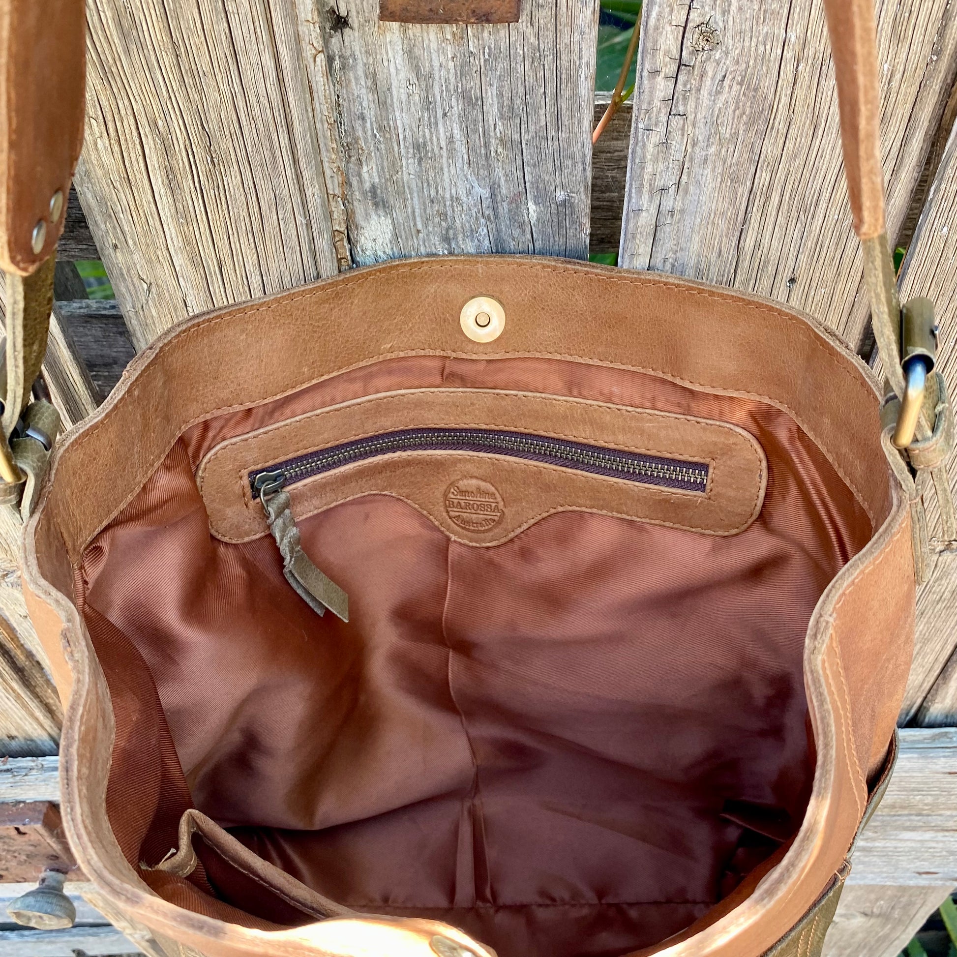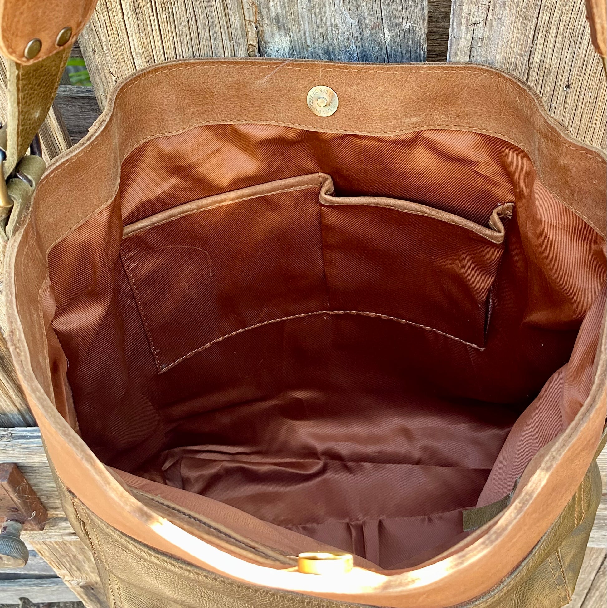 Having the choice of this delightful duo of olive and tan leather, this tote is as versatile as your go-to pair of jeans. Inside, you’ll find a robust drill lining, an internal zippered pocket, and two open pockets to keep your essentials neatly in check.