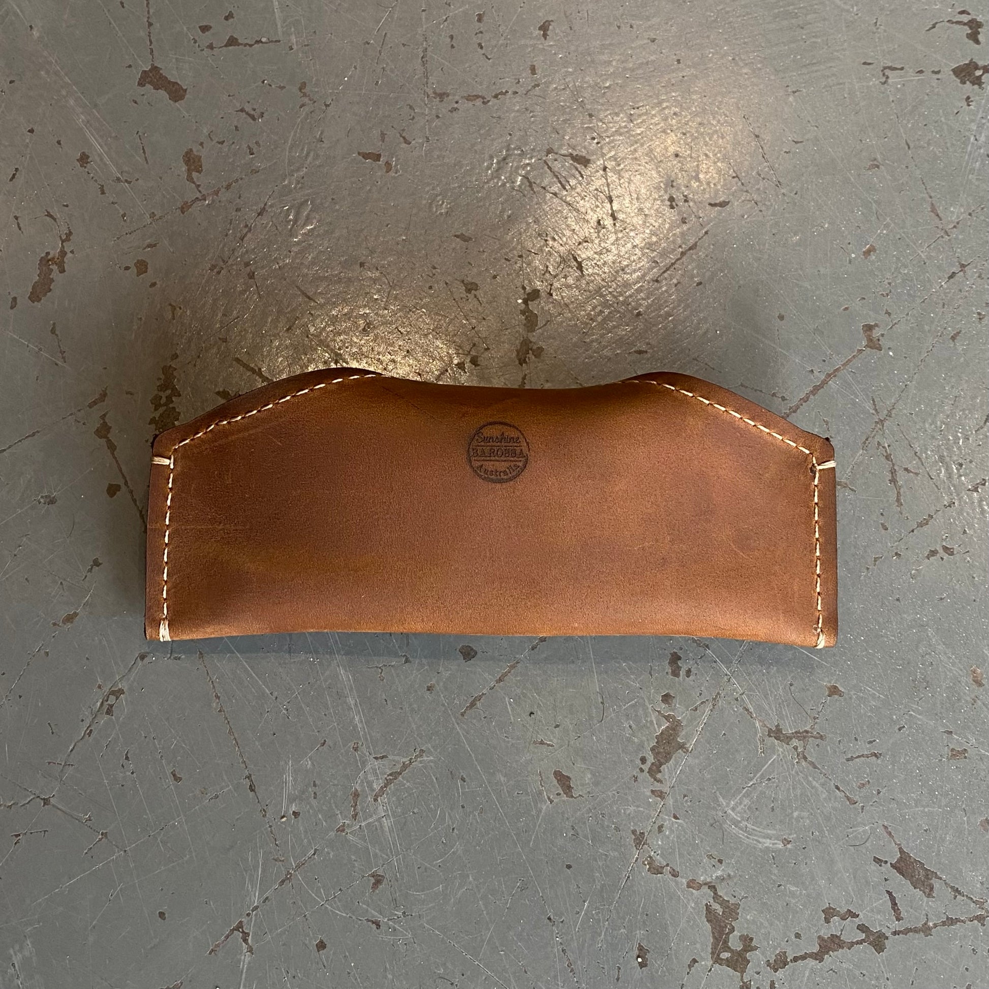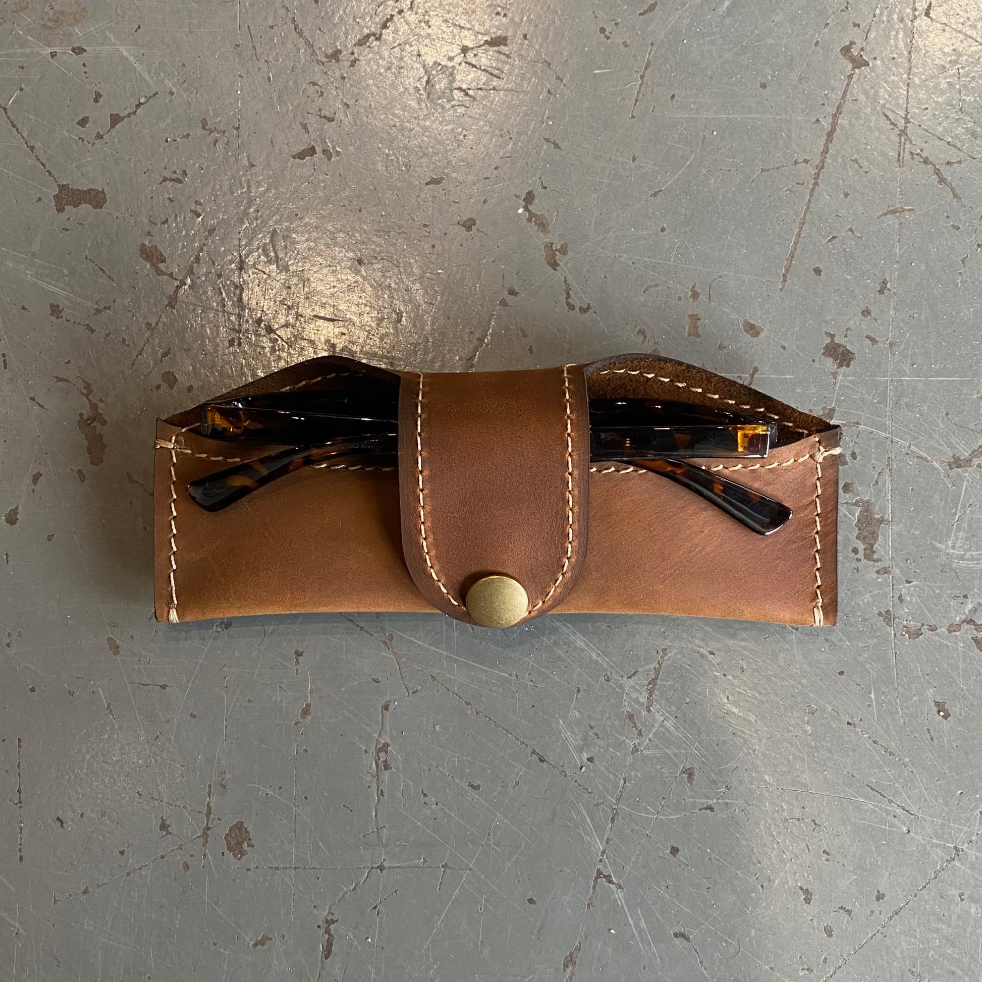 This is the most practical leather glasses holder Carol, owner of Sunshine Barossa, has made. With the way it wraps around the glasses to hold them into place and keep them flat shows its versatility. These pieces are suitable for anyone needing a smaller more practical way to house and transport their glasses.