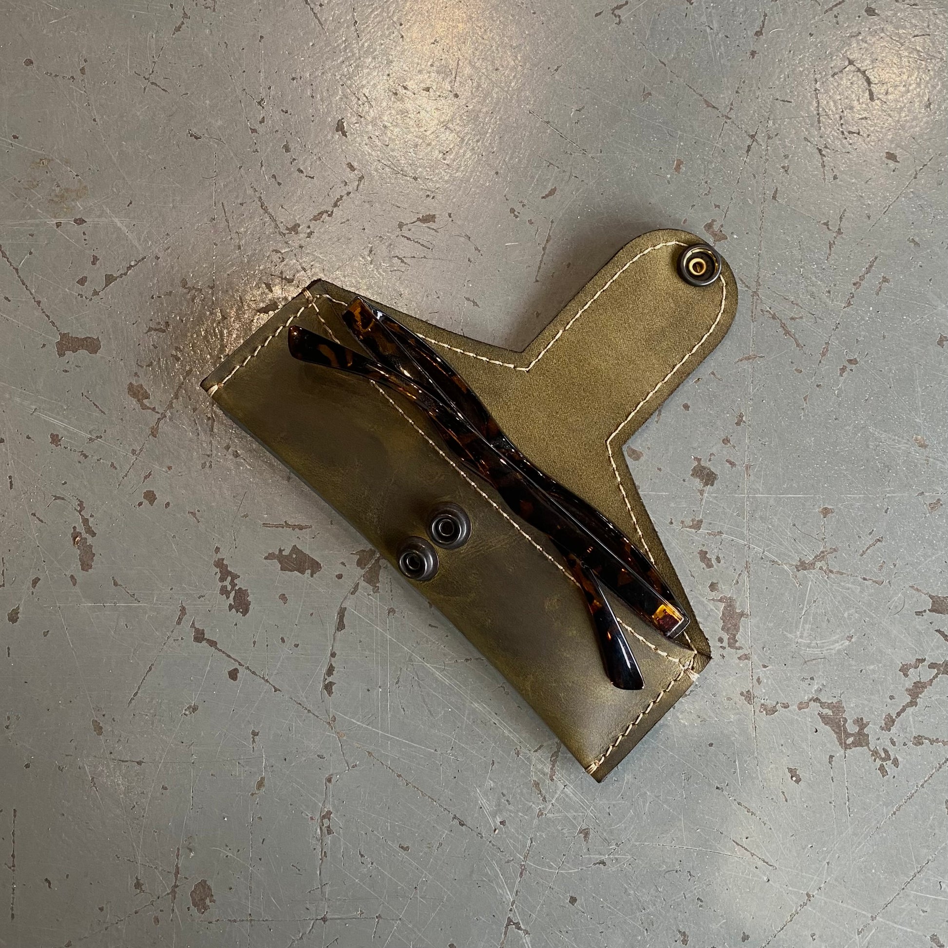 1. a small, portable thin leather sheath or outer covering for carrying or safekeeping your glasses.