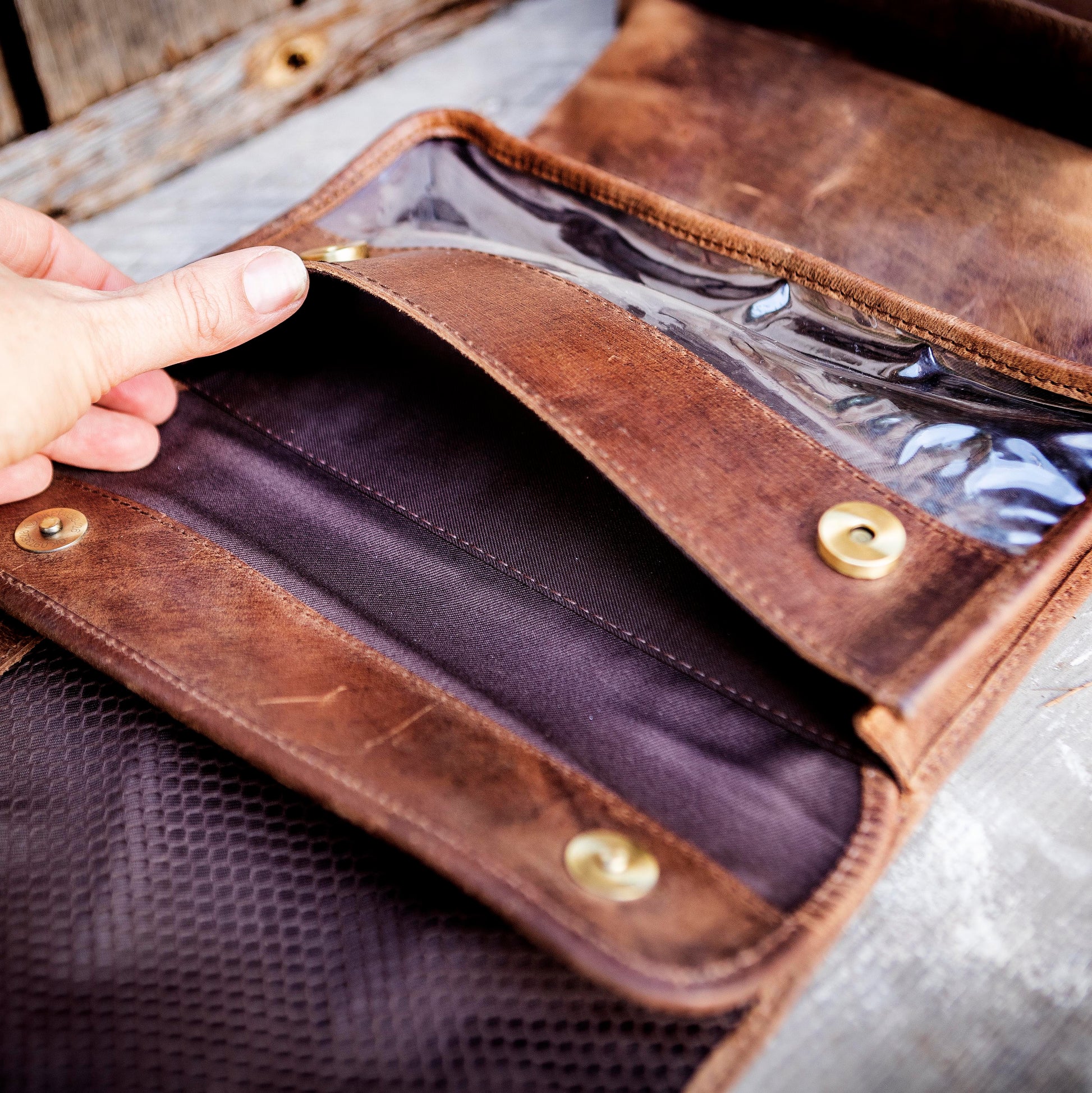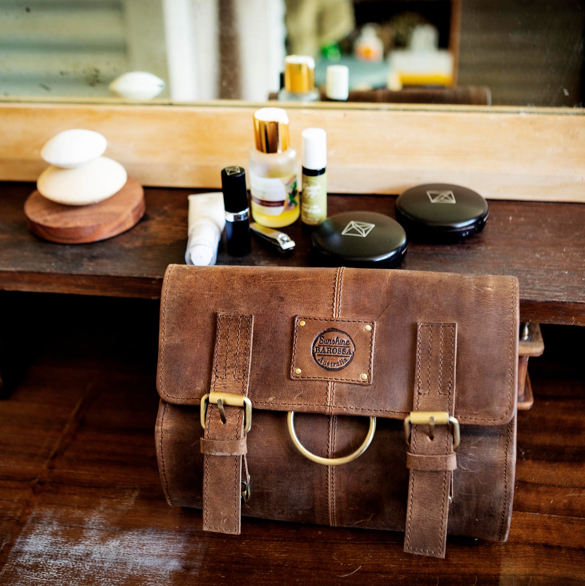 The Sunshine Barossa Buffalo Hide Leather Hanging Toiletry Roll is the toiletry travel bag that makes transporting and using your personal care products away from home a breeze. Crafted from durable buffalo leather with a gorgeous vintage-look, this bag is strong and sturdy, and with a little care, it will be travelling with you for years and years to come.