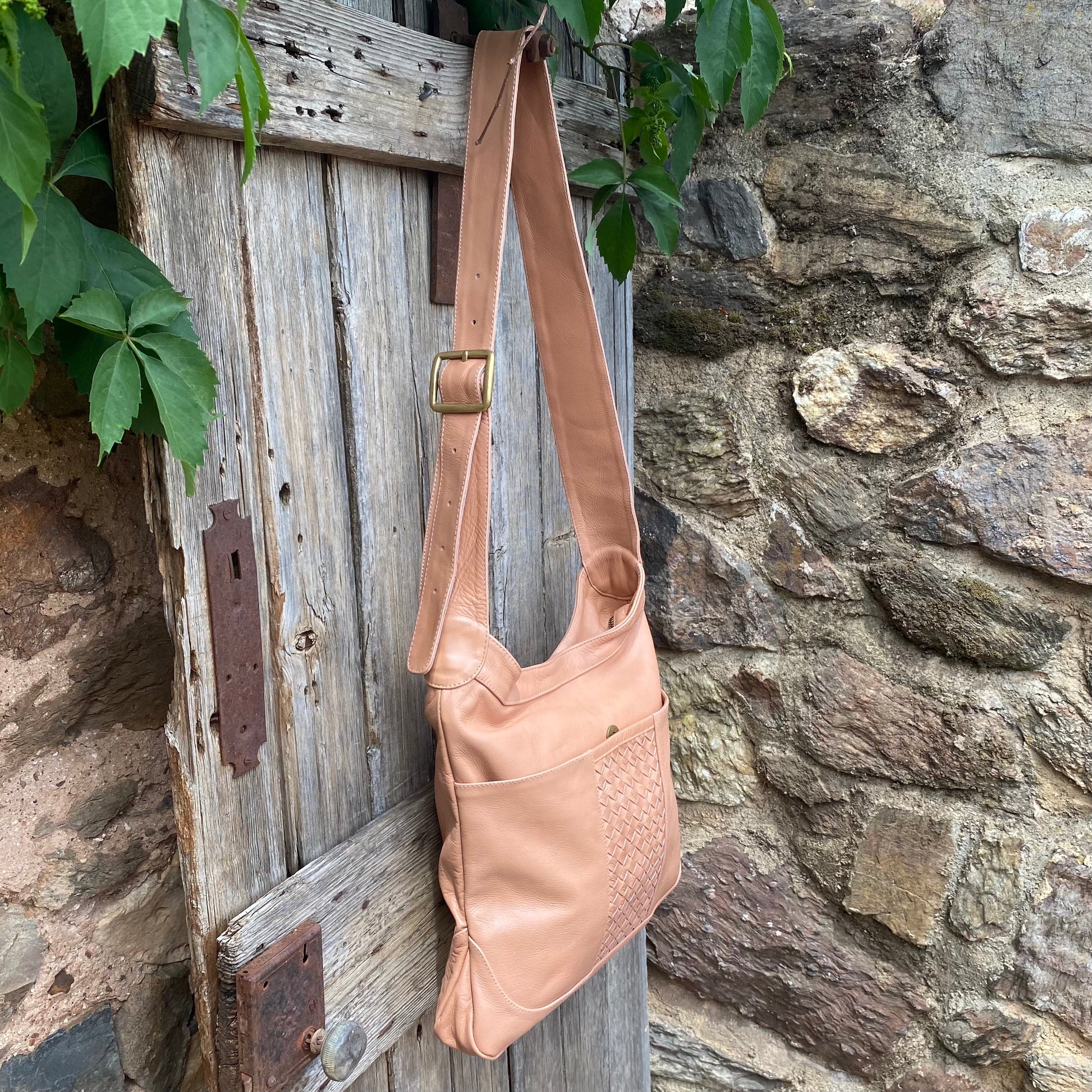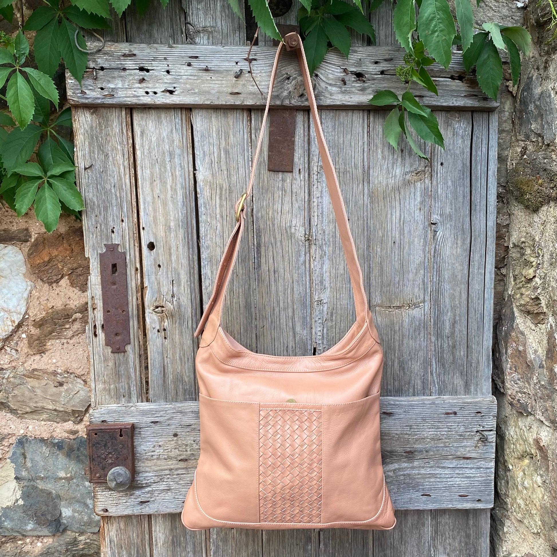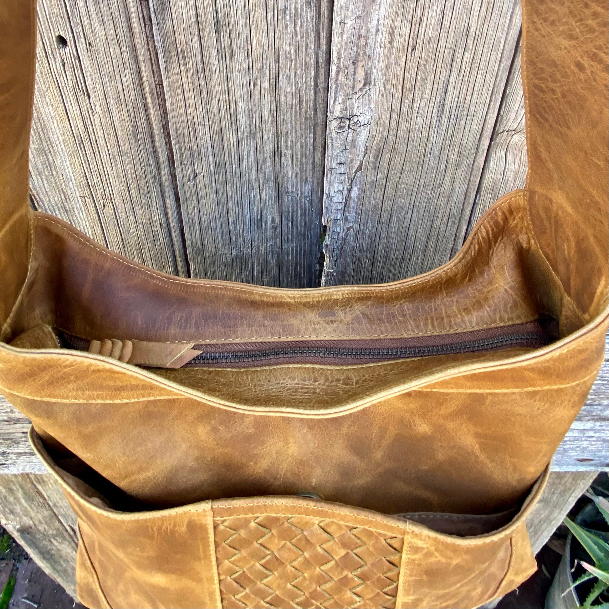 1. A large leather handbag inspired by the importance of comfort with a wide strap with a stunning weave on the front panel.