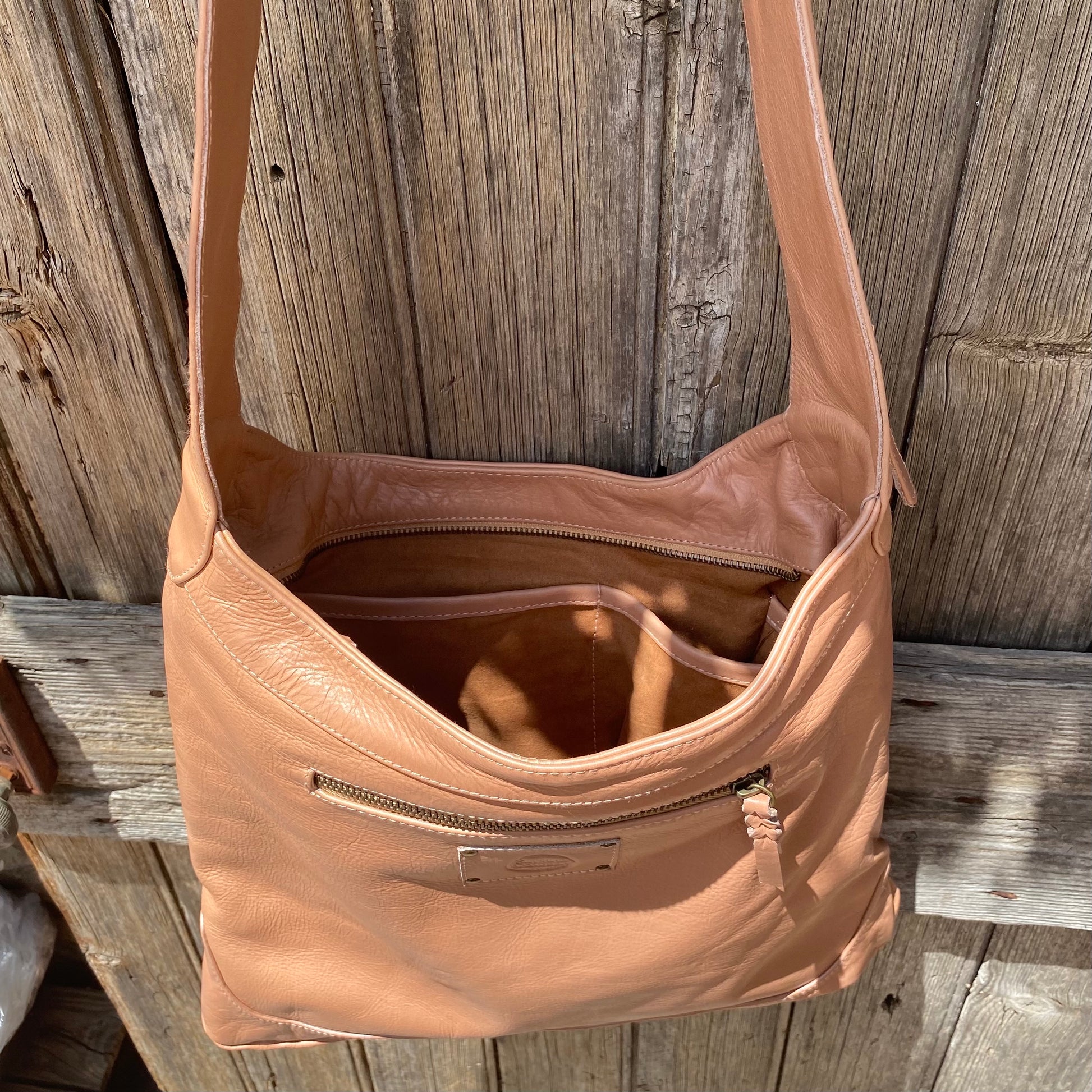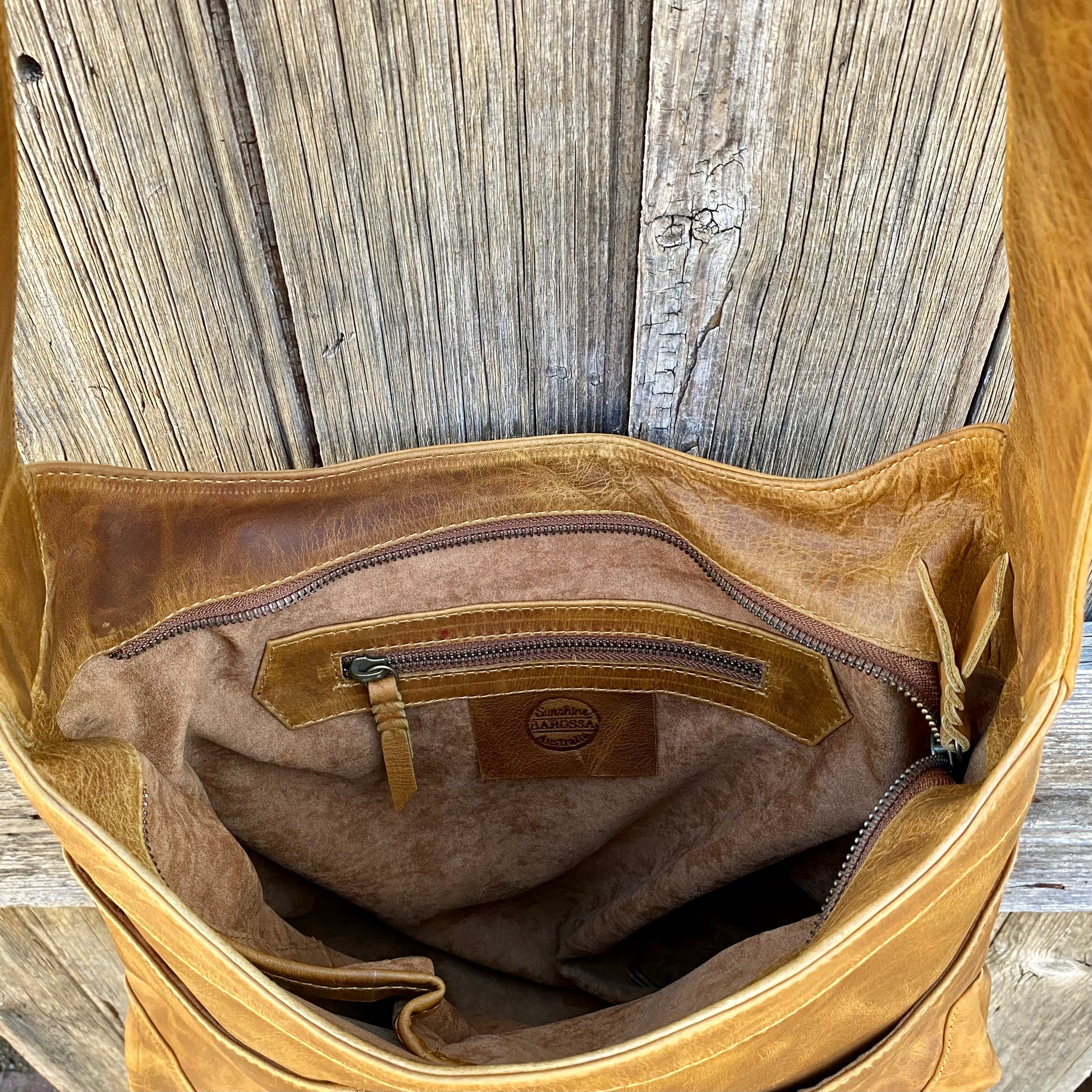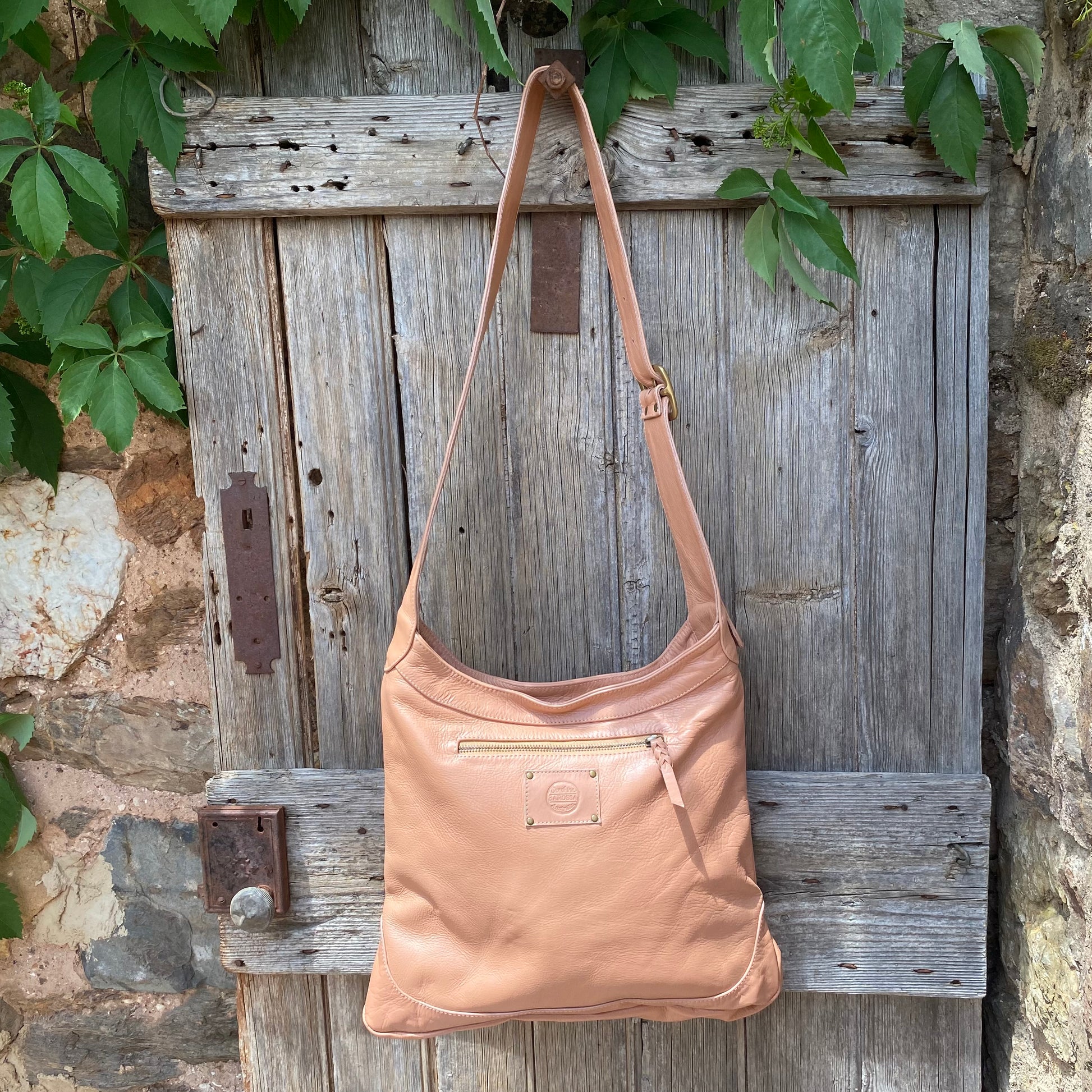 The long, adjustable by an antique brass buckle, the shoulder strap is wide and soft, making it very comfortable to wear. The bag hangs just below the hip, giving a nice relaxed look and feel. Turn the bag around and you’ll find a deep zippered pocket and the Sunshine Barossa logo on the rear.