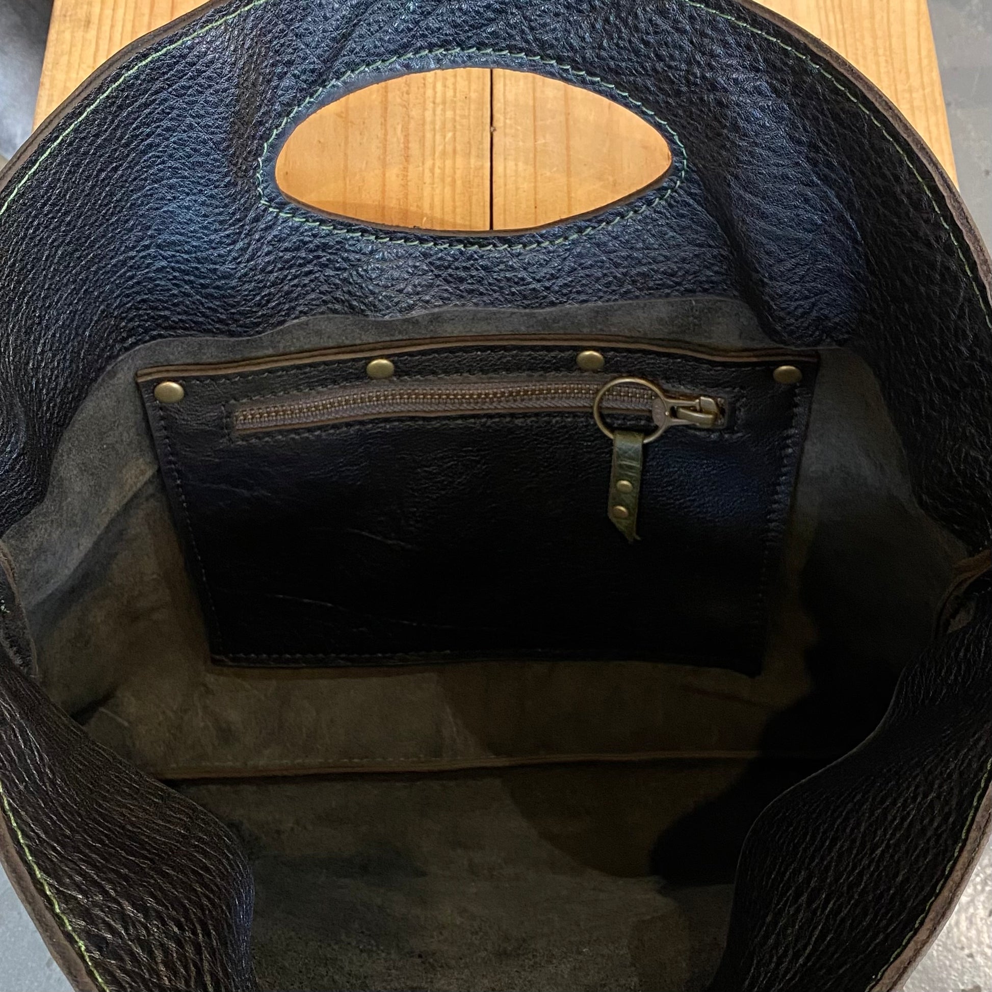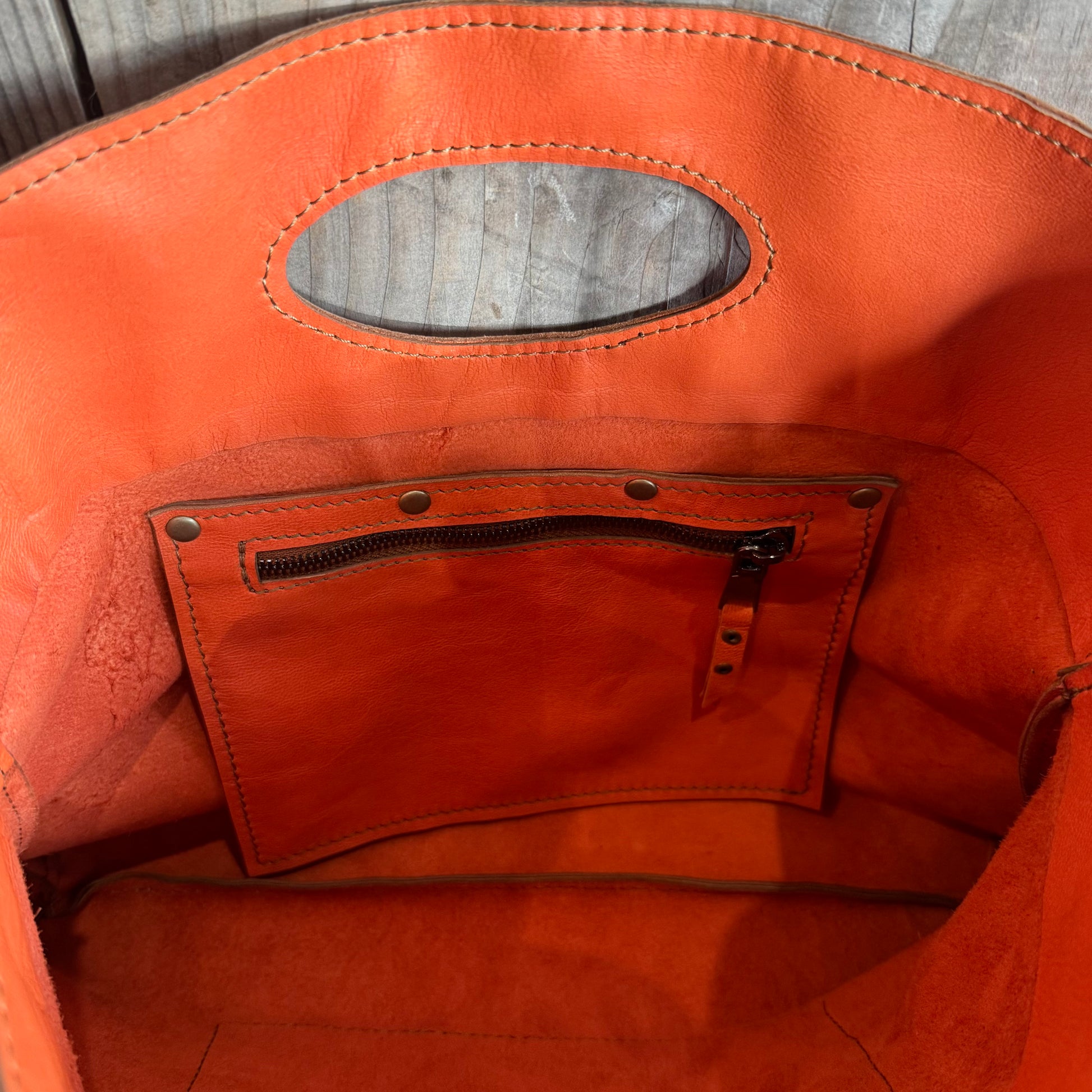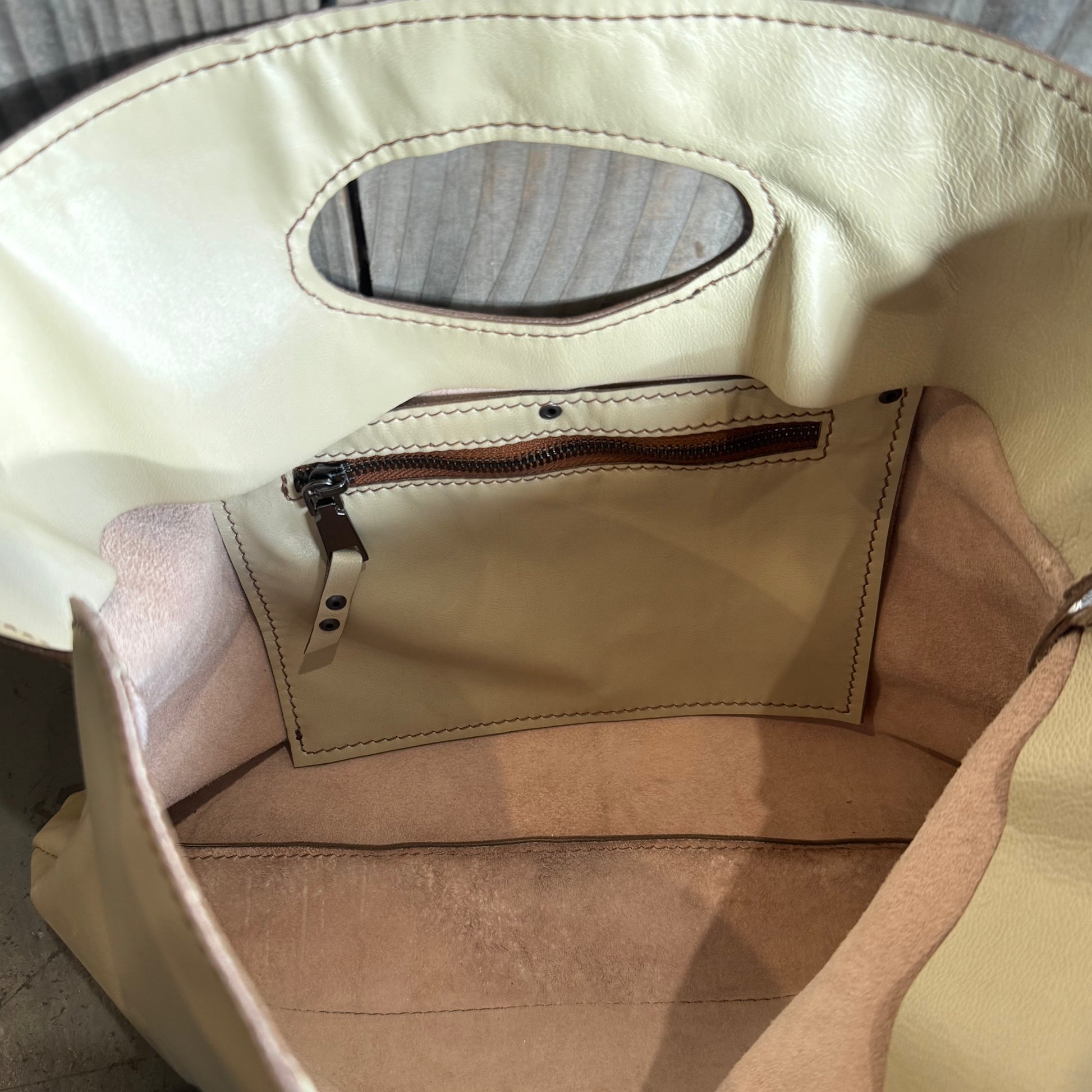 Internal zippered pocket 20.5cm w x 13d / zipper opening 16cm wide