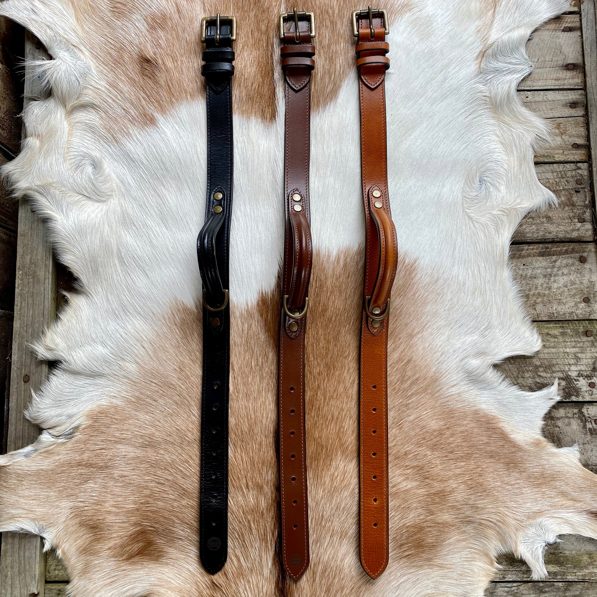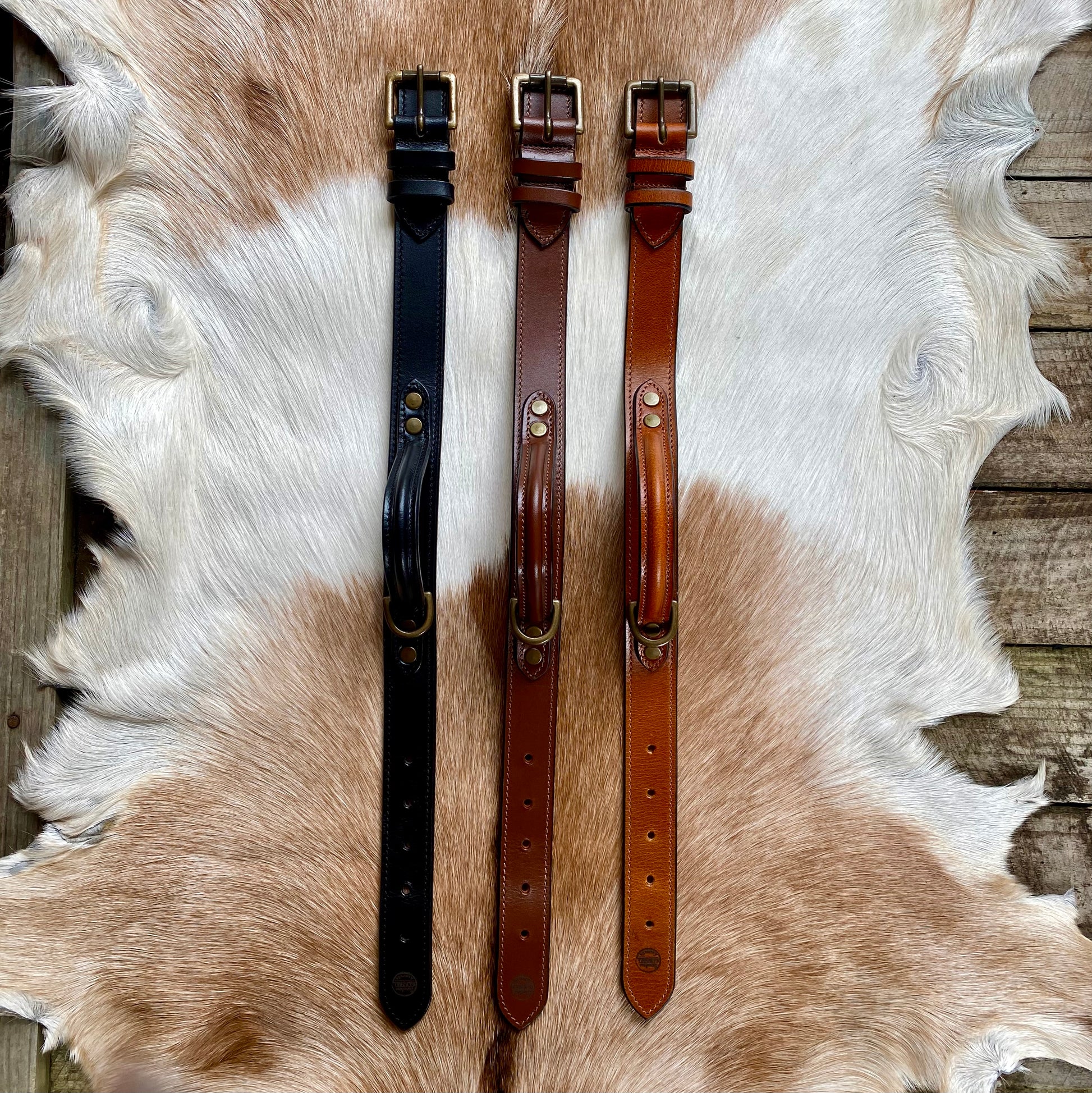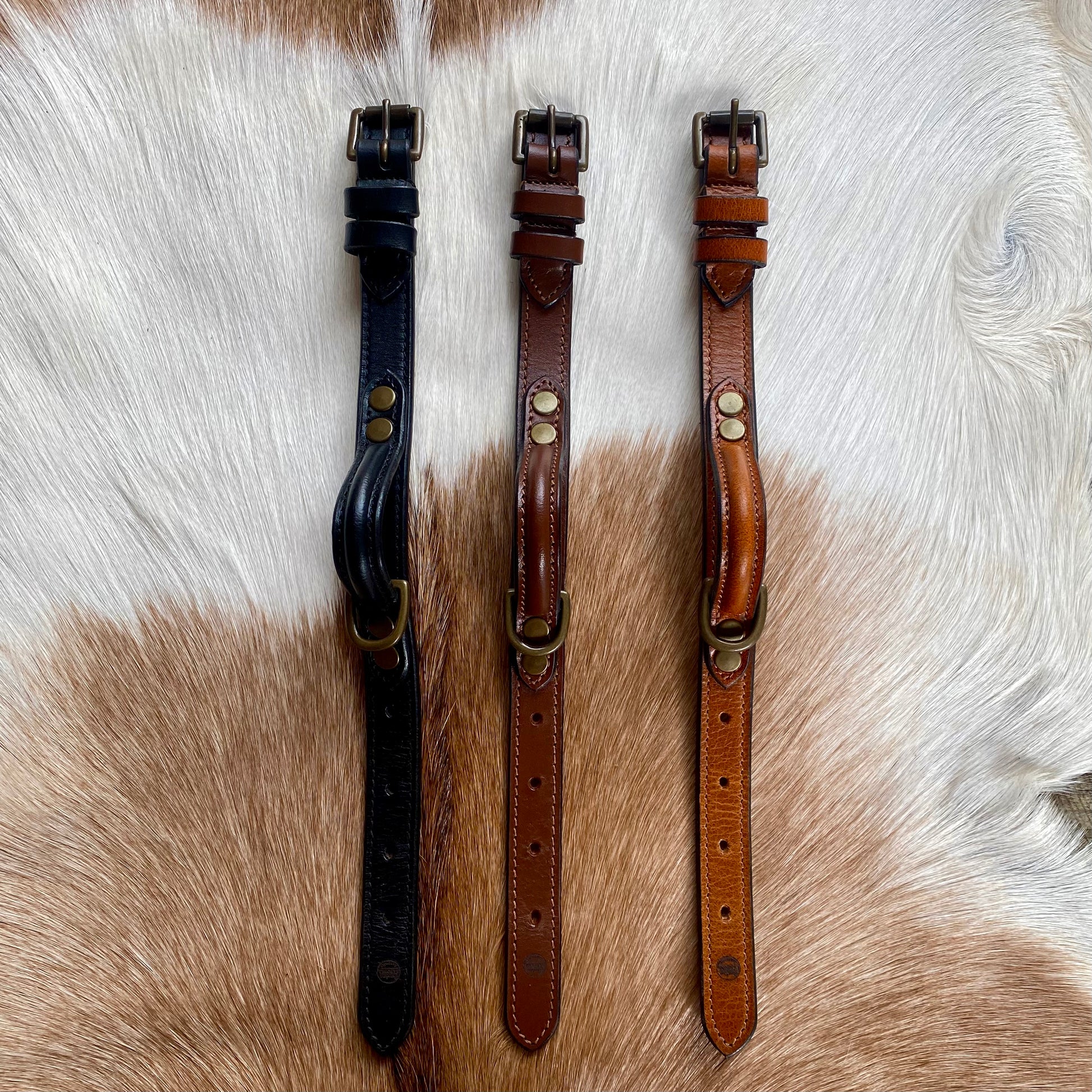 Introducing Our Dog Collar Collection – a perfect blend of style, toughness, and craftsmanship tailored to meet all your furry friend’s needs. Choose between the classic Black, the earthy charm of Rustic Brown, and the refreshing tone of Tan all adorned with beautiful antique brass hardware.