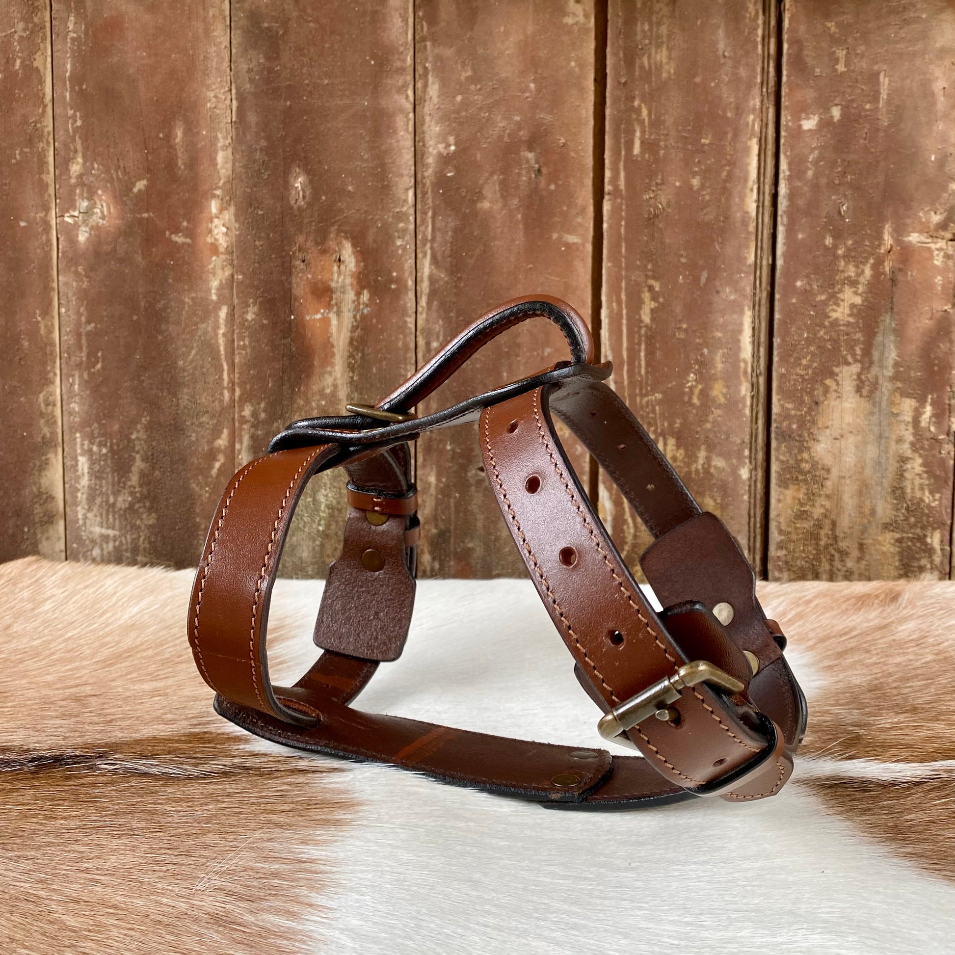 Introducing Our Dog Harness Collection - a blend of style, strength, and sophistication designed to cater to your pup’s every need. Choose between the classic appeal of Black or the earthy charm of Rustic Brown, both beautifully accented with antique brass hardware. Our harnesses, crafted with the finest saddlery leather and inspired by time spent on a horse stud, embody a distinctive mark of top-notch craftmanship.