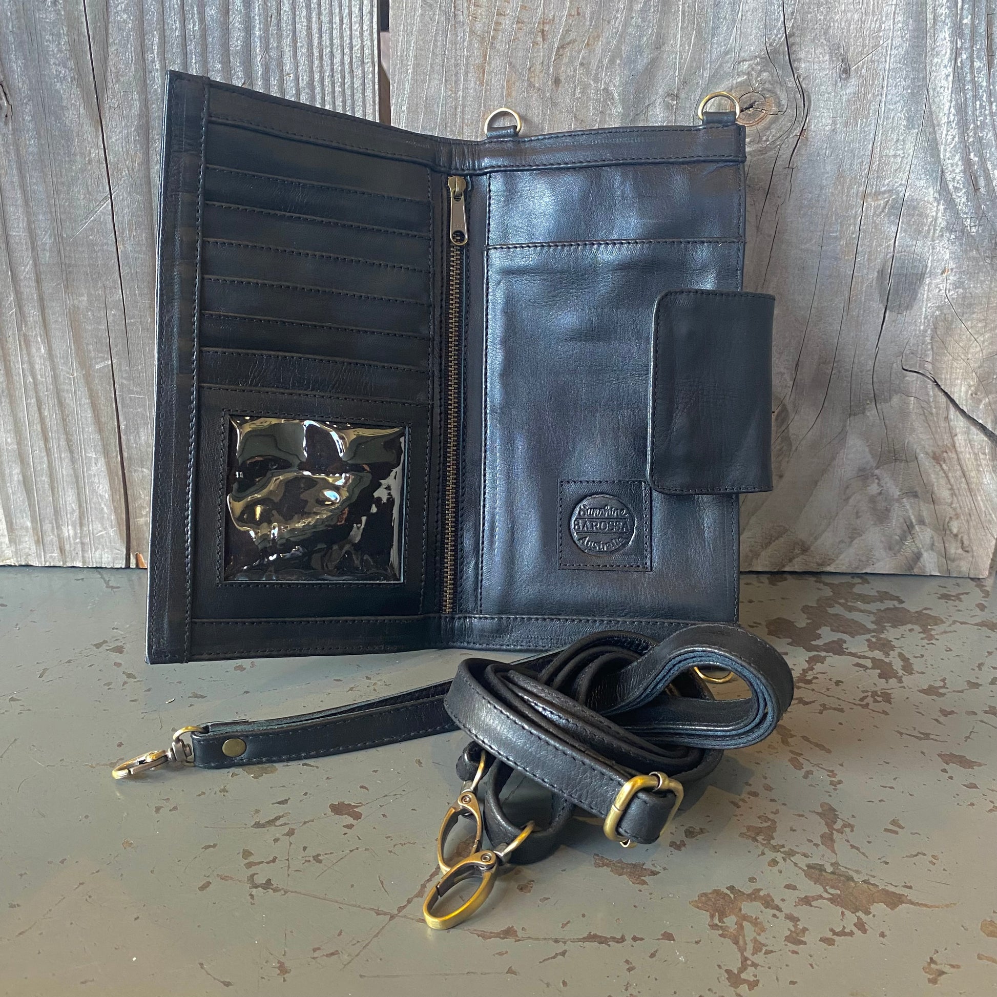 This compact, handy addition is for those who like a do all wallet, that can store your phone, cards and keys in it's various pockets, yet holds together in an easy, comfortable size. It can be slung over your shoulder with it's long adjustable strap, or opt for an accessible wrist strap instead. The choice is yours.