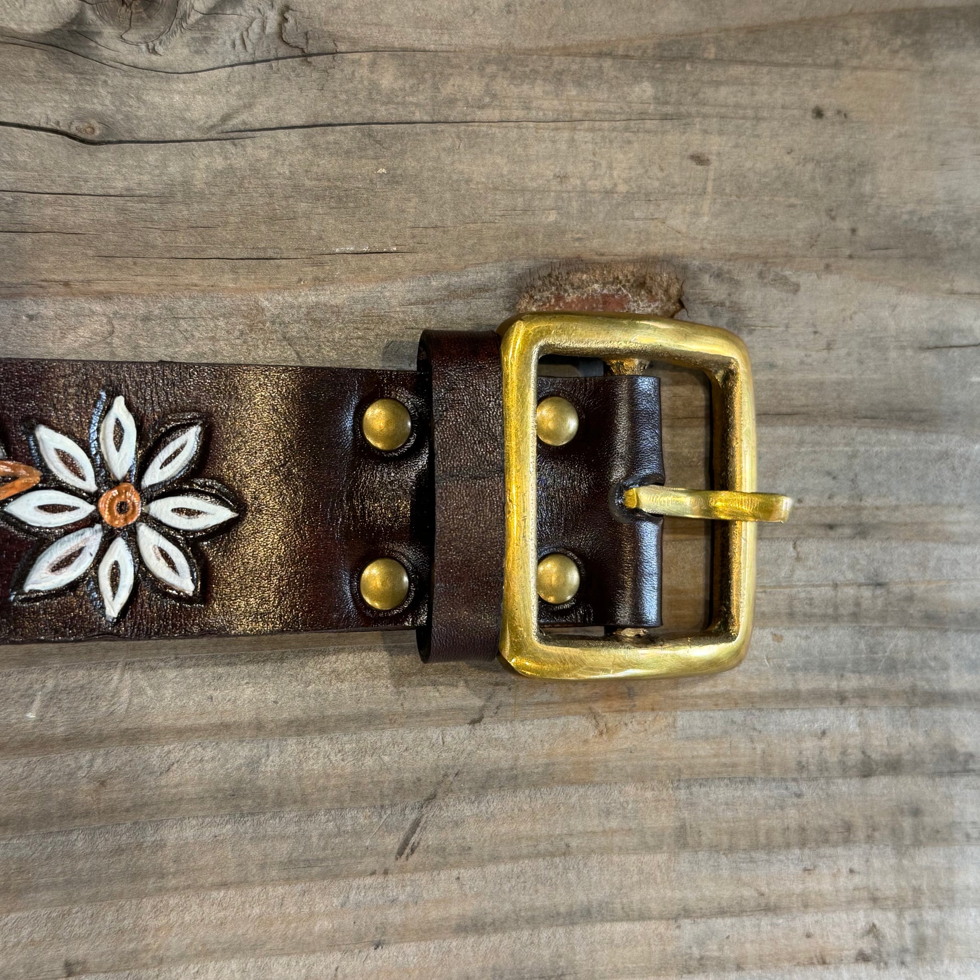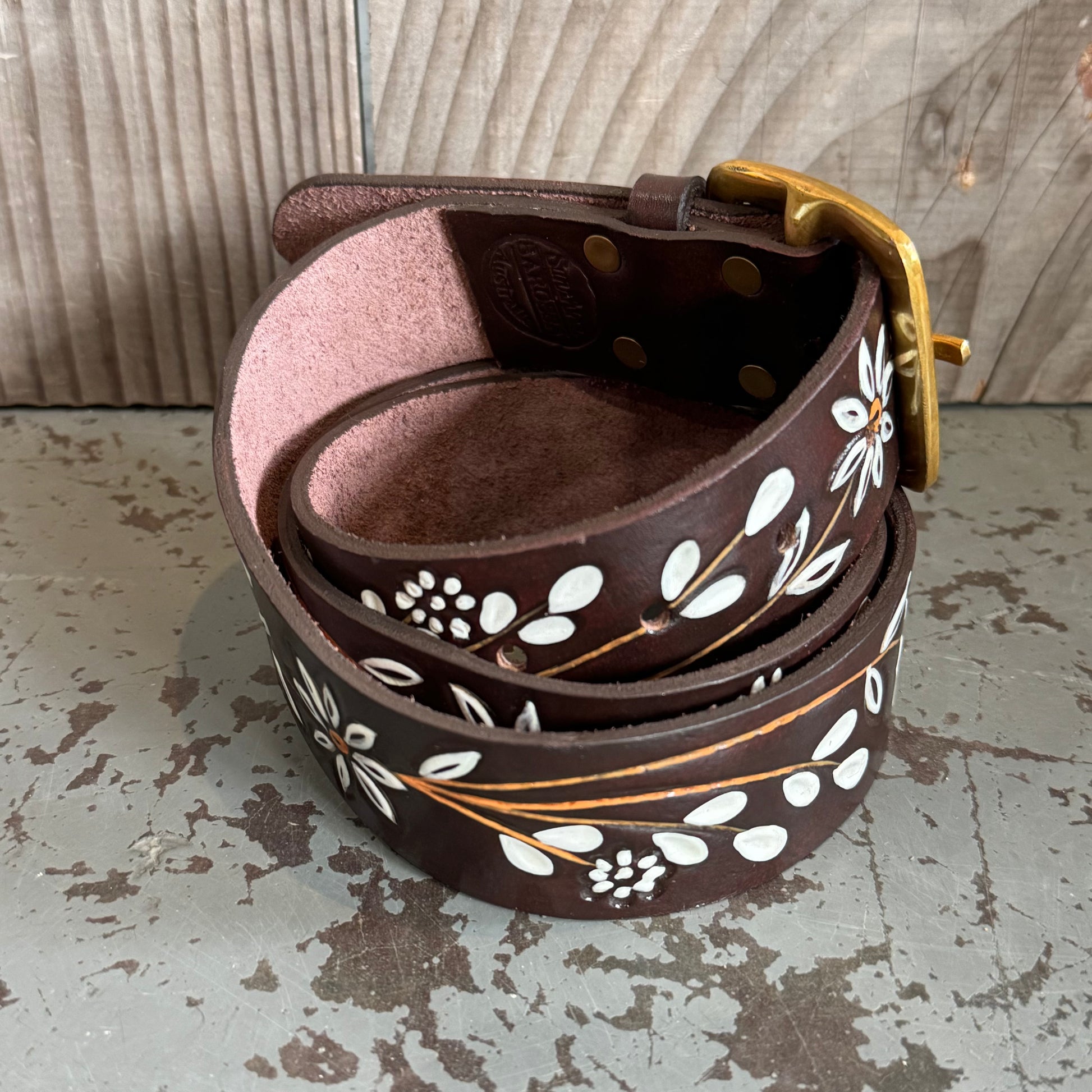 These belts have been hand-painted to create a stunning fashion accessory that pairs perfectly with jeans or a dress. This stunning natural, strong wide strip of leather used creates a belt that you will have for a very long time. The antique brass metal buckle is a feature in itself and the Sunshine Barossa Australia Logo stamped inside of the belt will make everyone wish they had one.