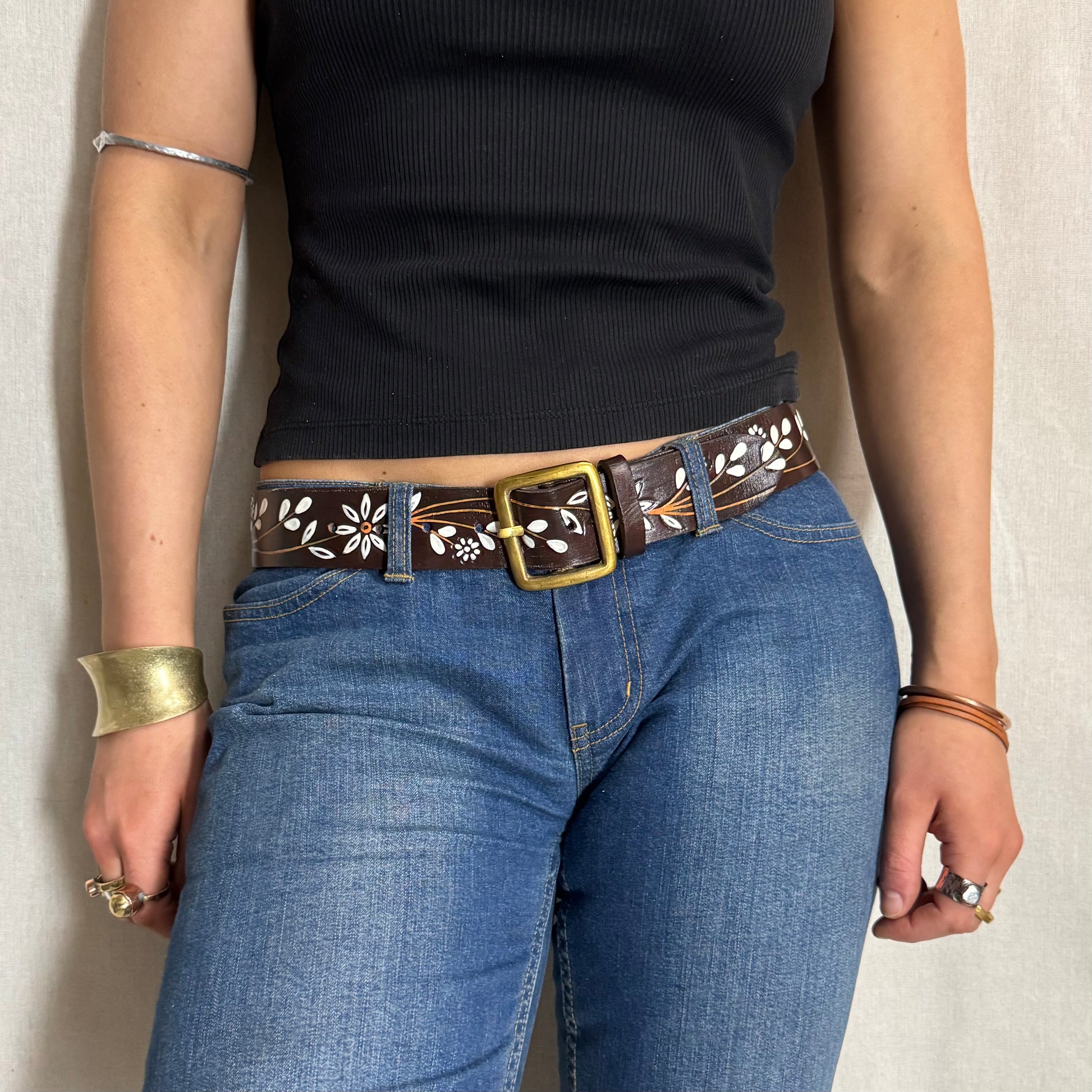 1. a hand-painted band of leather encircling the waist for fashion or practicality.