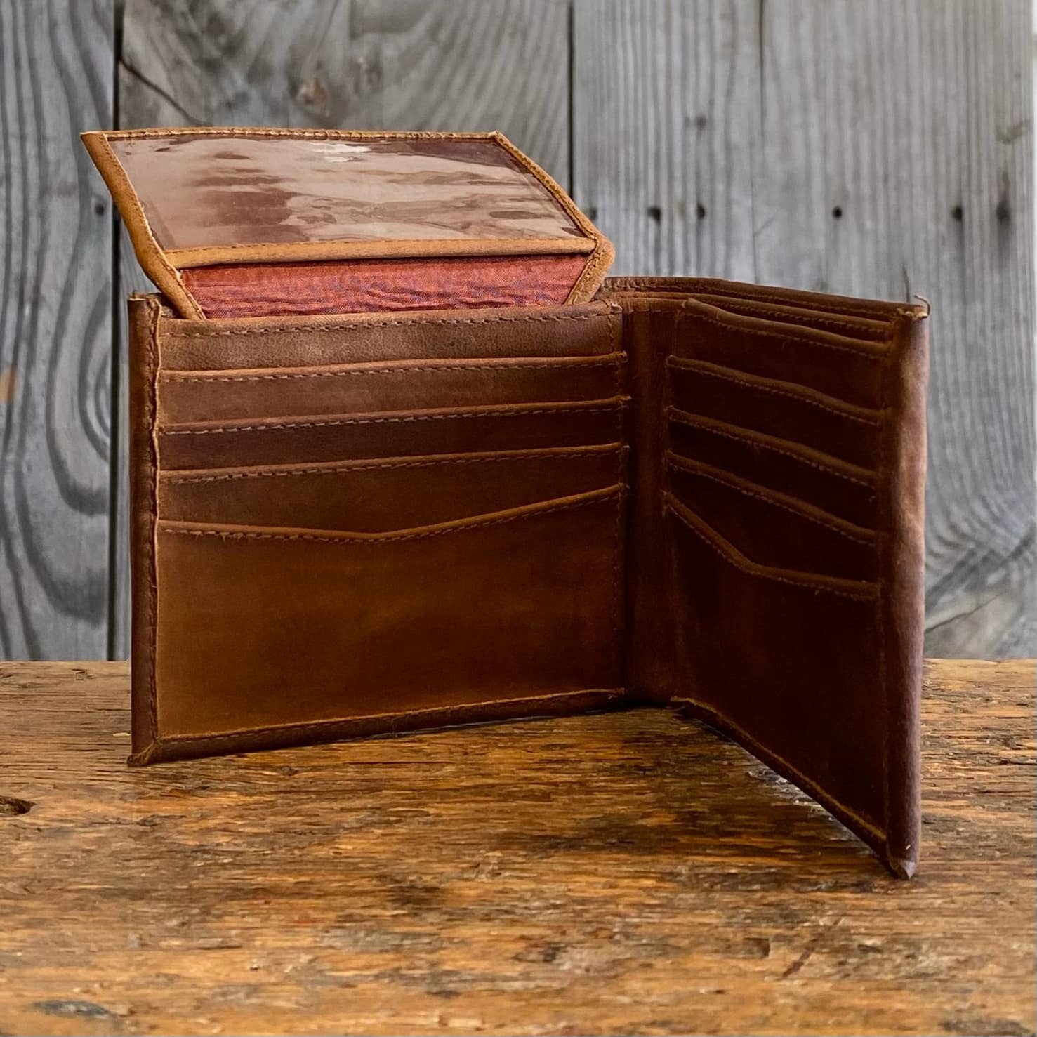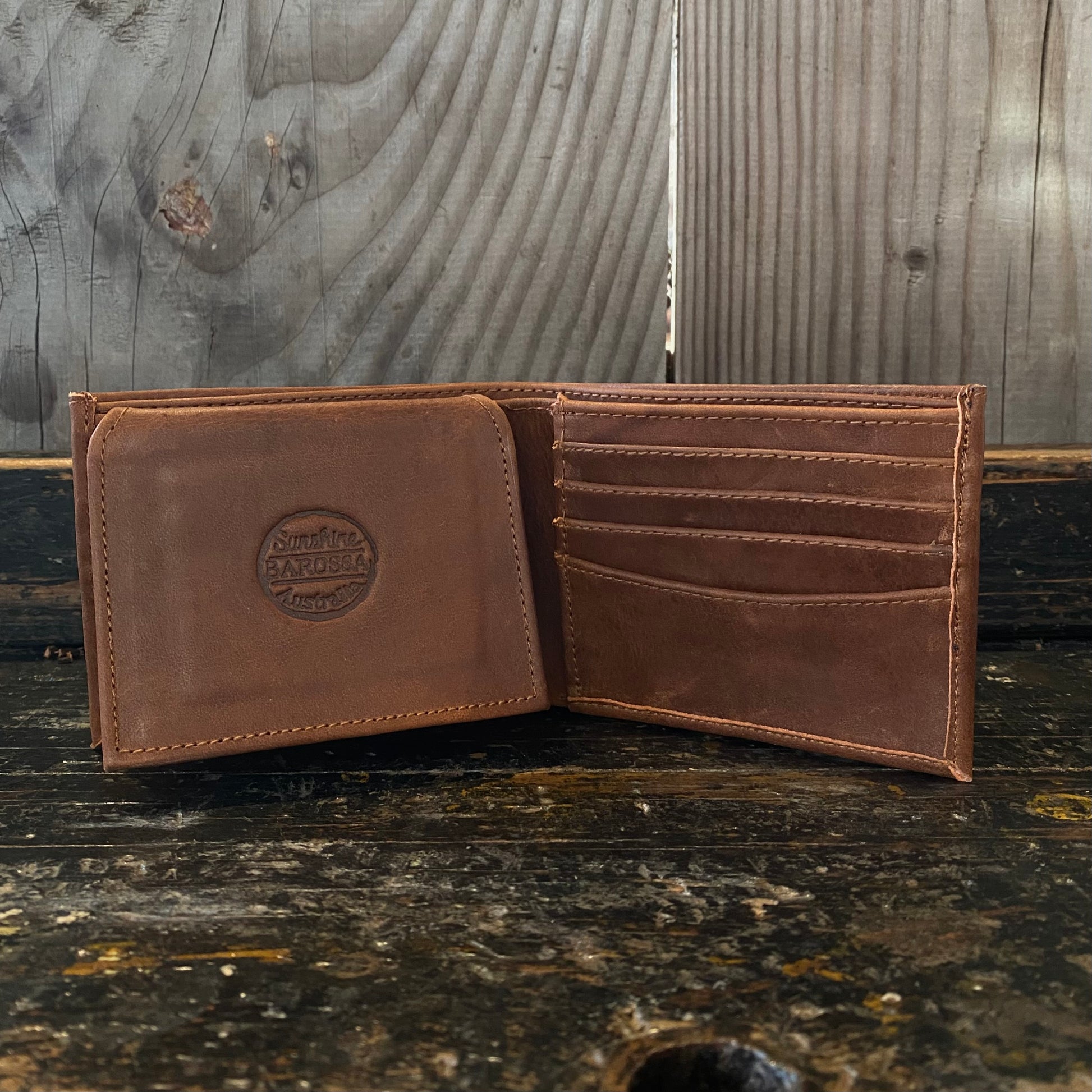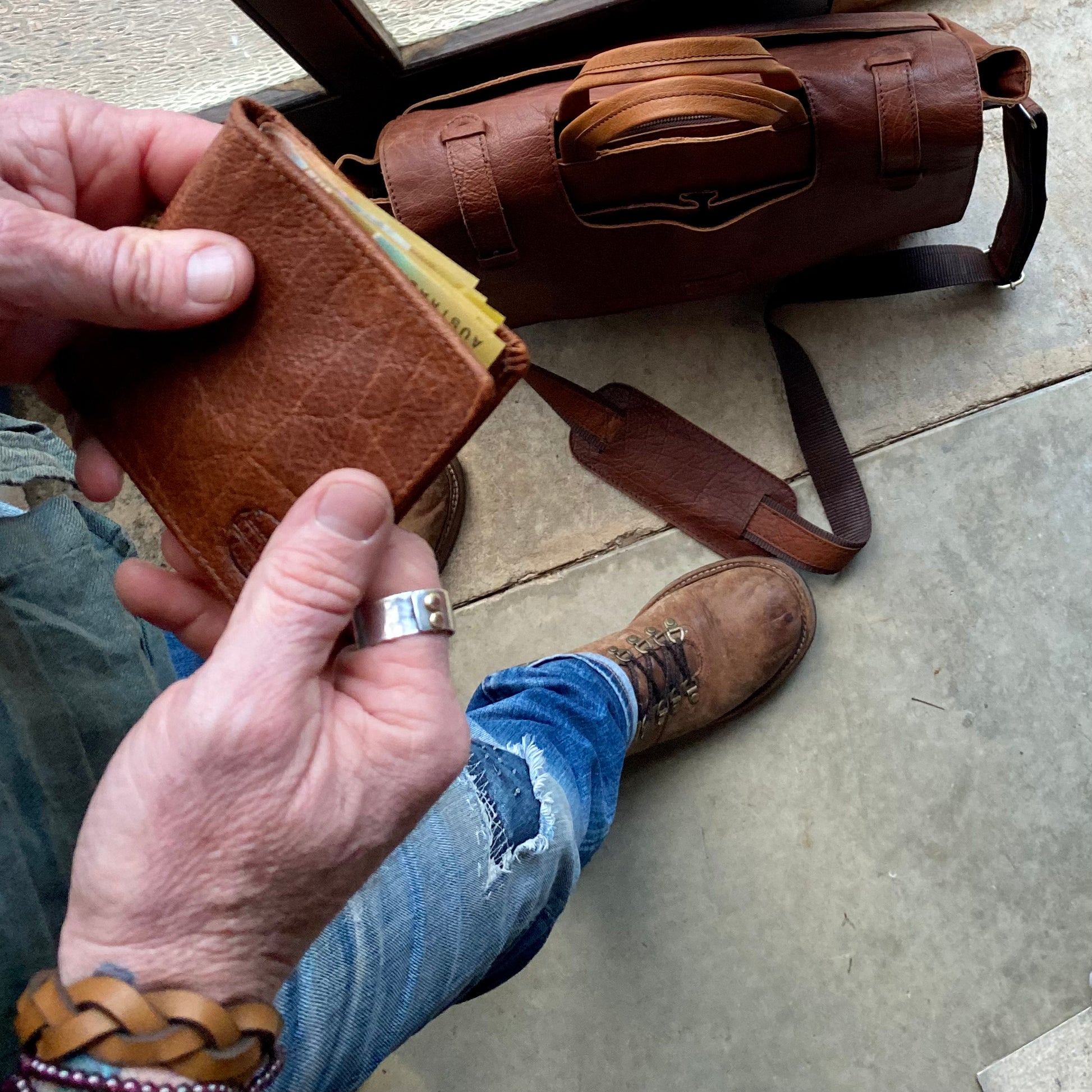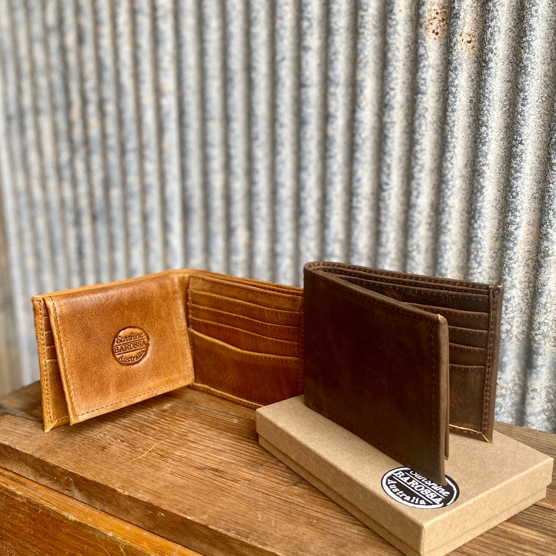 These simplistic handcrafted leather His Wallets are a practical accessory for anybody. Something a little different from the norm is what's important to Sunshine Barossa Australia. The leathers used will soften with age and shape to your body quickly making them very comfortable to the user. The size of these wallet designs is just perfect for the jeans pocket even filling it to the brim as I know you all do.......