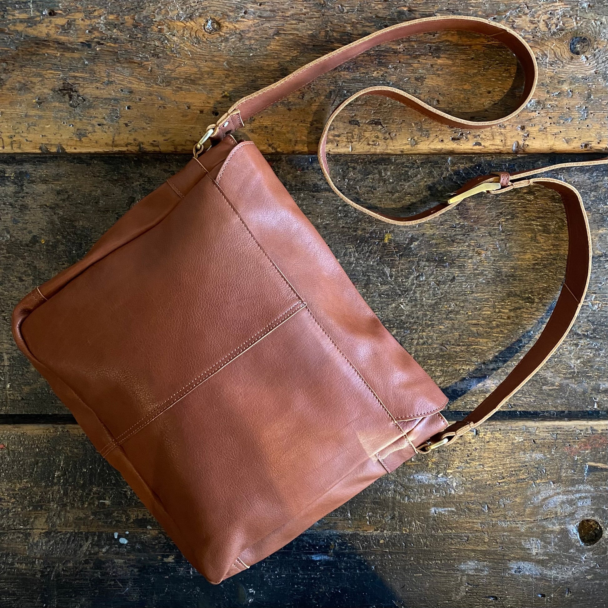 1. a thick yet soft satchel made from Argentinian leather used for work or travel with a padded area for a laptop.