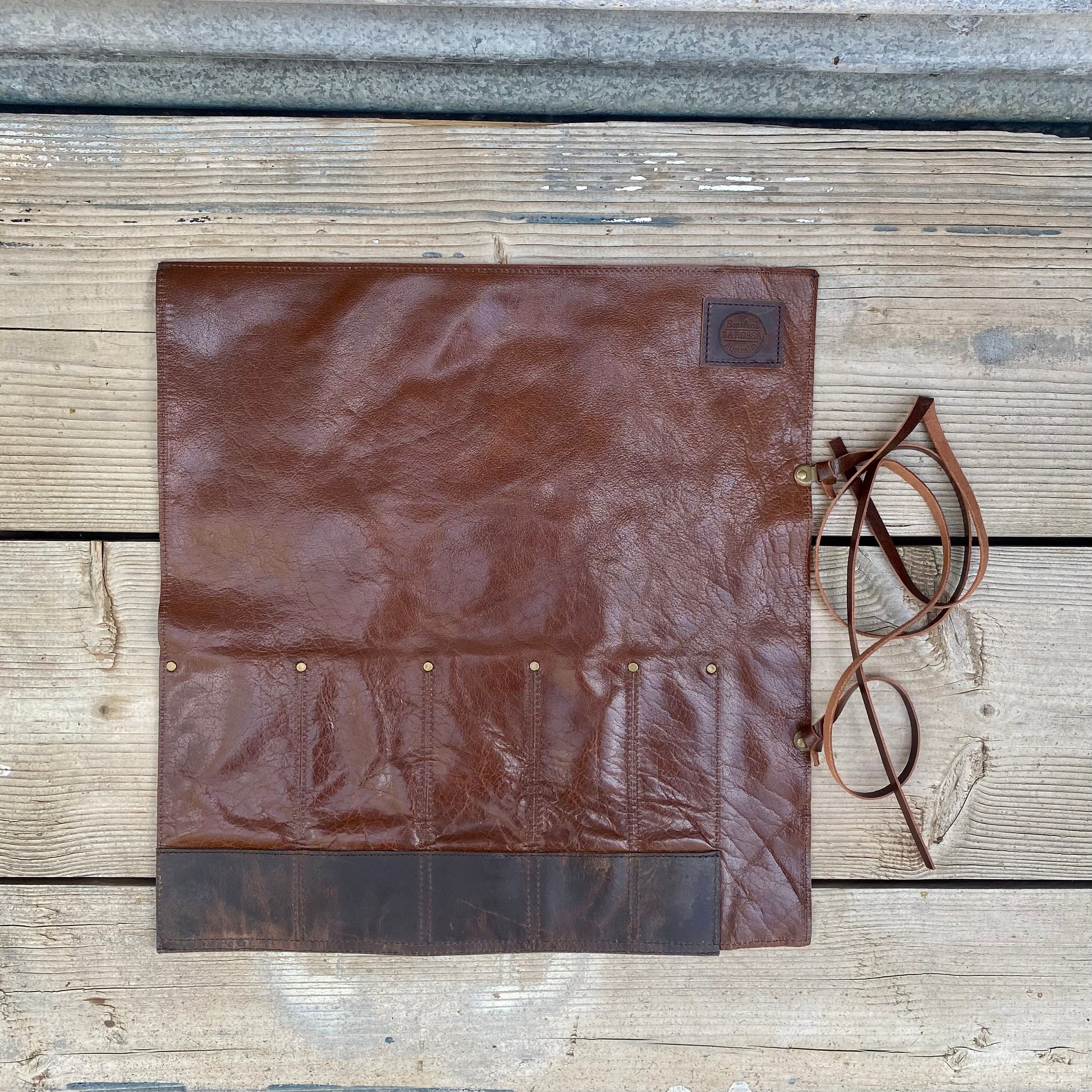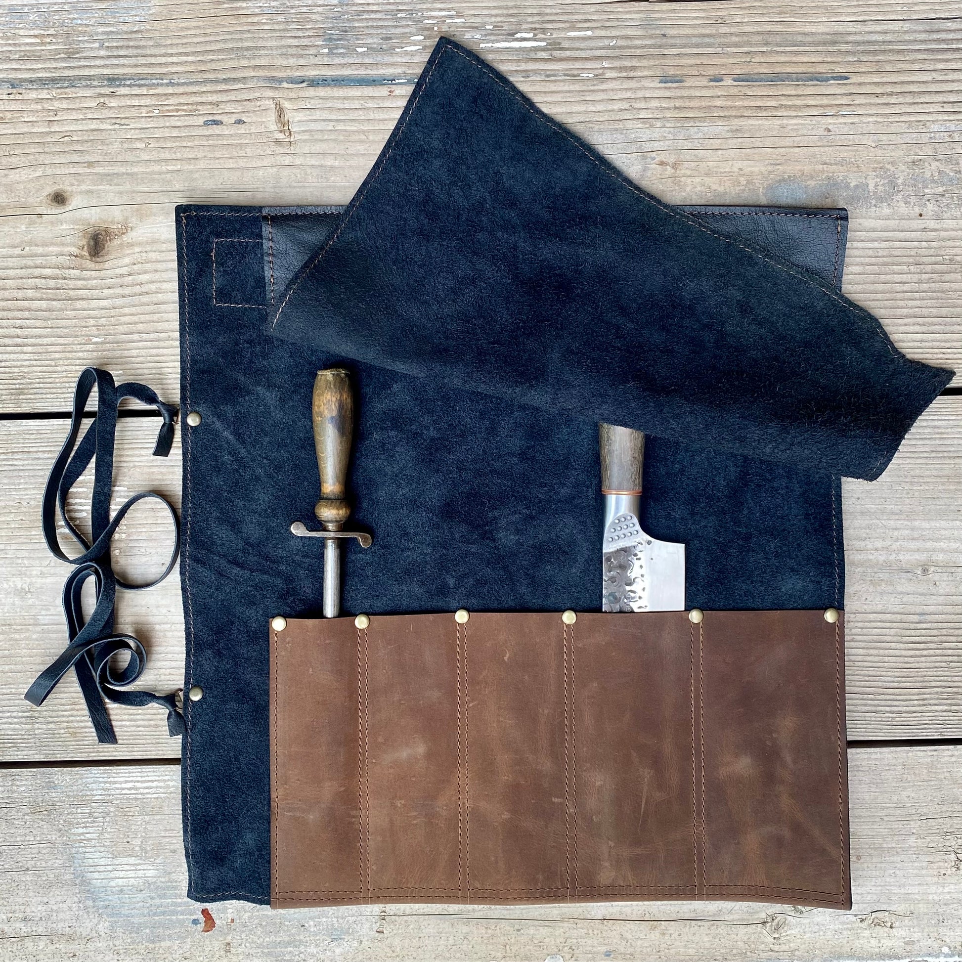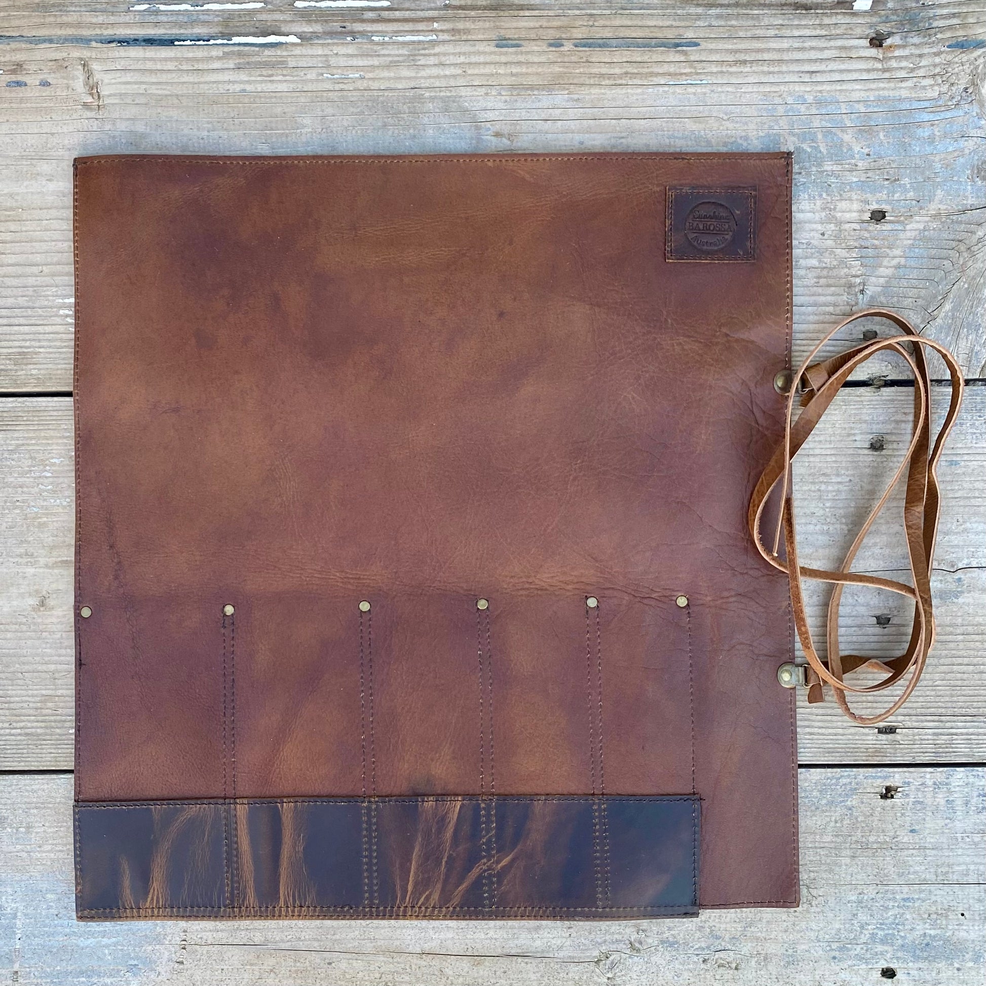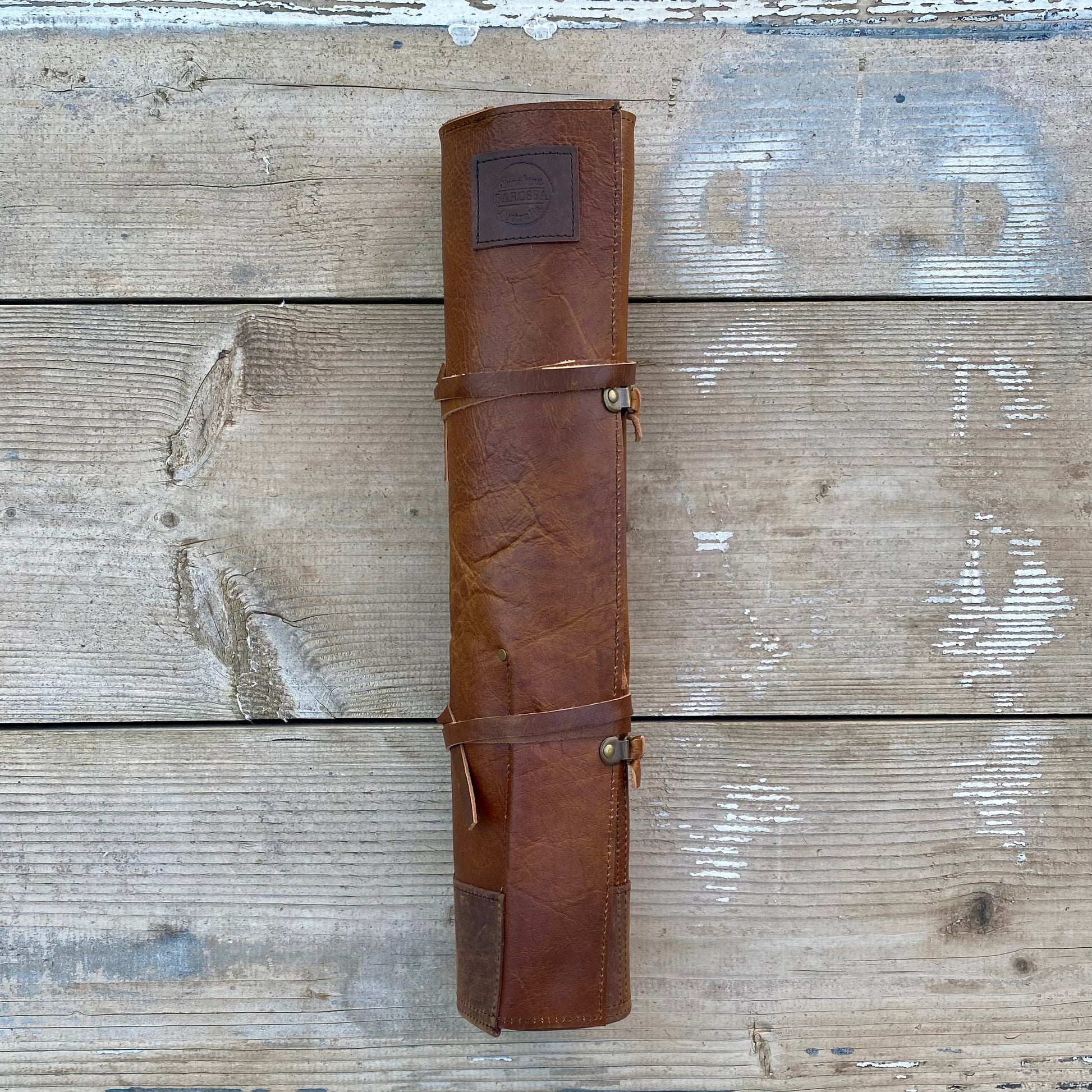 Made from both strong vintage leathers and softer vintage leathers. The Knife slots being strong leather to protect your blades and the rest is softer vintage style leathers, perfect for rolling and covering your knives.