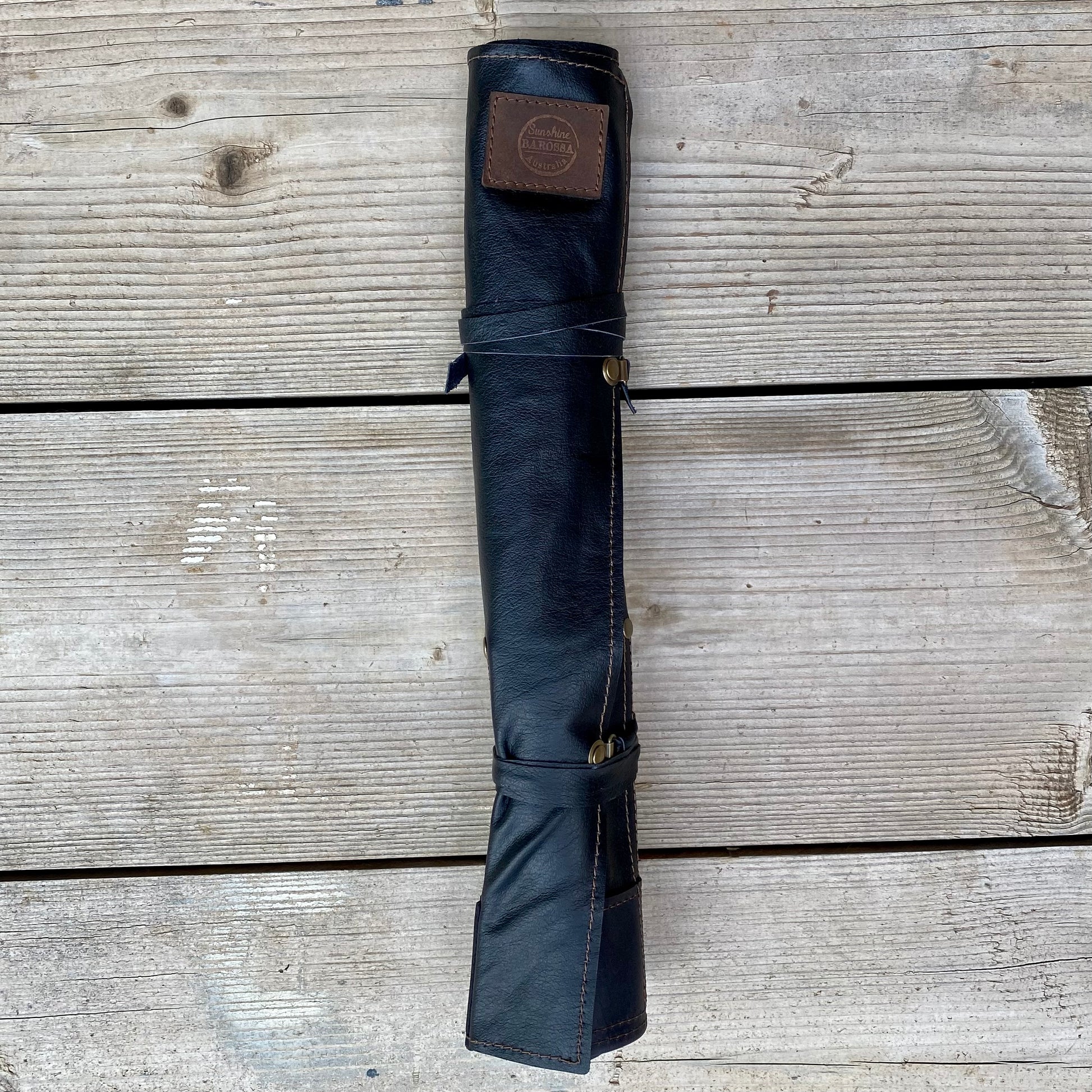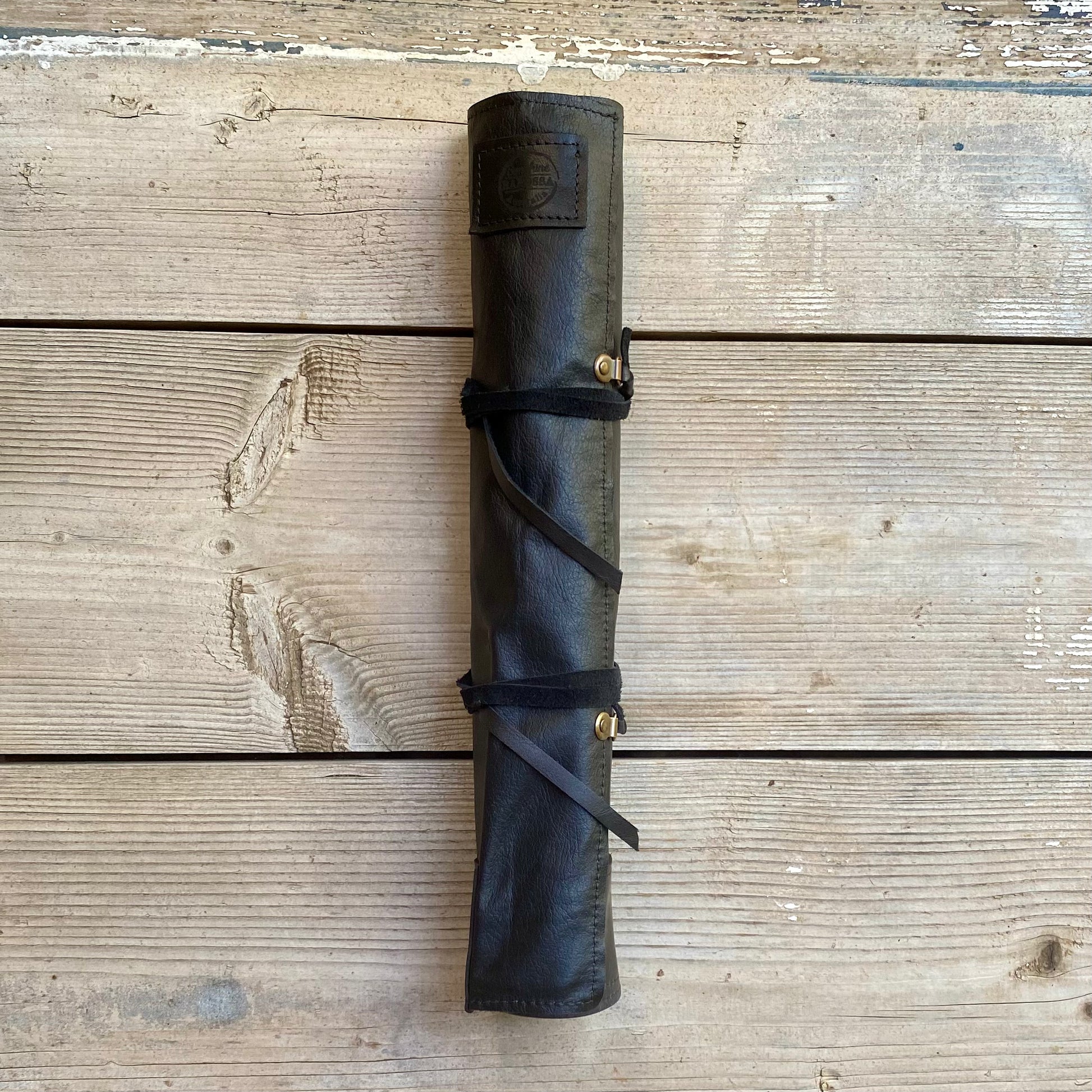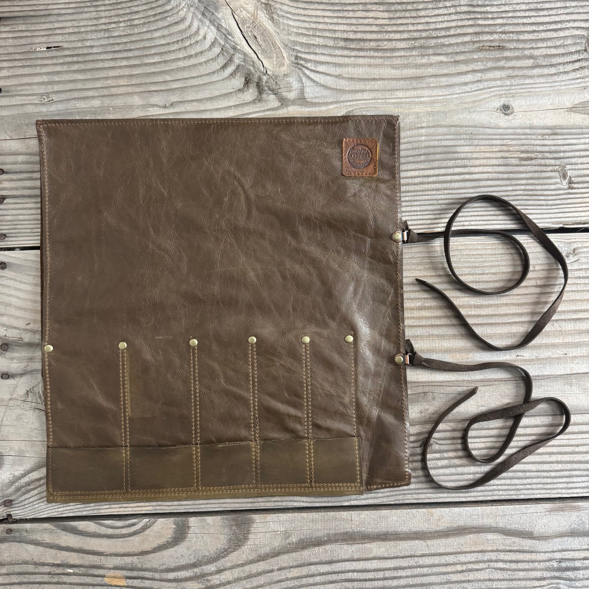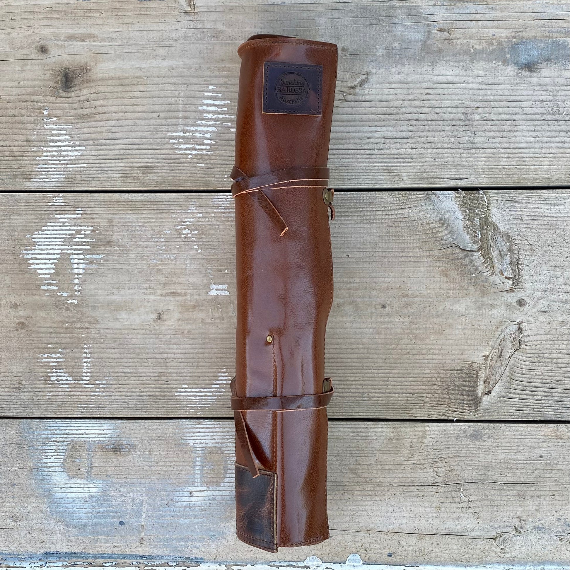 Made from both strong vintage leathers and softer vintage leathers. The Knife slots being strong leather to protect your blades and the rest is softer vintage style leathers, perfect for rolling and covering your knives.