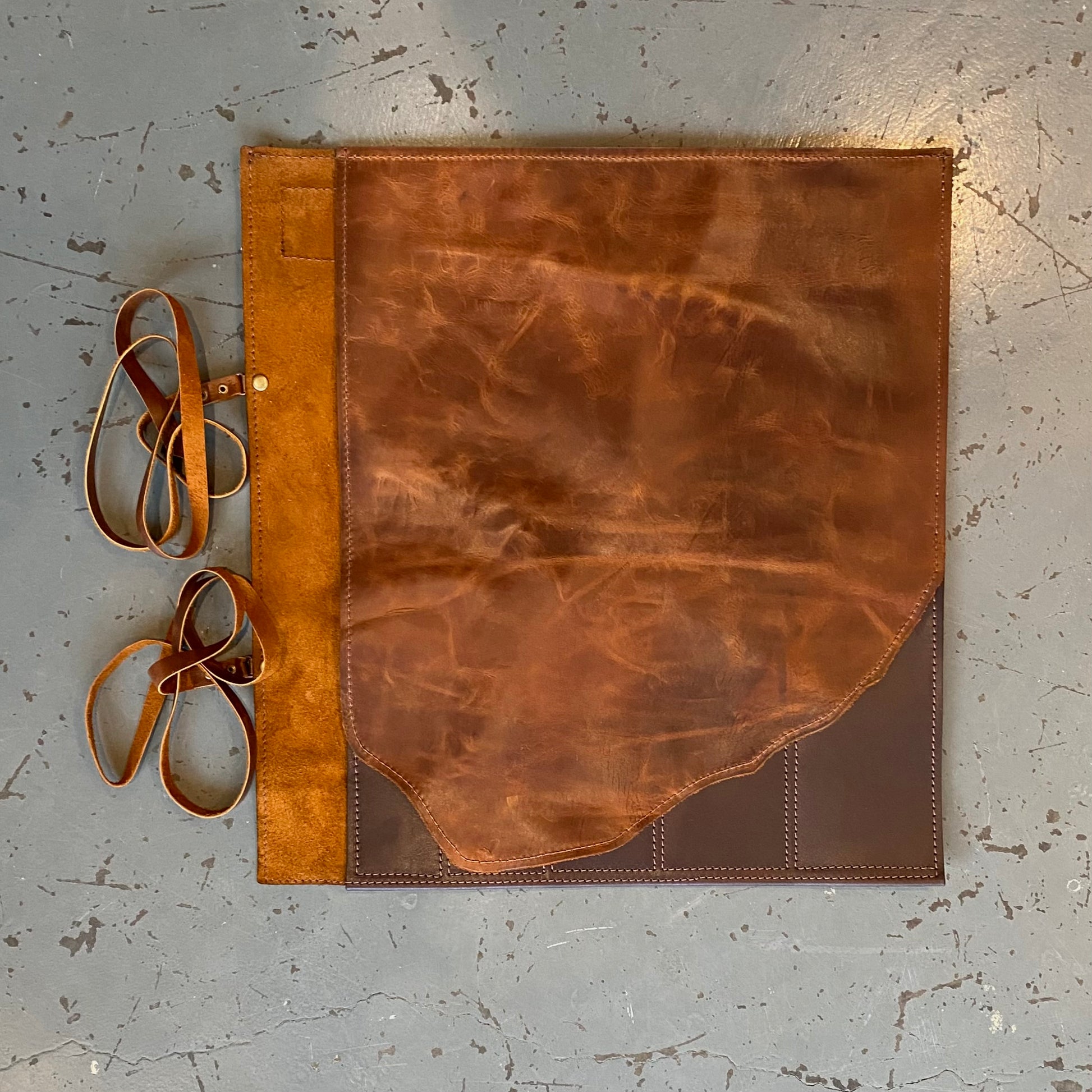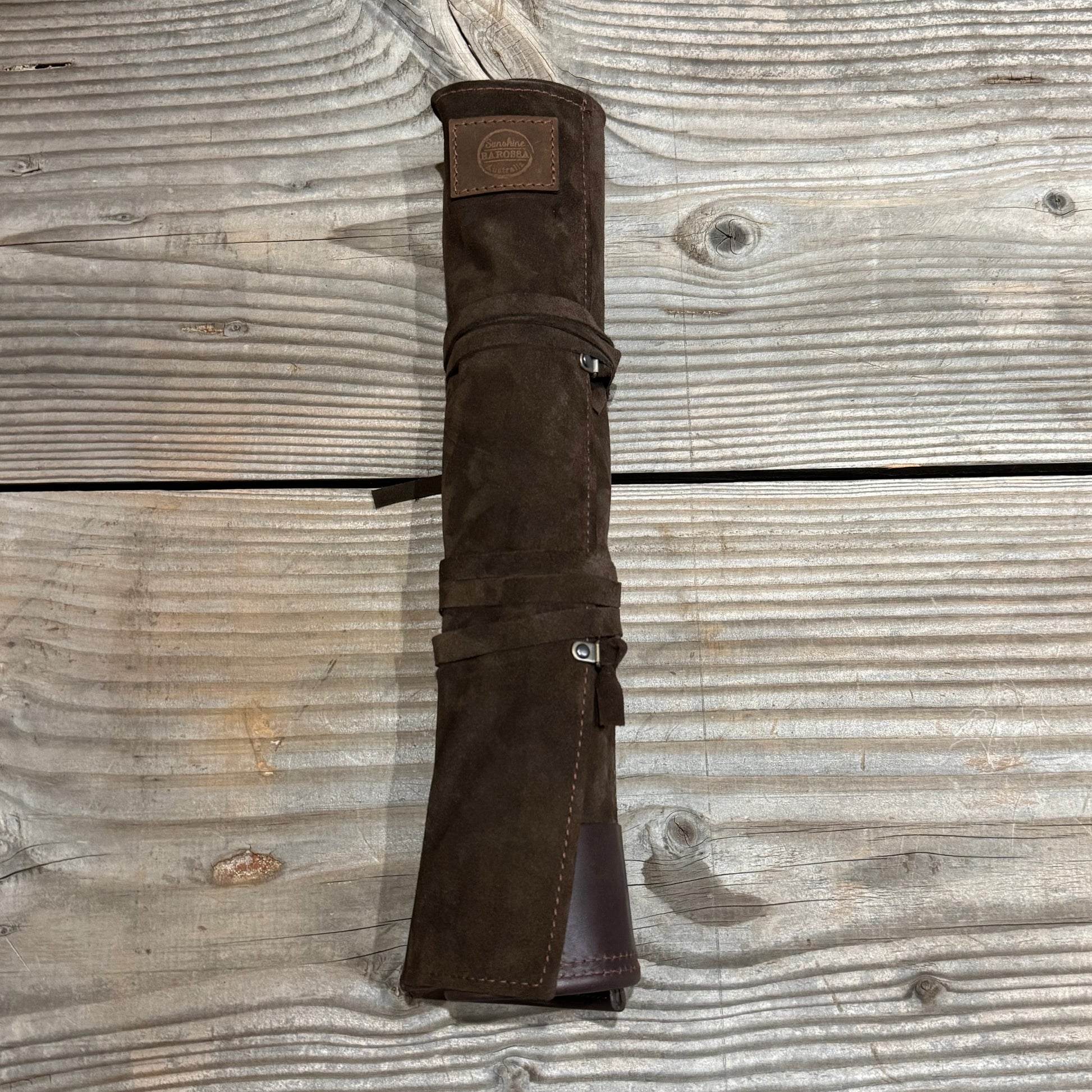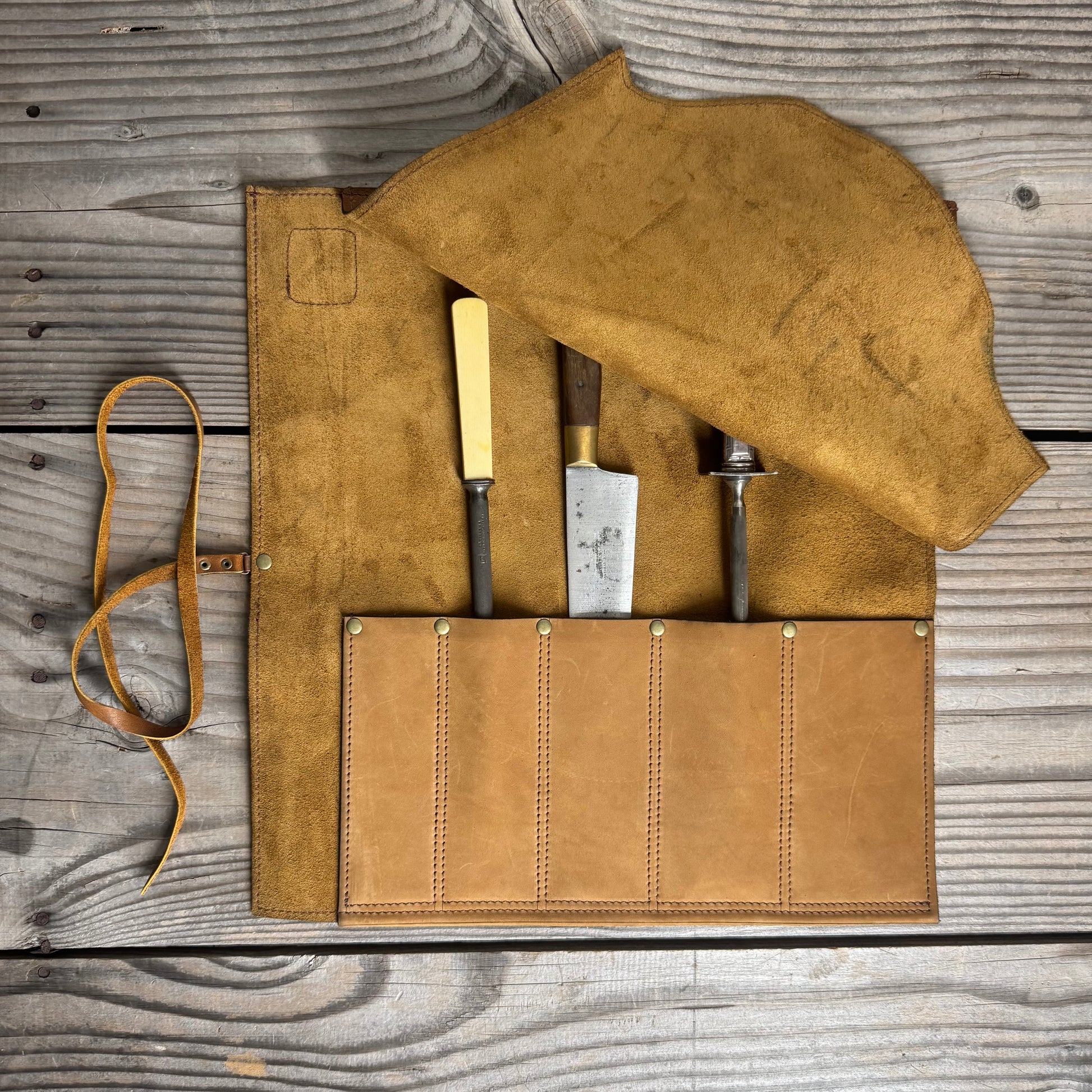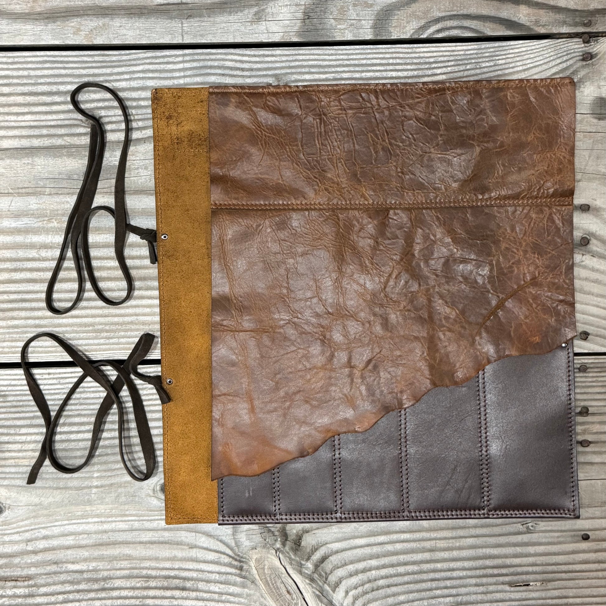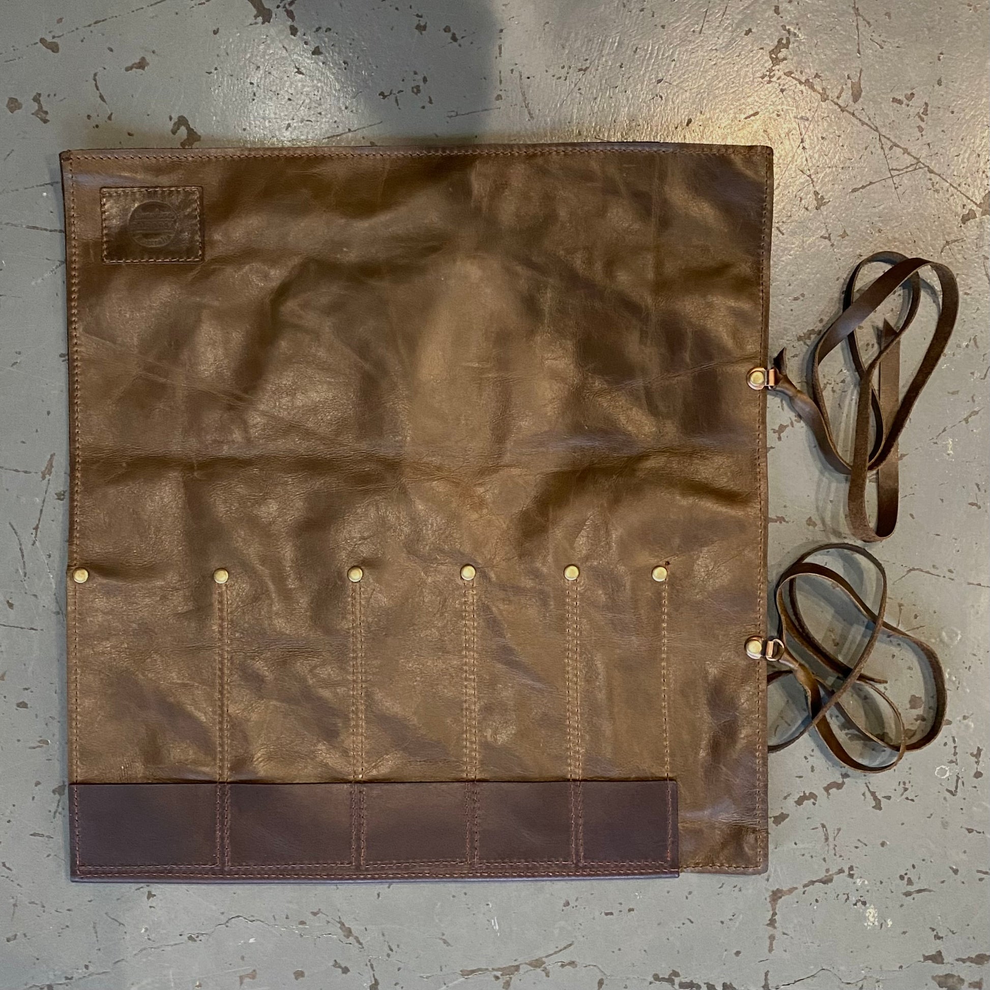 Made from both strong vintage leathers and softer vintage leathers. The Knife slots being strong leather to protect your blades and the rest is softer vintage style leathers, perfect for rolling and covering your knives.
