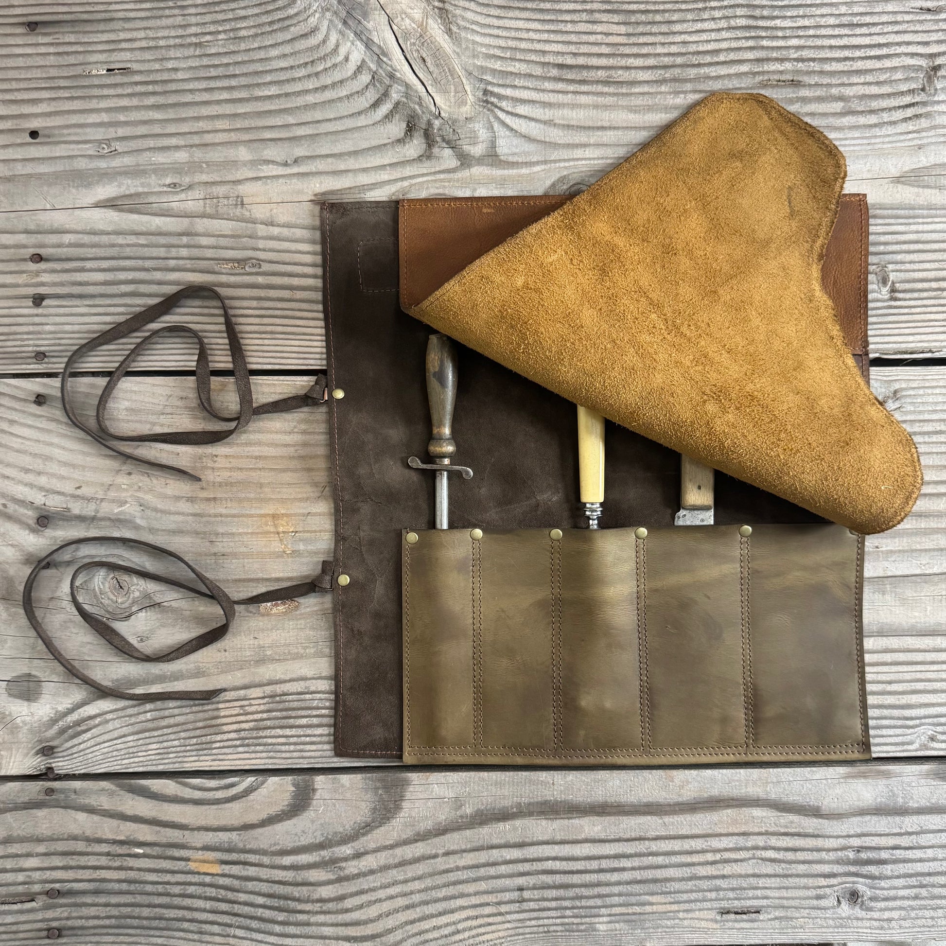 1. a leather holder to store your favourite knives or tools and your sharpener that wraps and protects.