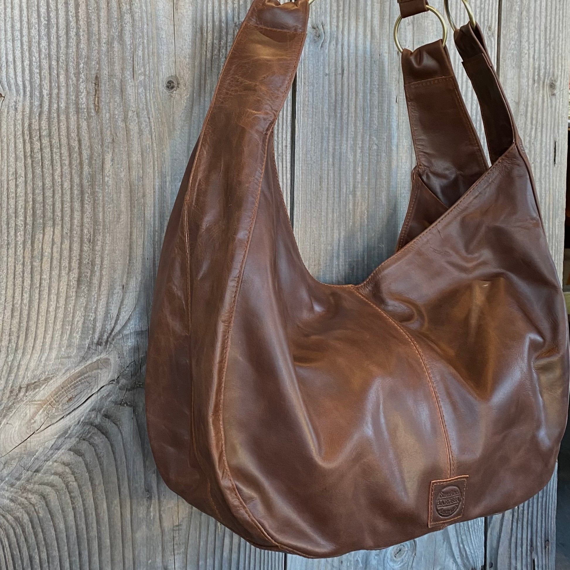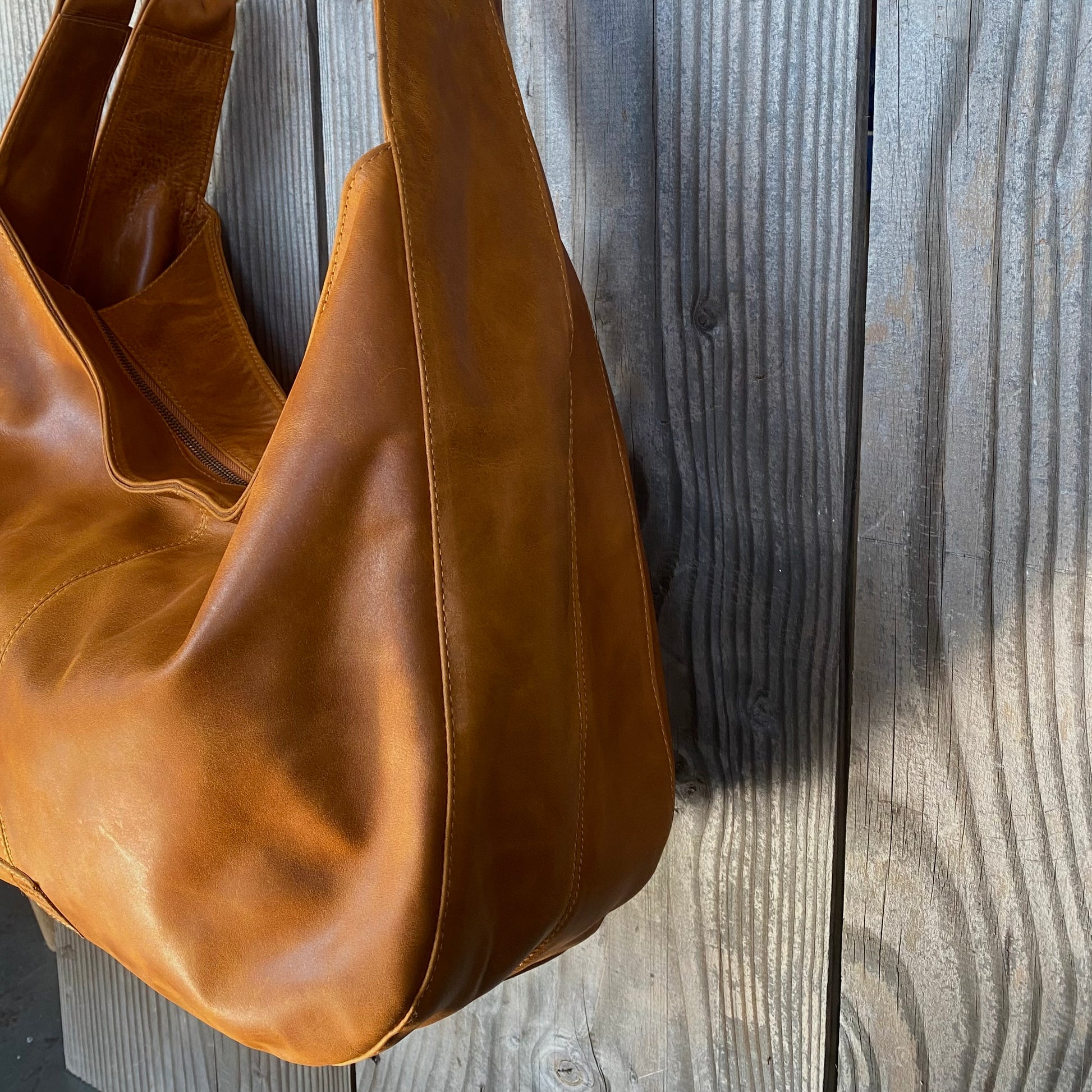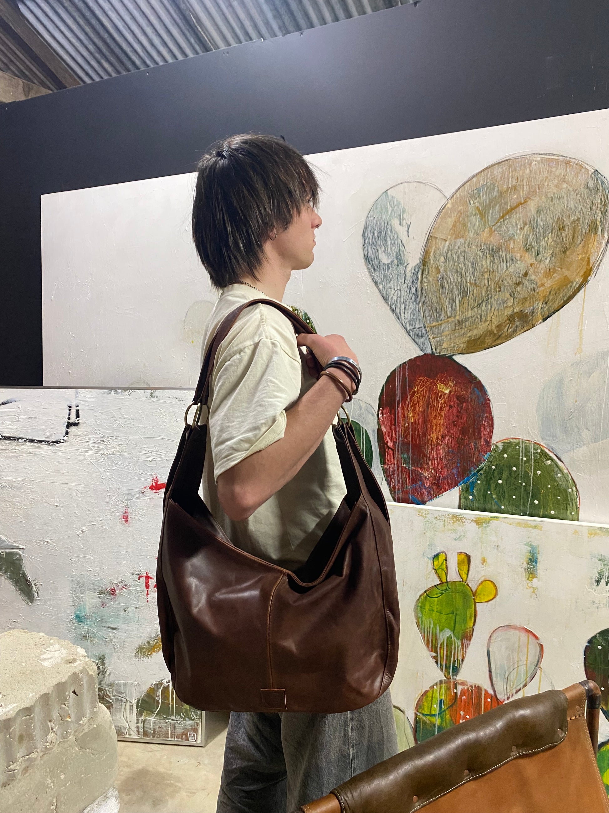 1. A large leather slouch bag inspired by the importance of comfort on your body when full. Perfect for overnight visits.