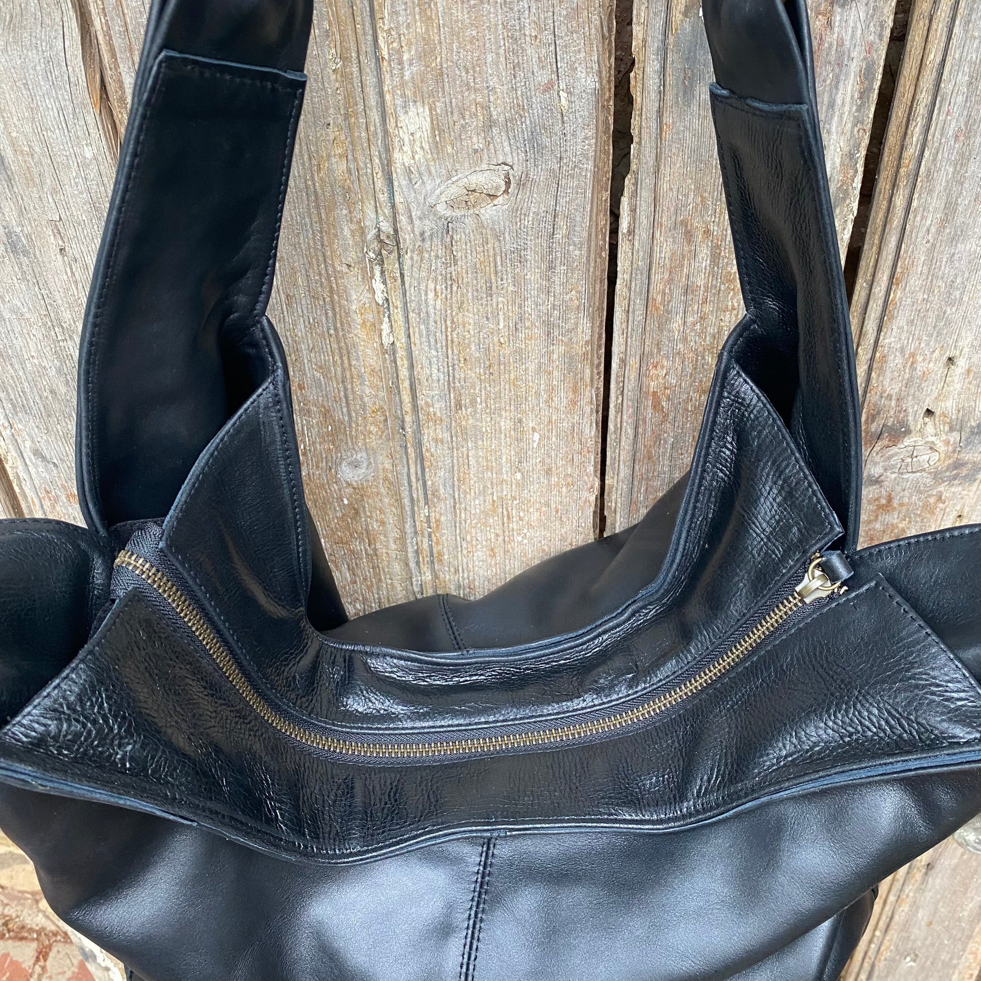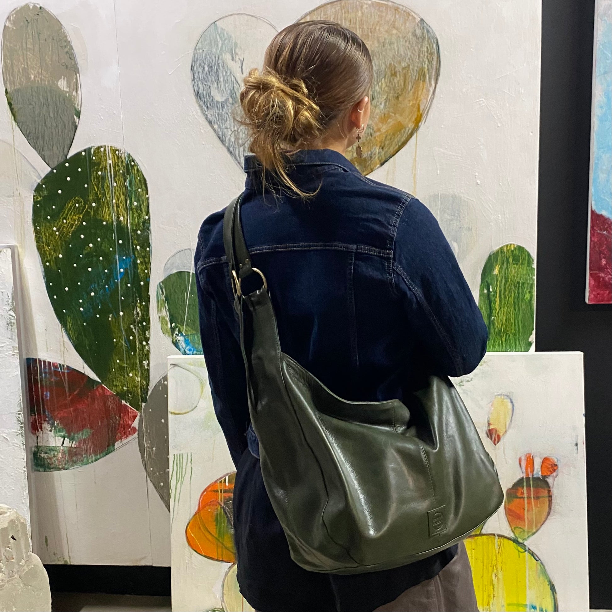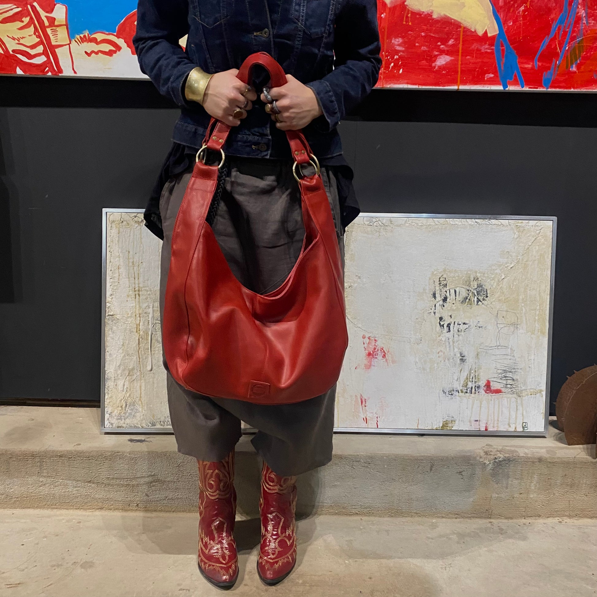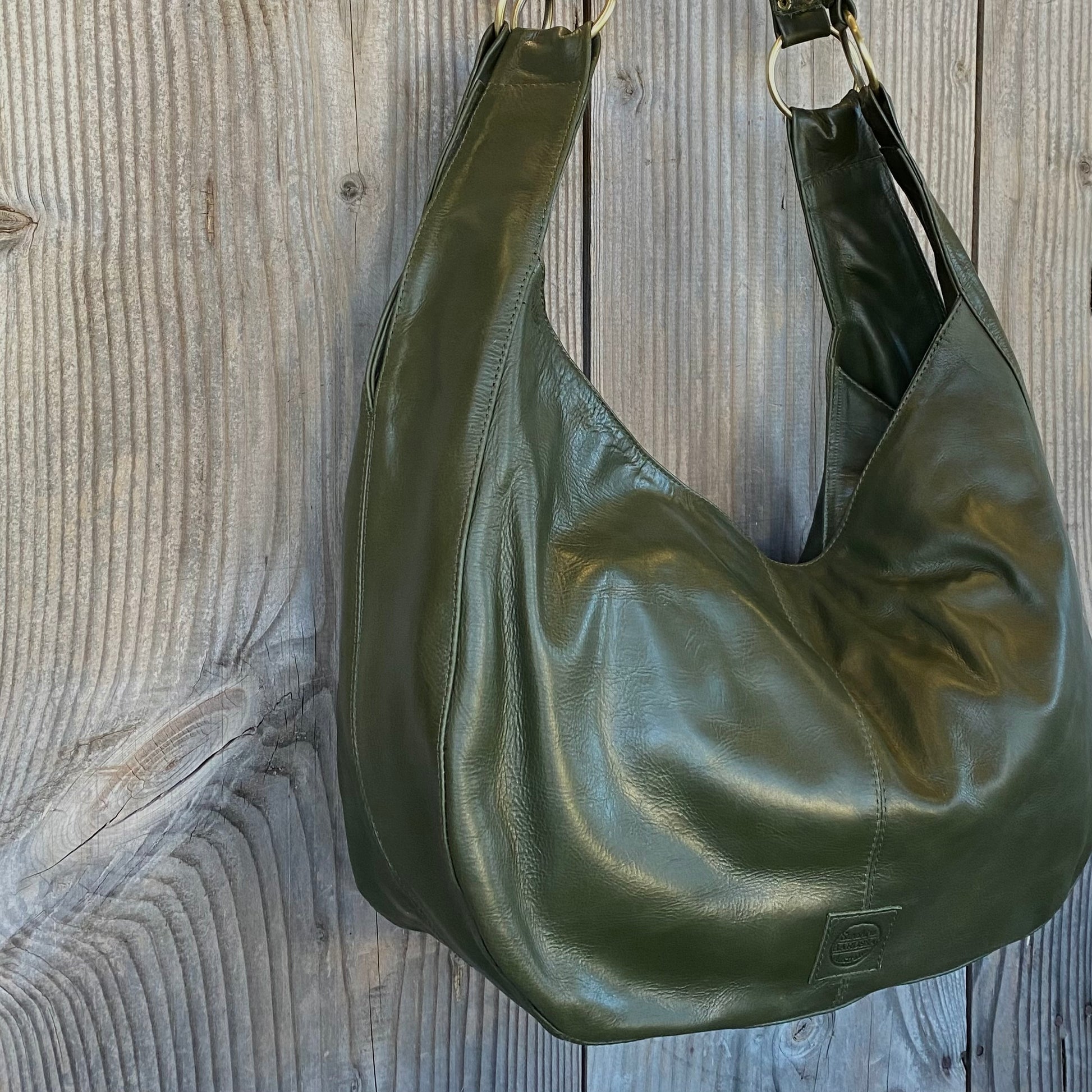 1. A large leather slouch bag inspired by the importance of comfort on your body when full. Perfect for overnight visits.