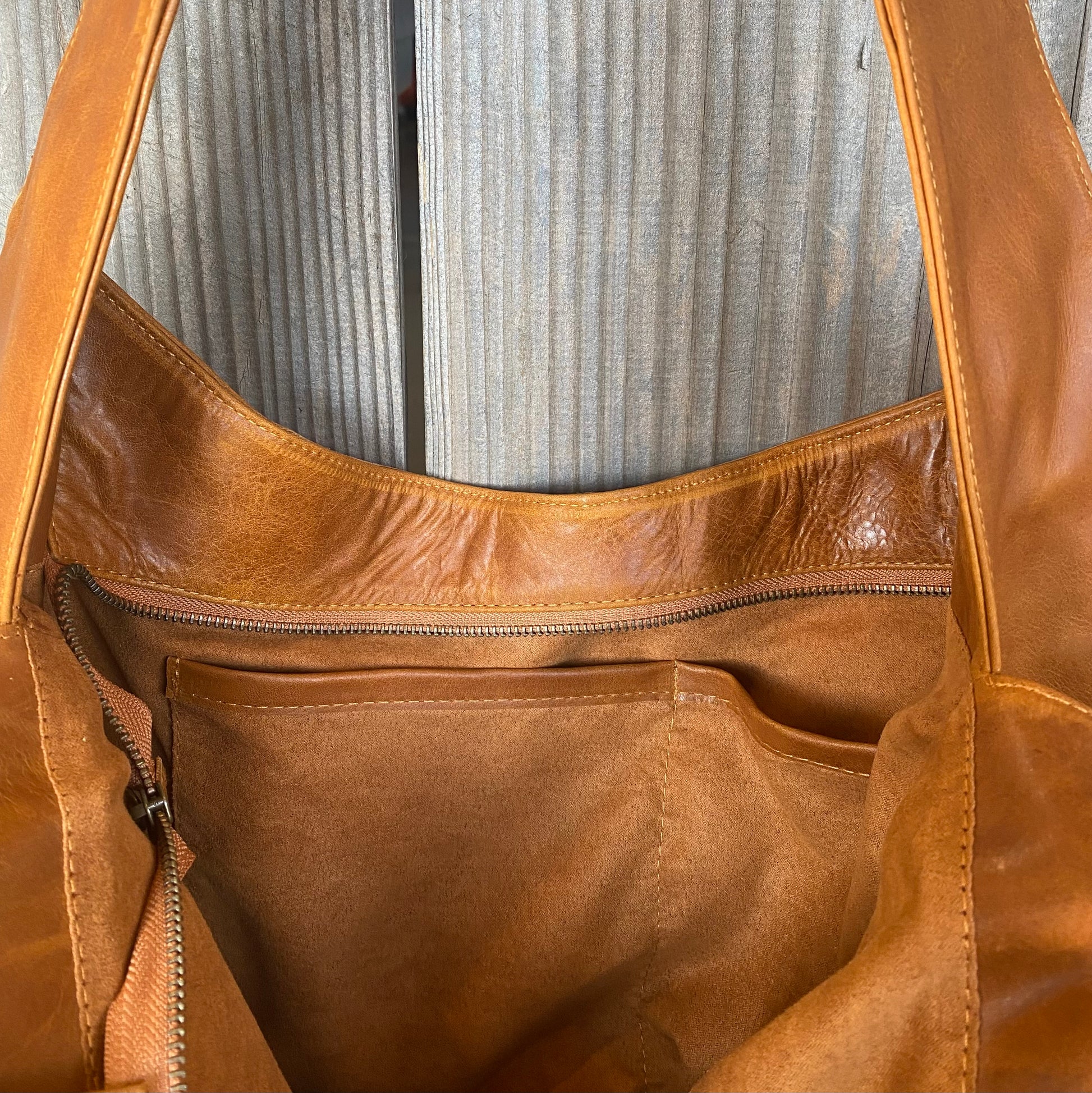 This bag although large in size has such slouchiness that it doesn't seem big at all. Made from vintage style leathers for stylish comfort and slouchy tendencies this bag is your perfect everyday shopper companion and then turns into the best overnighter carry-all.