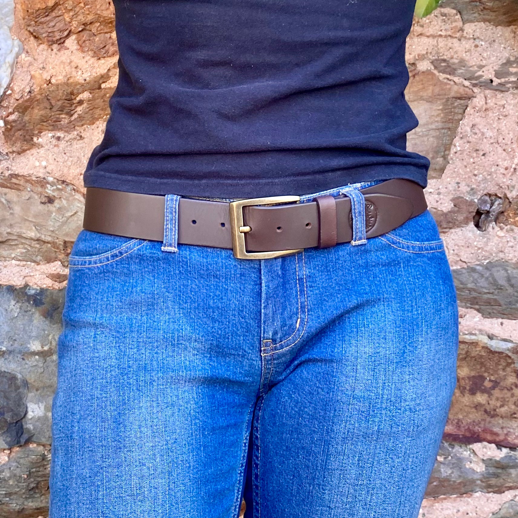 *NOTE - there are two antique brass buckle shapes which may vary amongst sizes, if you have a preference of buckle shape when ordering, please place in notes as we make belts to order.
