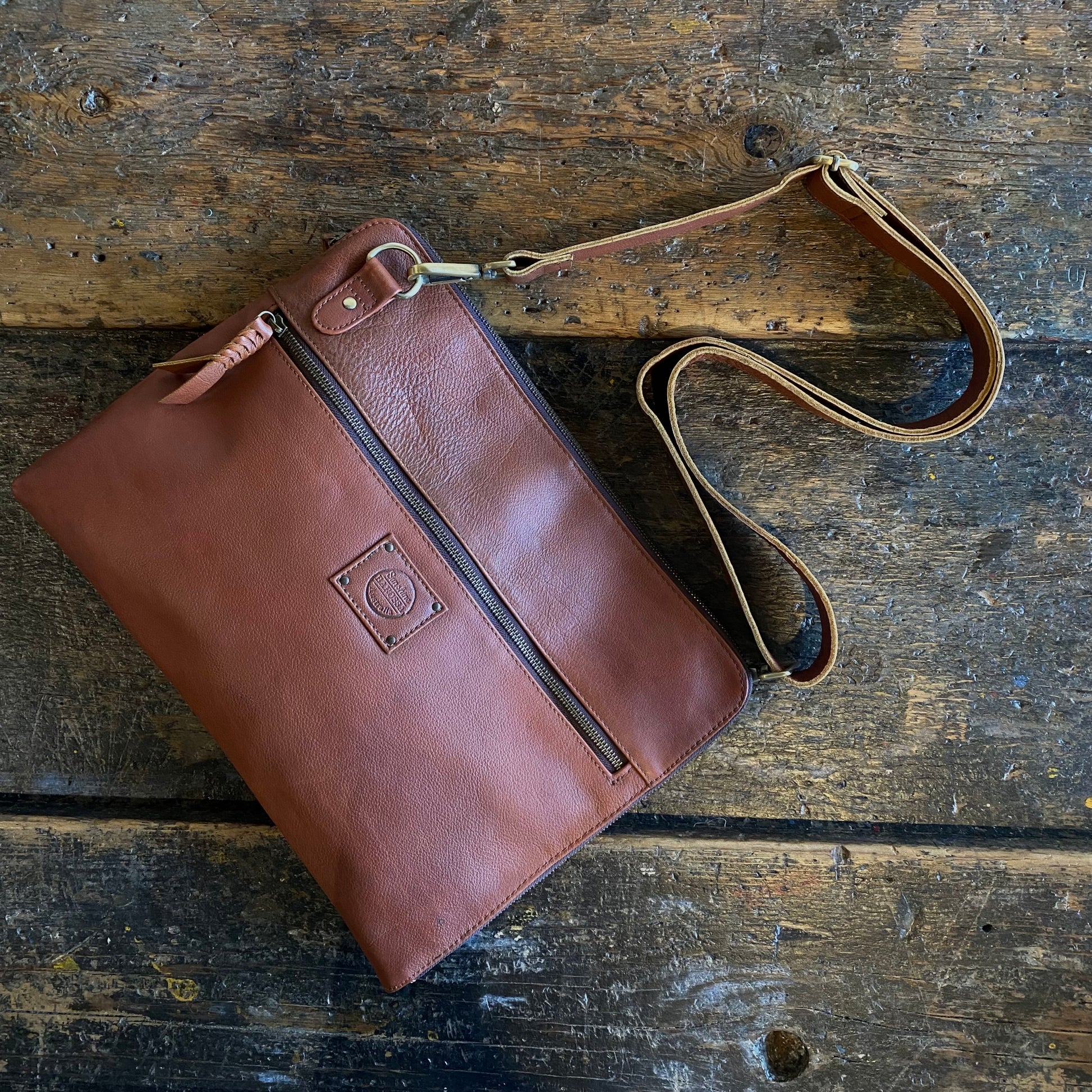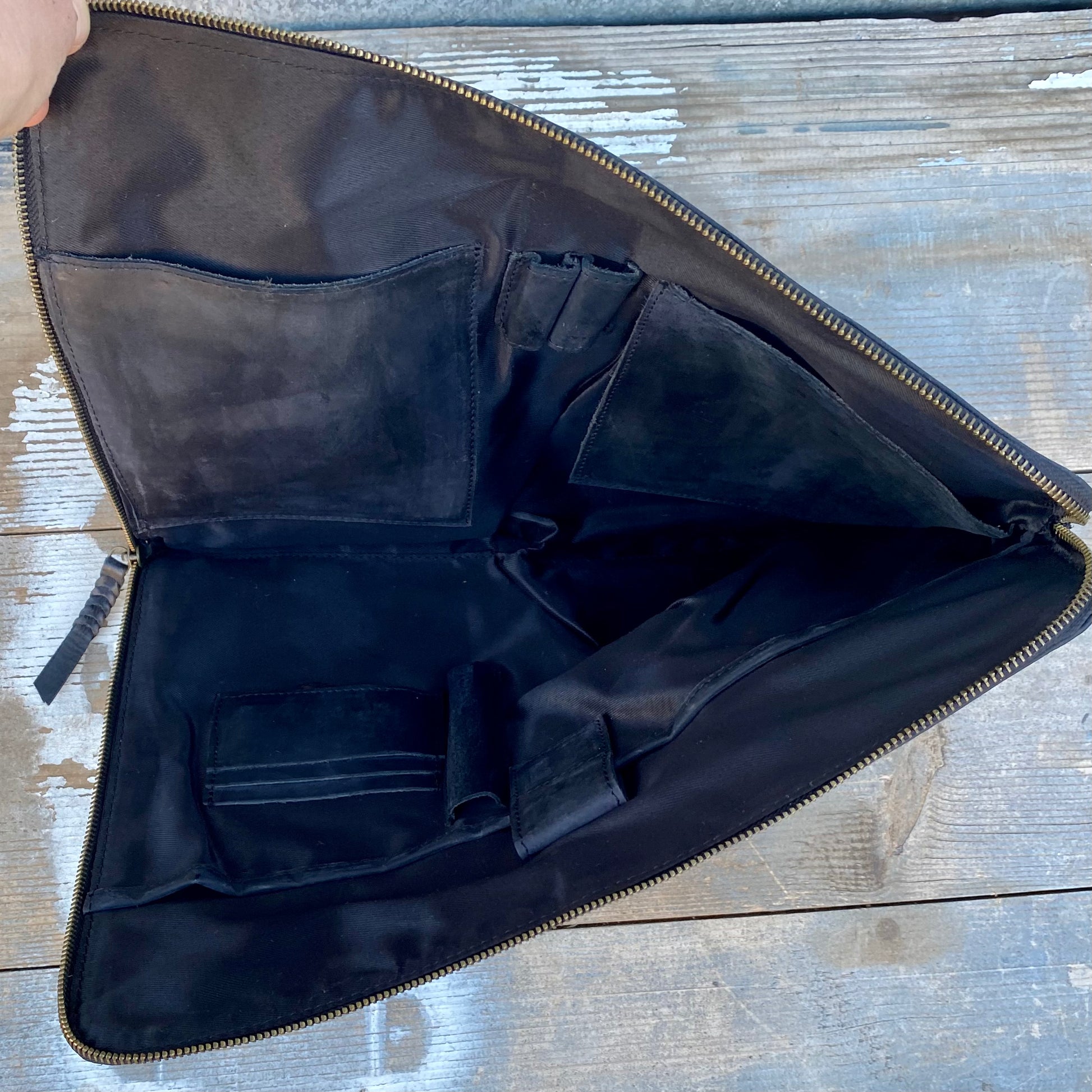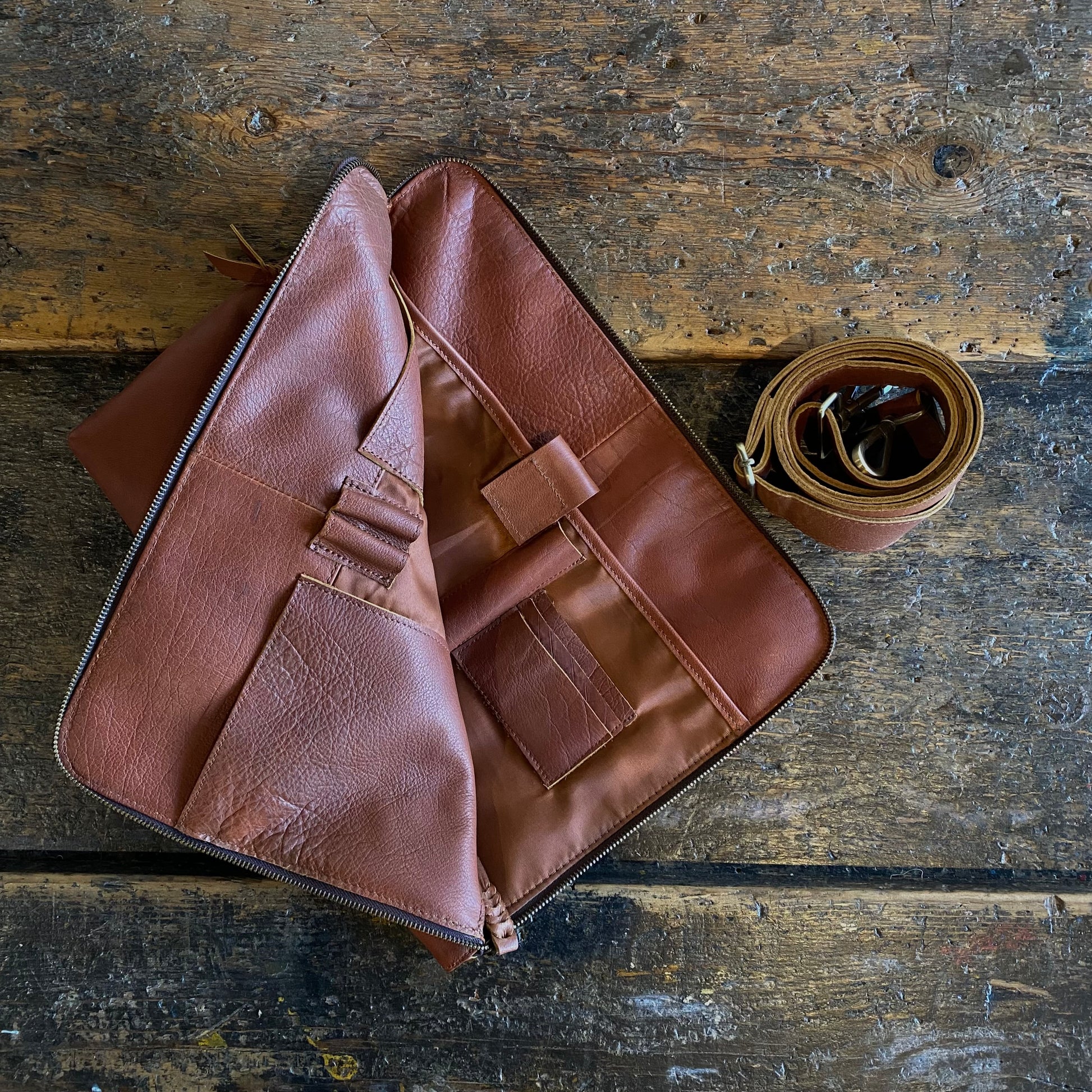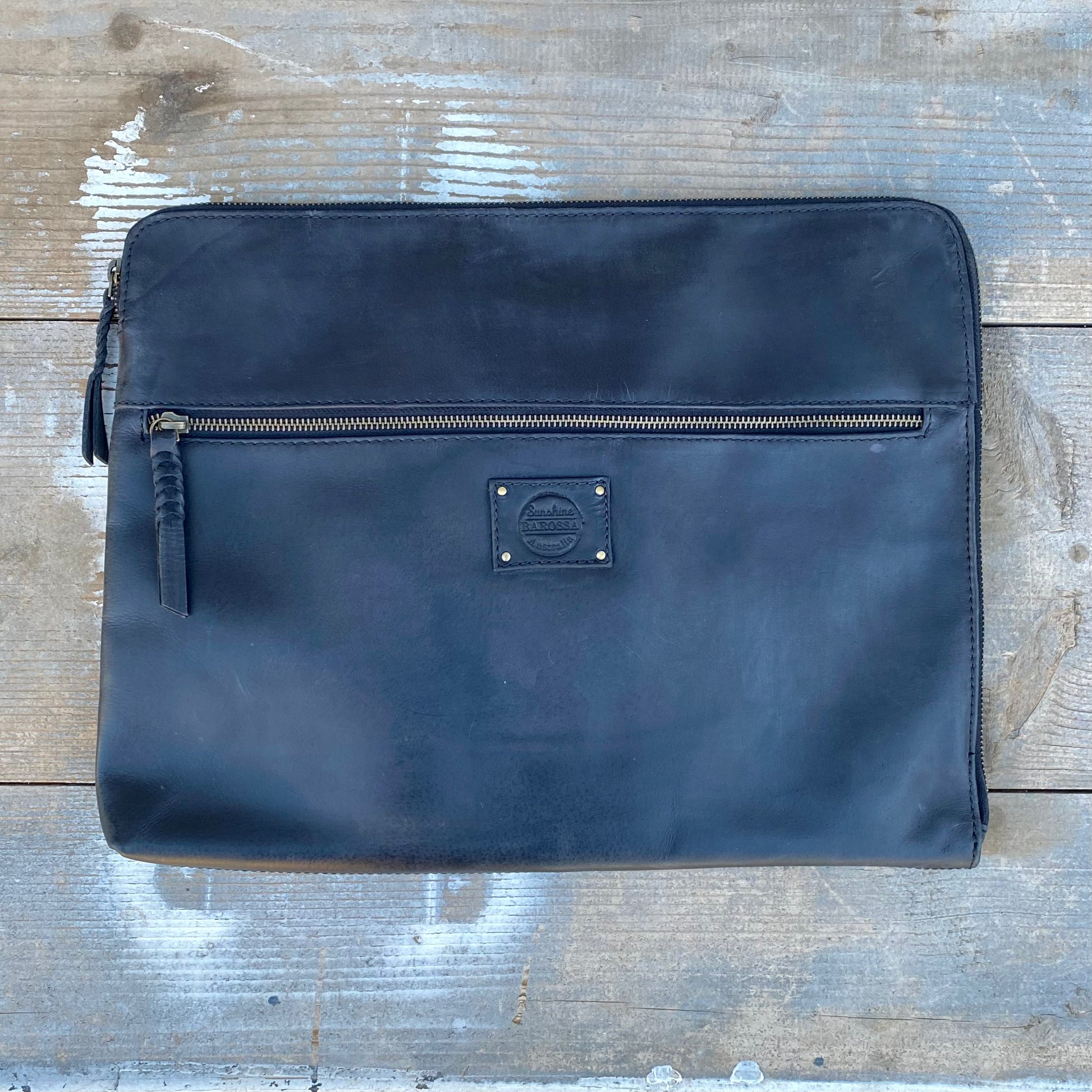 1. a large zip up sleeve made of leather used for work or study to protect and carry a laptop.