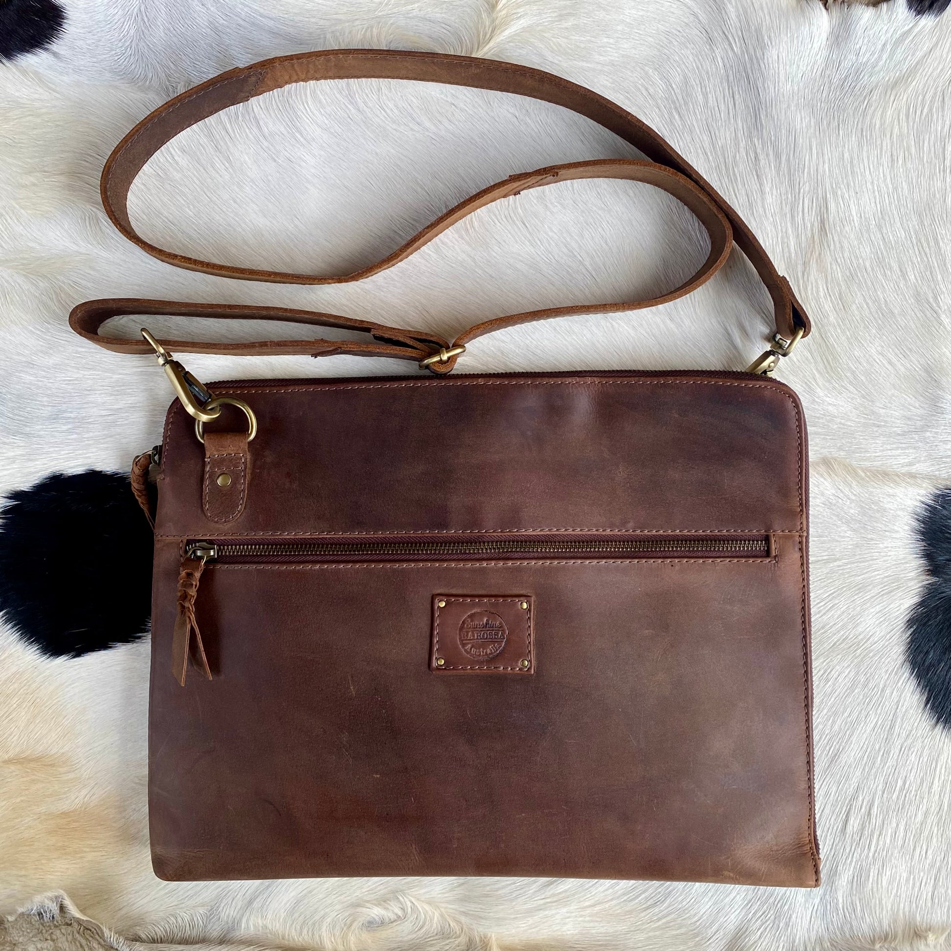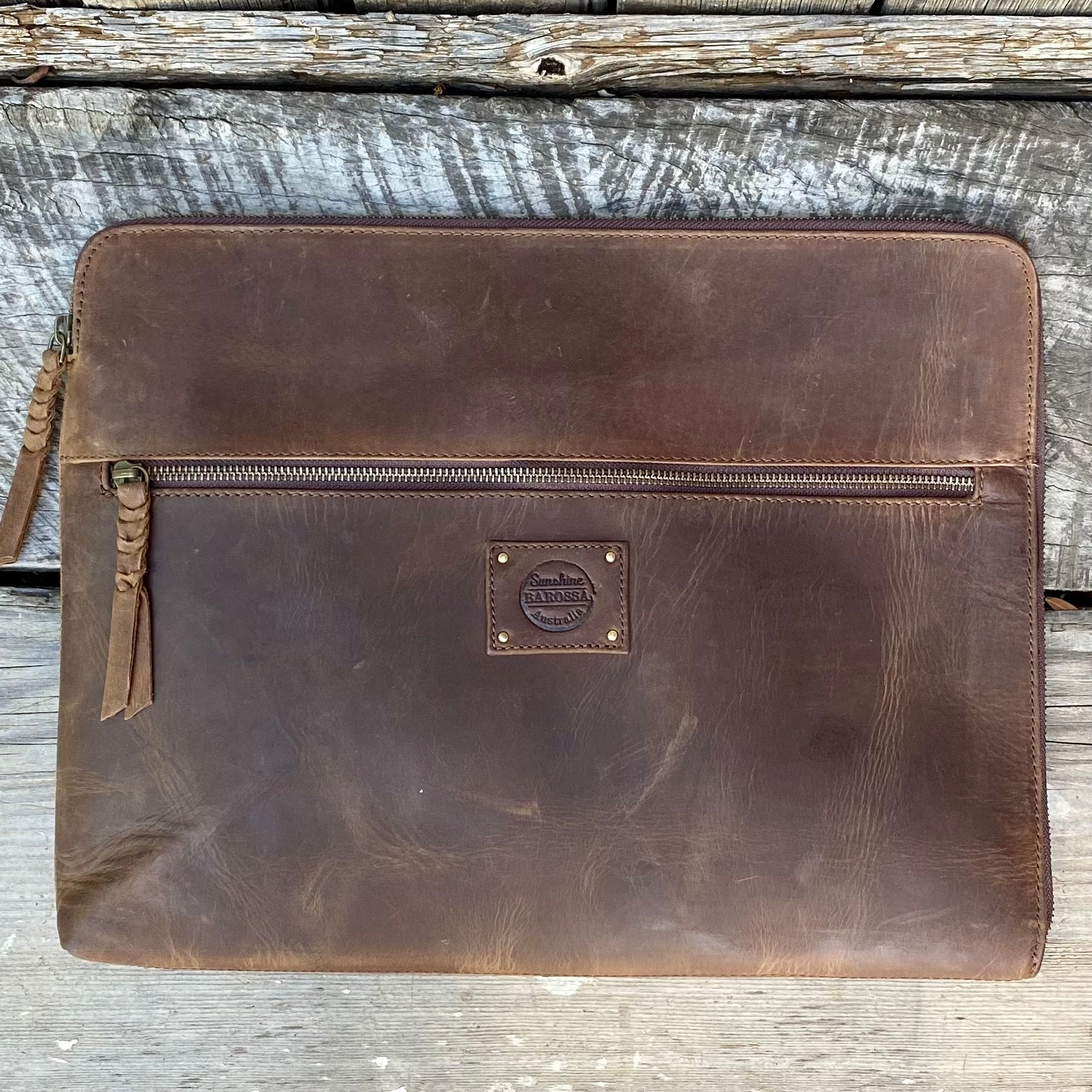 Yet another exquisite piece of craftsmanship, the Leather Laptop /Notebook Sleeve is the only protector you will ever need for work or study. Crafted from gorgeous, durable Buffalo leather, this sleeve, when properly cared for, is sure to see you through all your working days and beyond. Adorned with high quality heavy-duty antique brass hardware, a signature of Sunshine Barossa designs, this sleeve will certainly last the distance.