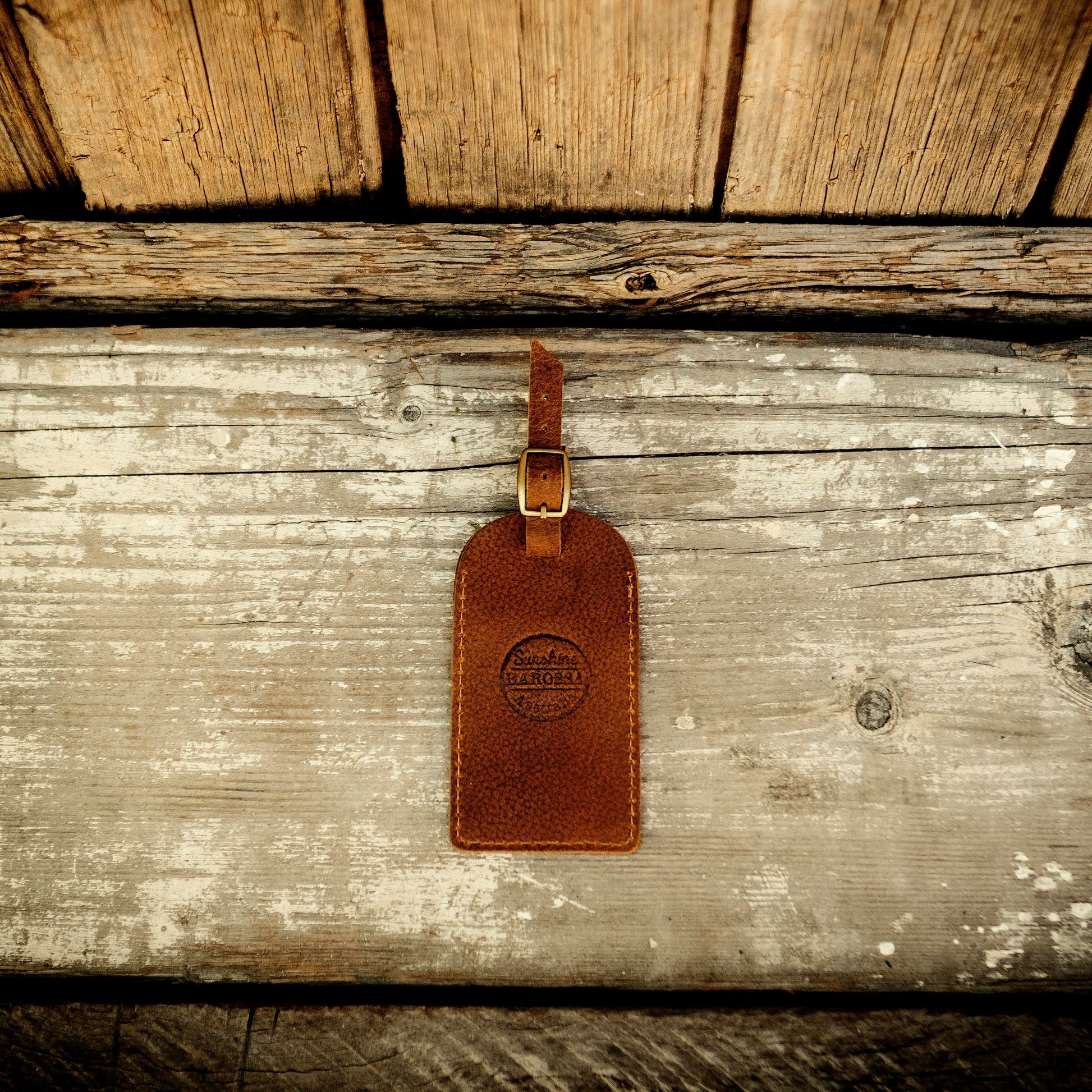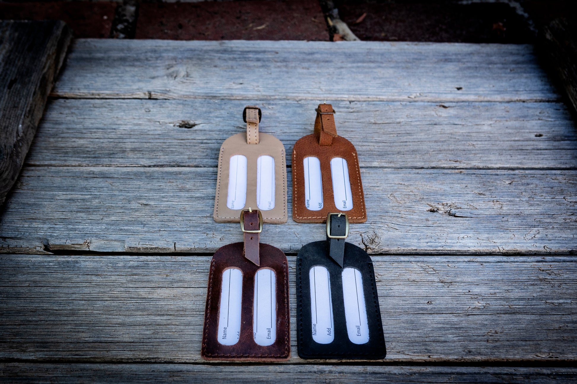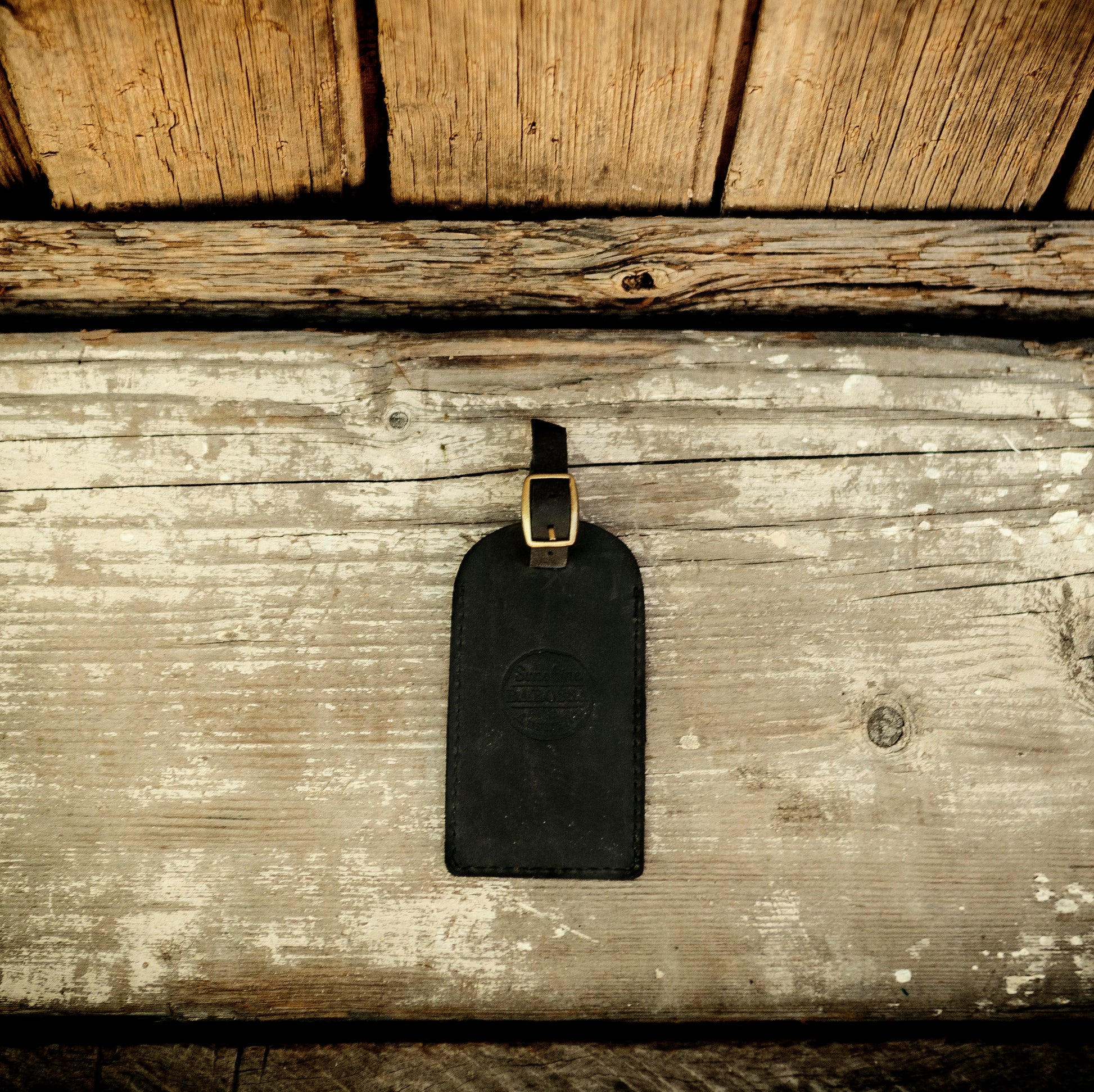 1. a leather luggage tag with two open viewing areas to display your identifying information