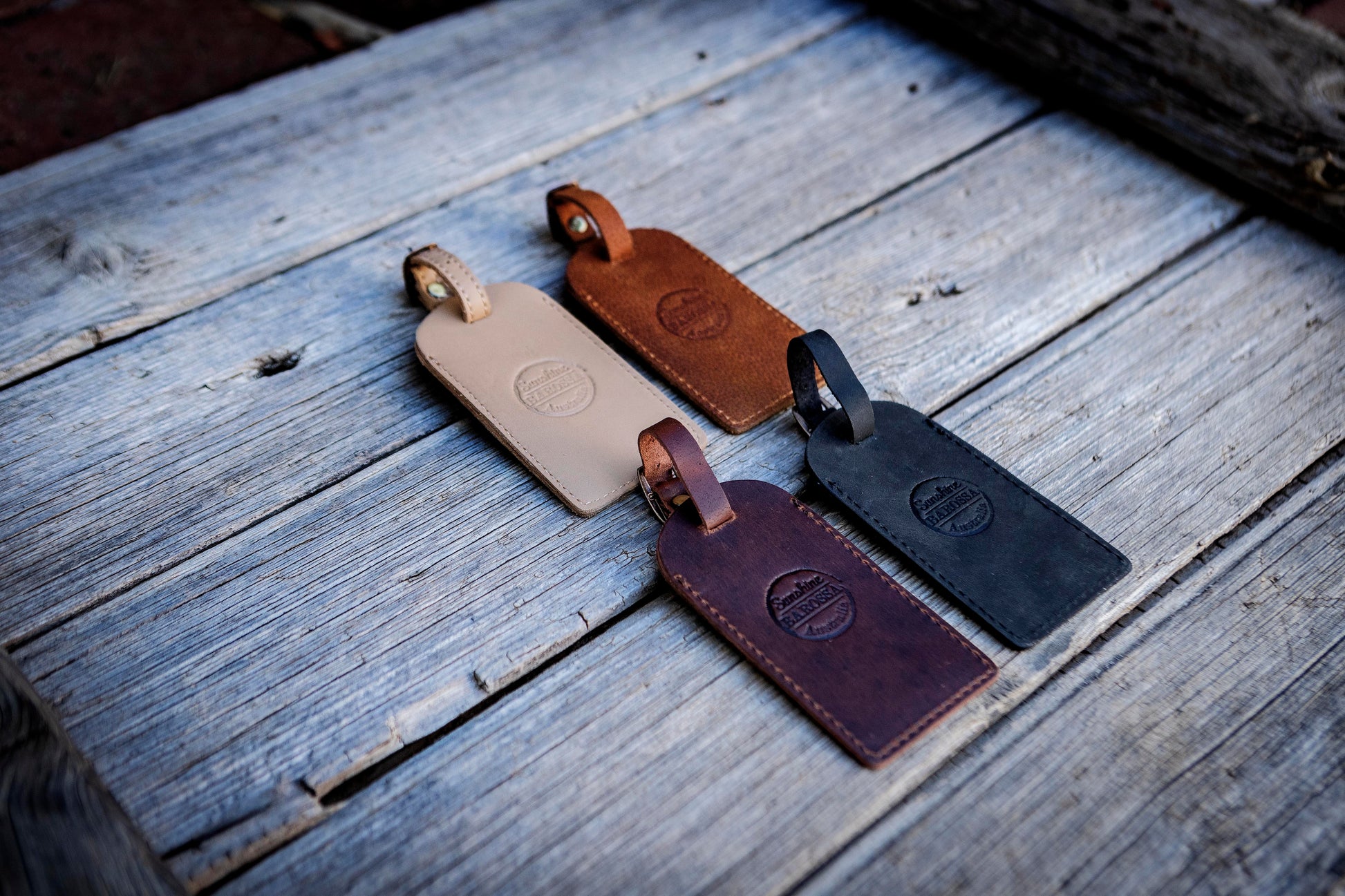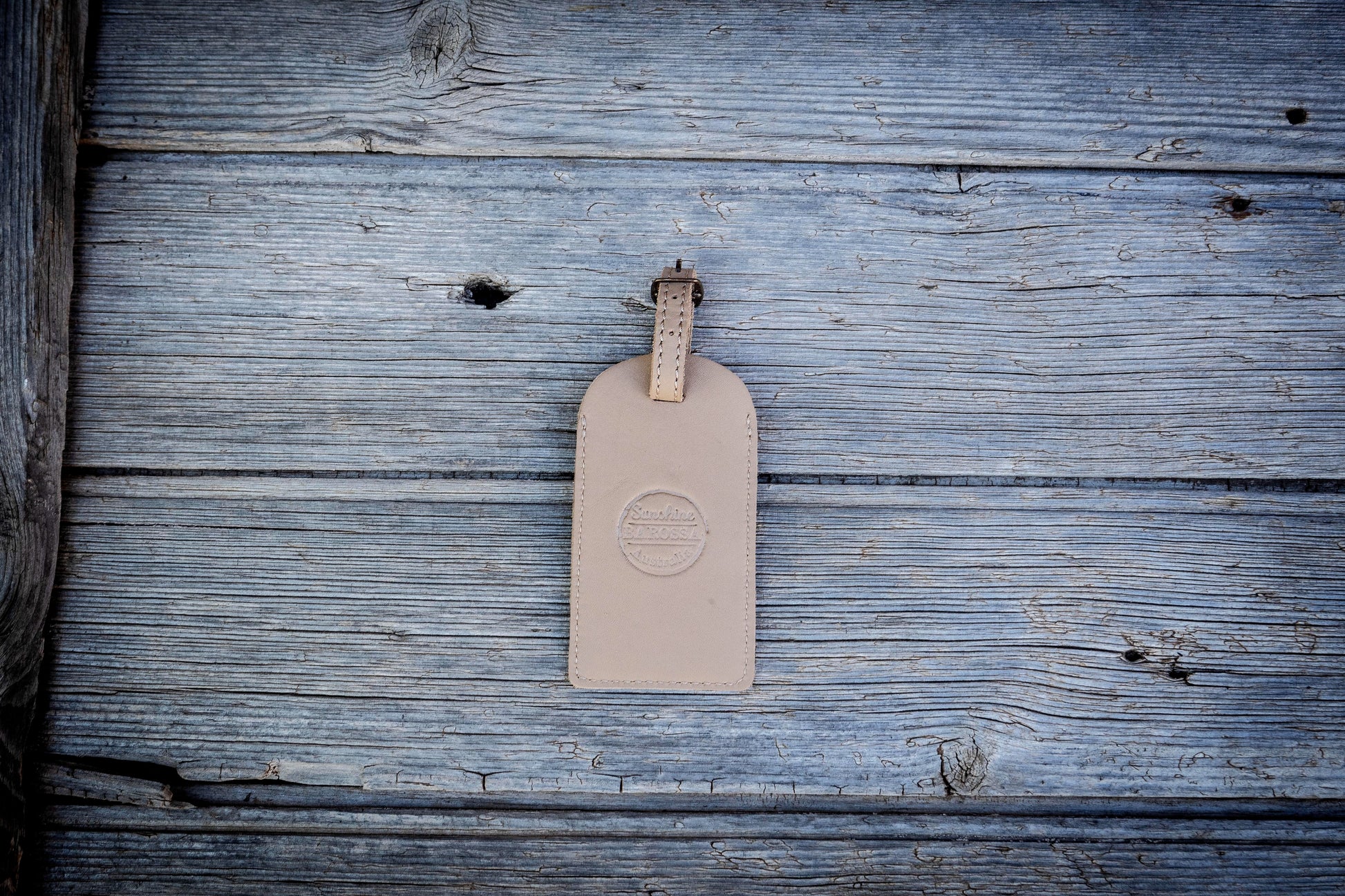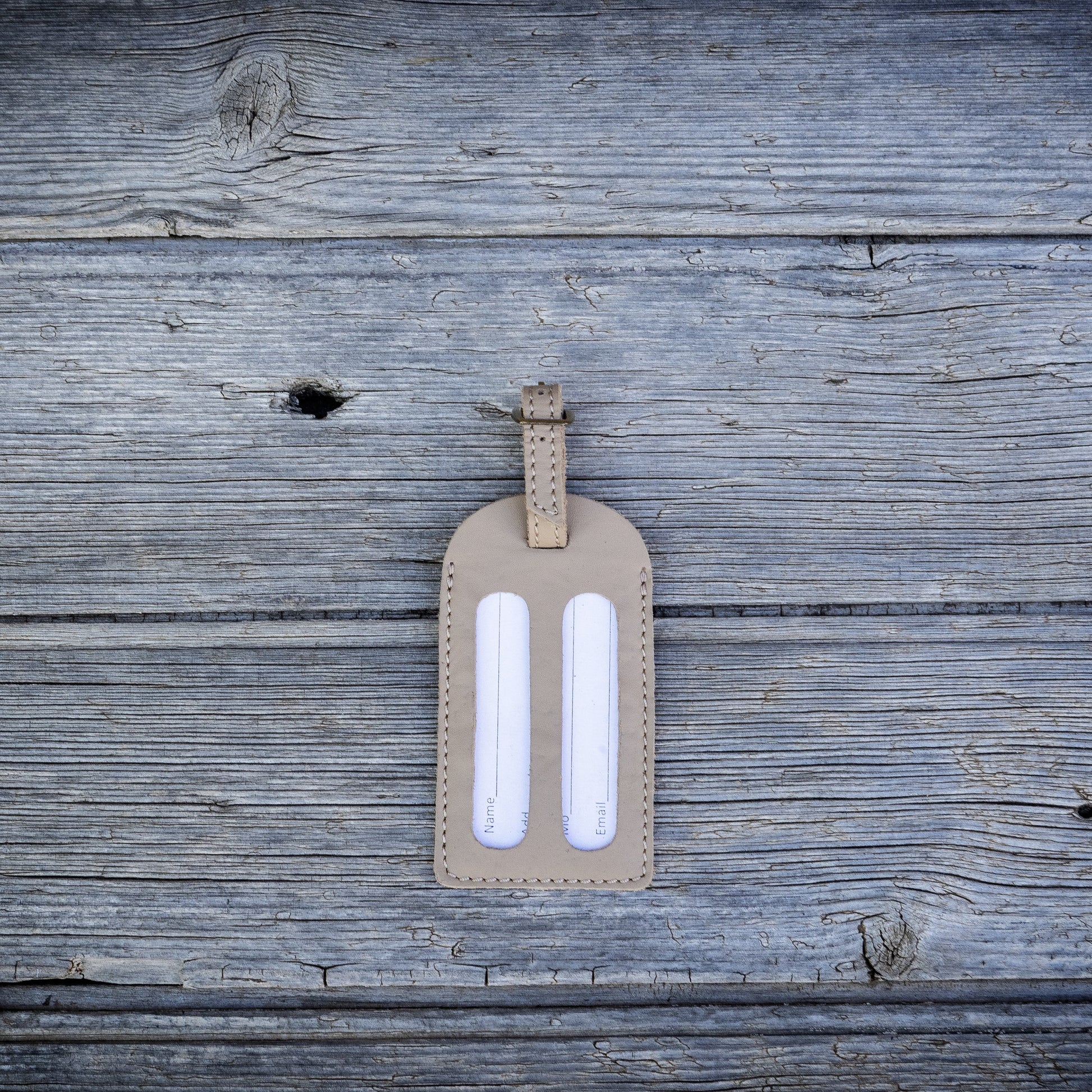 1. a leather luggage tag with two open viewing areas to display your identifying information