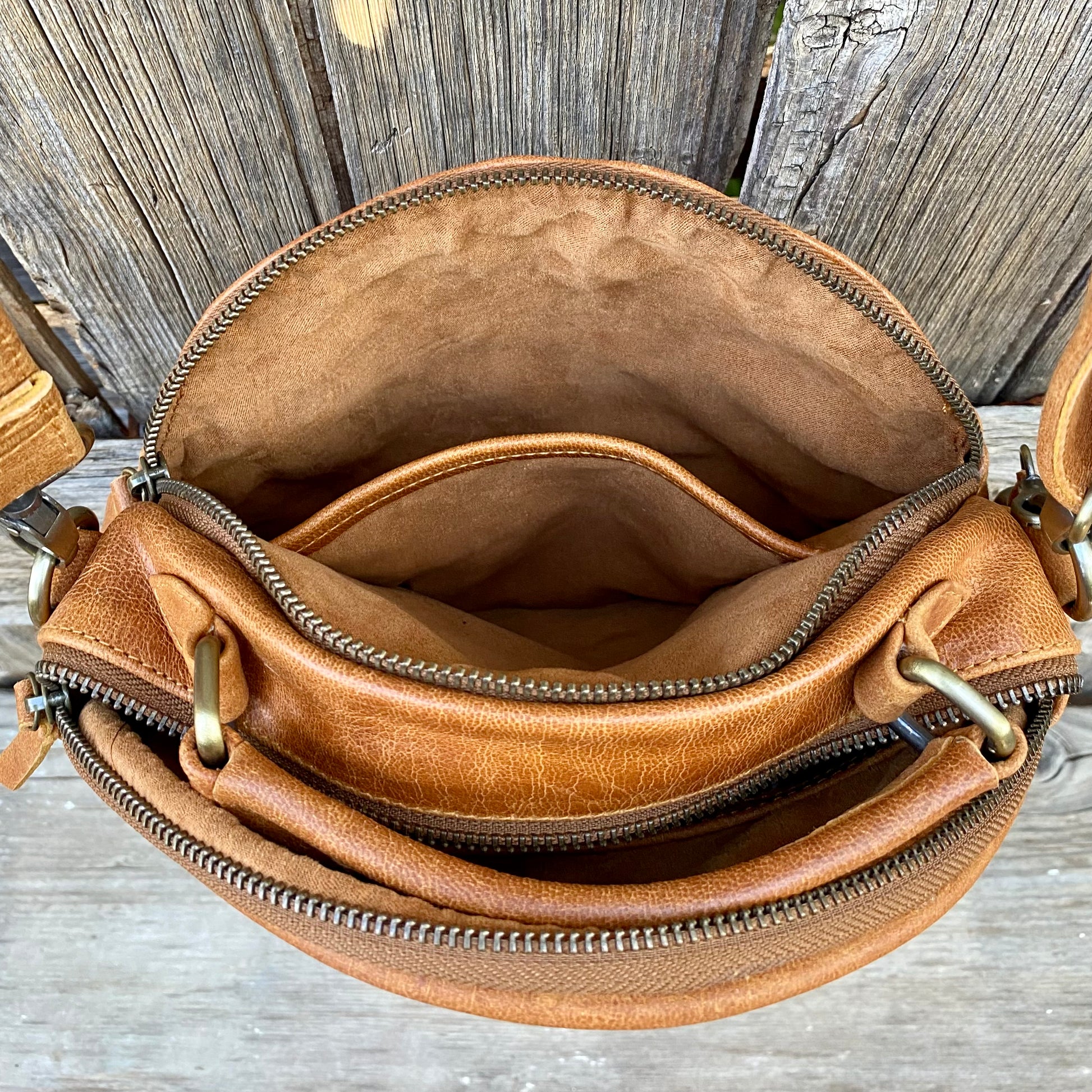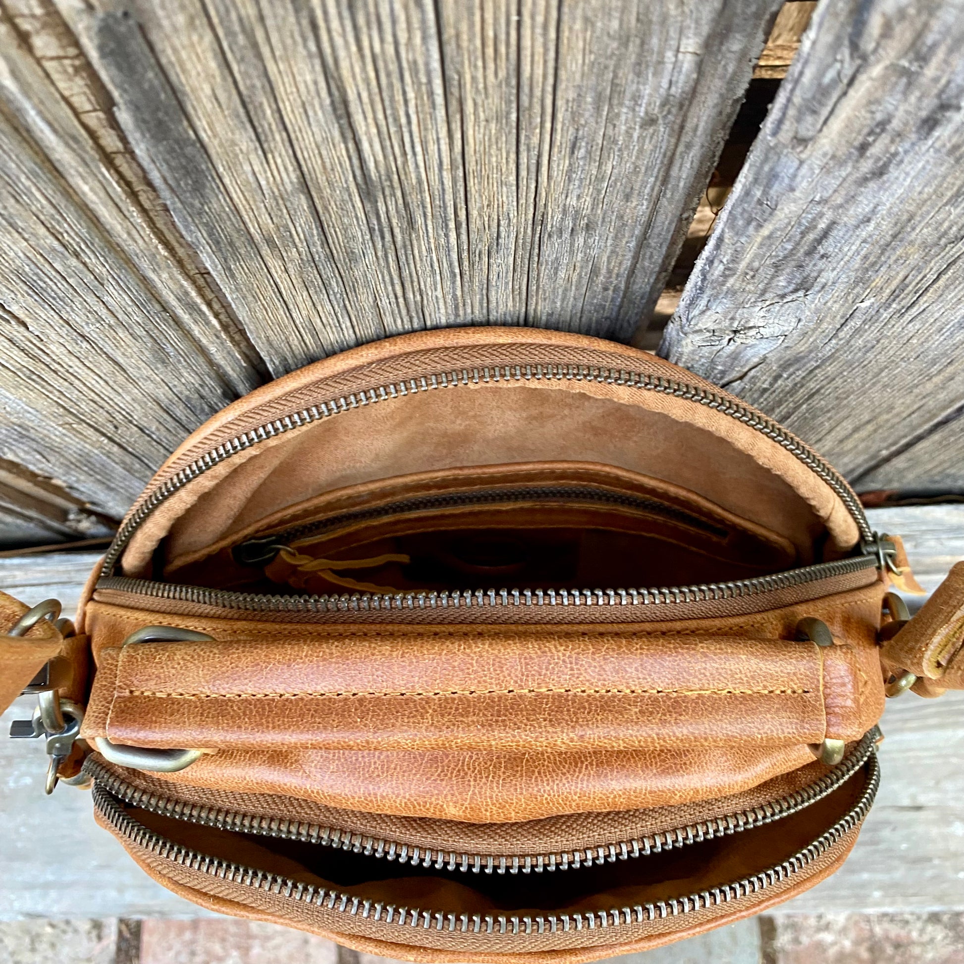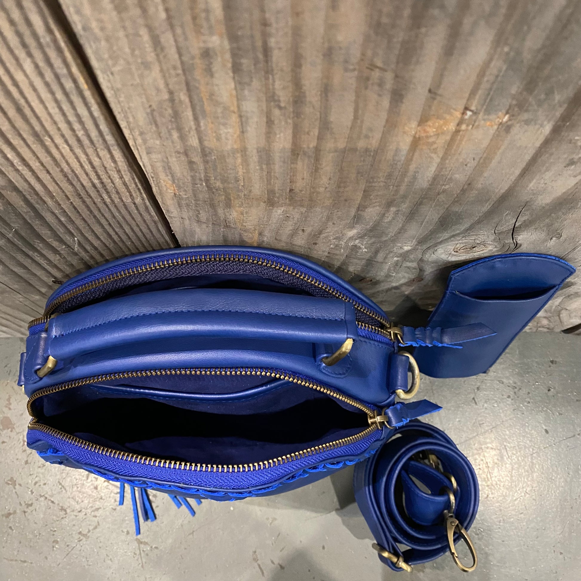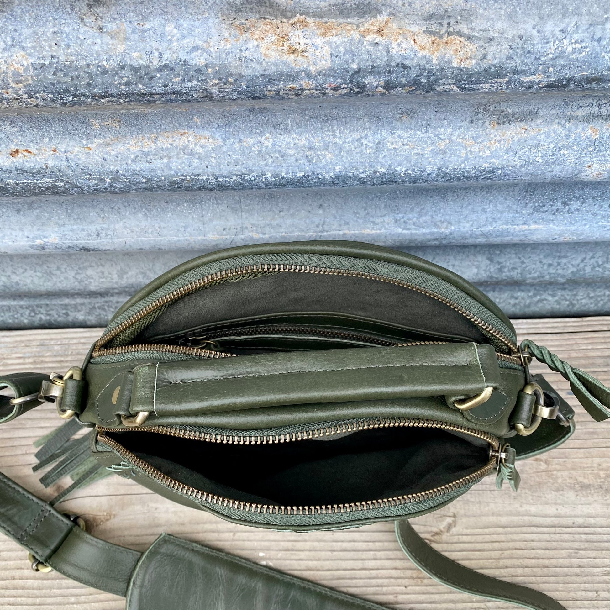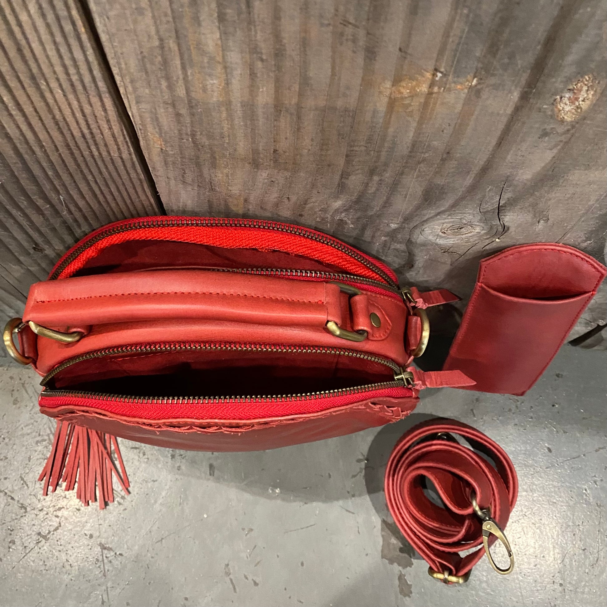 The Leather Round bag is a stunning, elegant yet classic design with its beautiful plain leather front and criss-cross leather stitching around the edge. Making this a definite head-turner with any outfit.