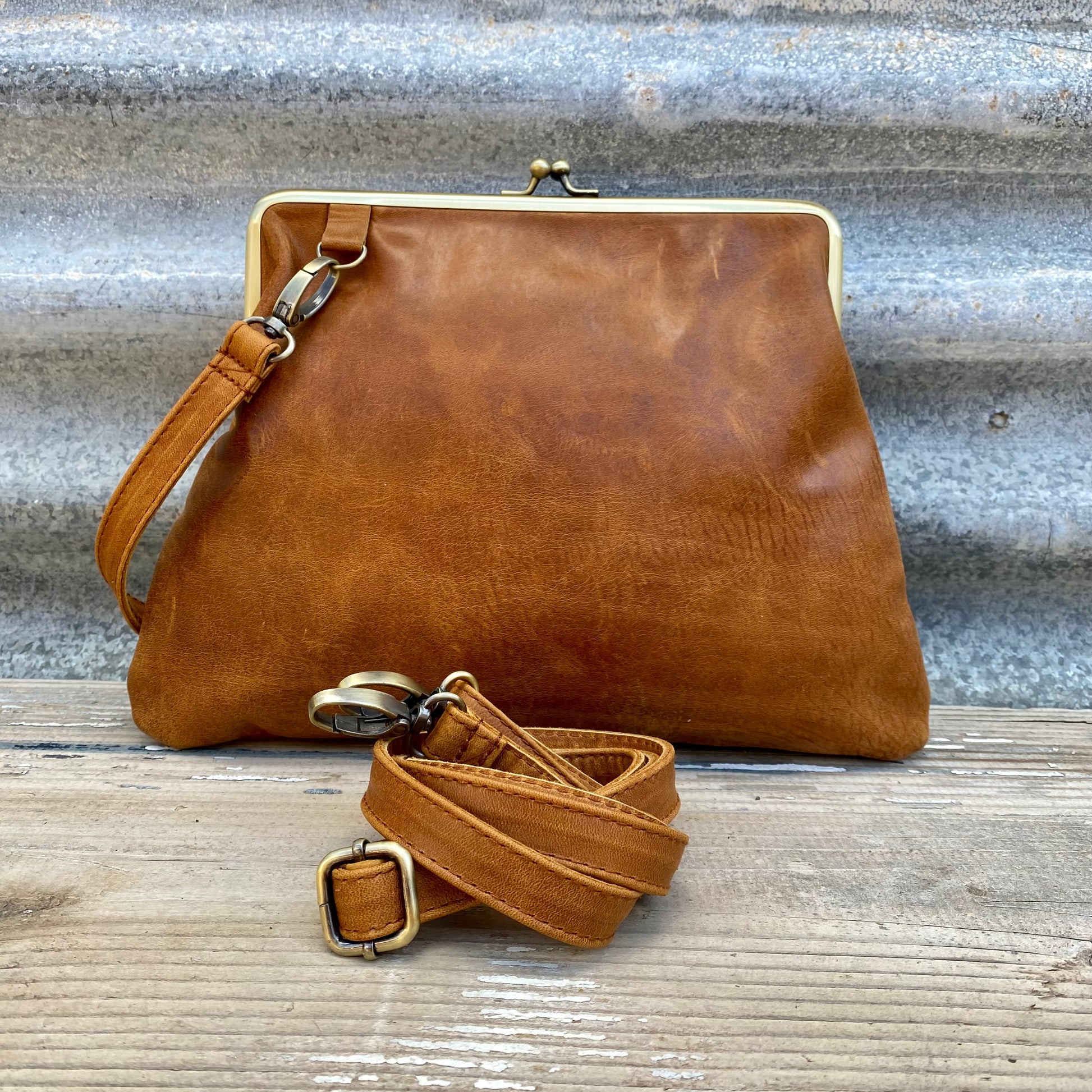There are several colour options available for this stunning handcrafted, high-quality leather snap clutch. The vintage look is what attracts it to be owners which are created not only with the stunning leathers used but with its antique brass metal fittings.