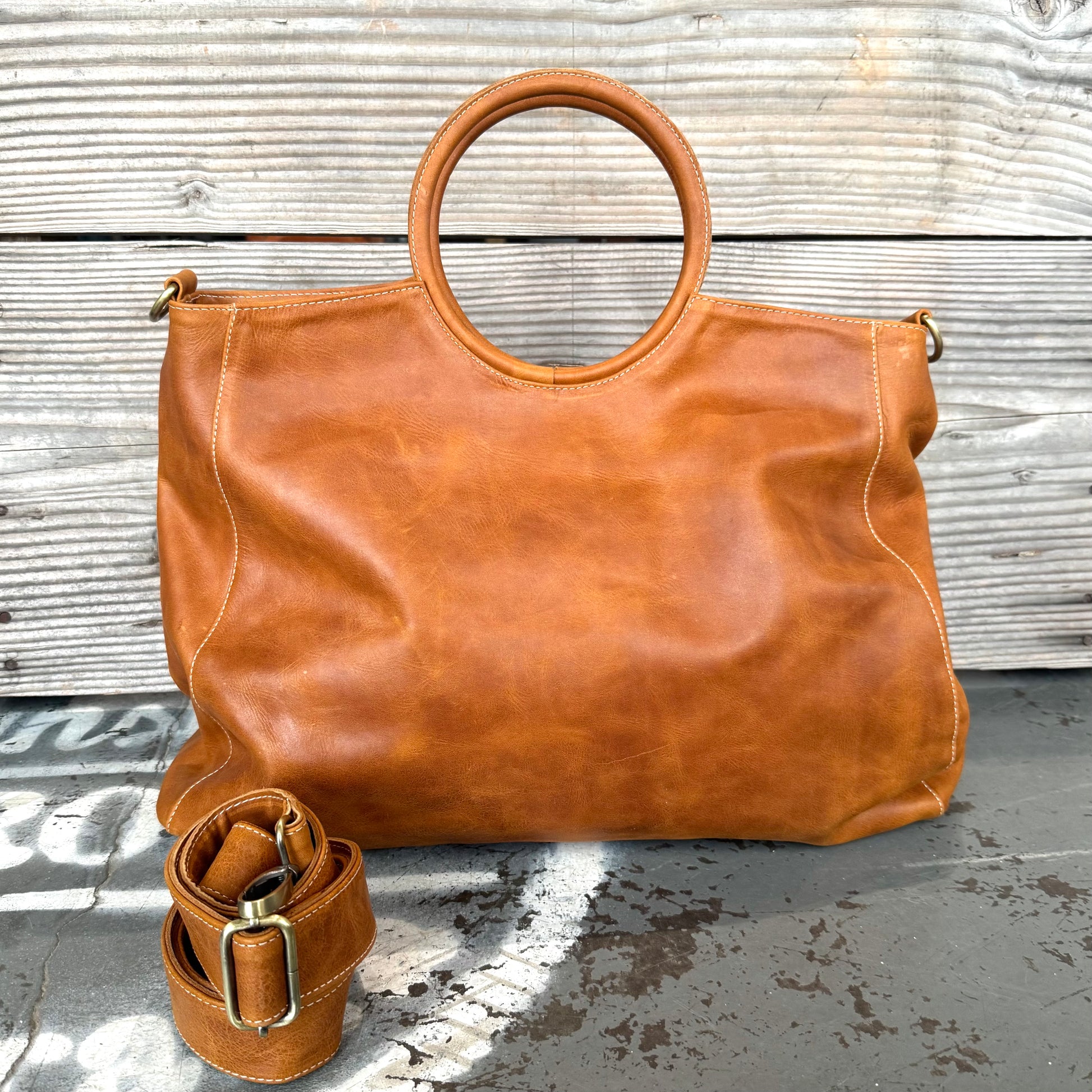 Carol, Sunshine Barossa Australia's owner has always loved the look of leather covered ring handles for a feature of one of her handbags and here it is in the evolved larger in size that customers asked for! The perfect day shopping bag to a stunning work necessity that looks amazing on your arm. With its added adjustable clip-on across the body or over the shoulder strap this beauty can be worn during the day and then when your ventures kick on and take you into the evenings you can either just tuck the long strap inside or detach from the bag and she becomes the large head turning evening accessory everyone needs. The contrast stitching is a love for many that adds to its uniqueness and beauty.