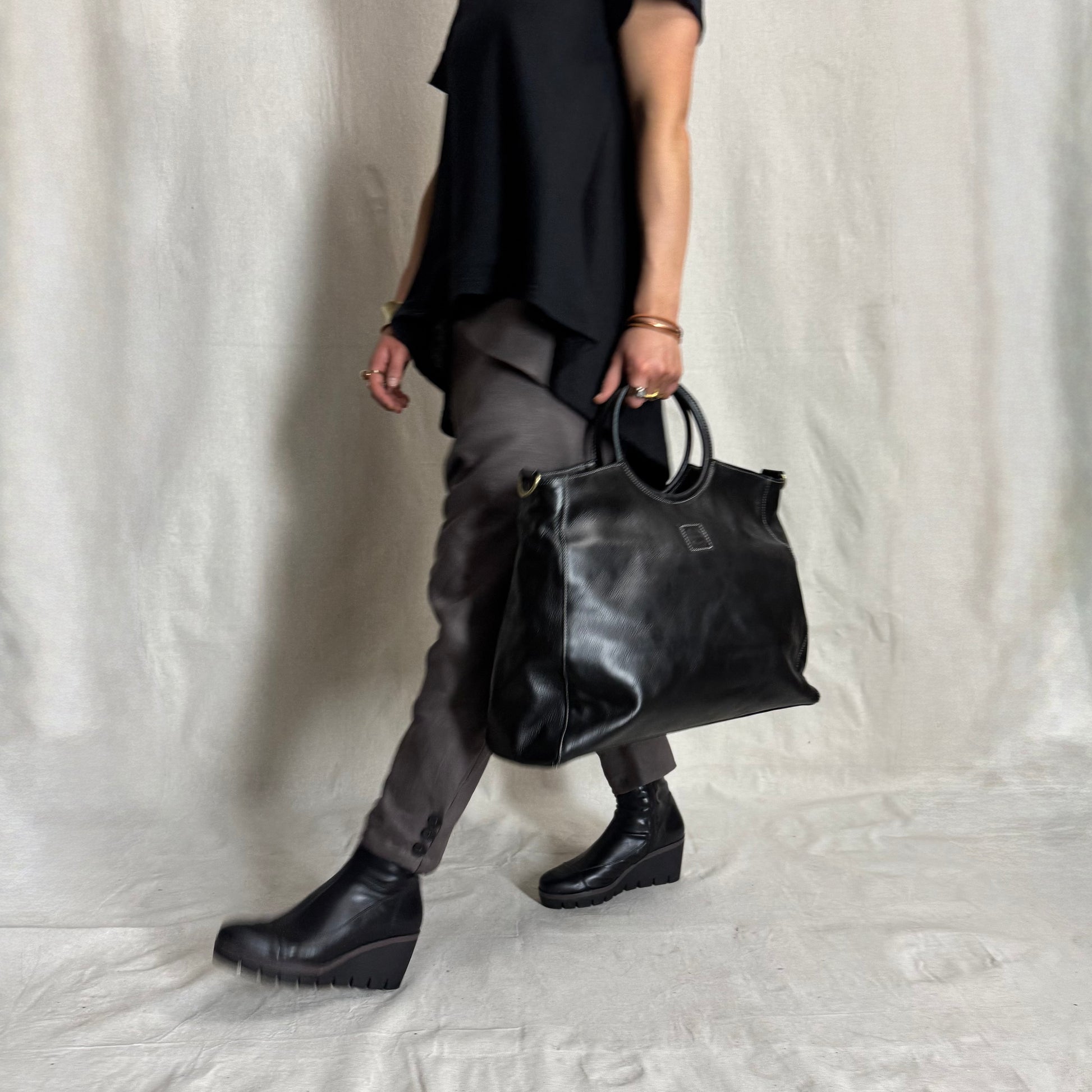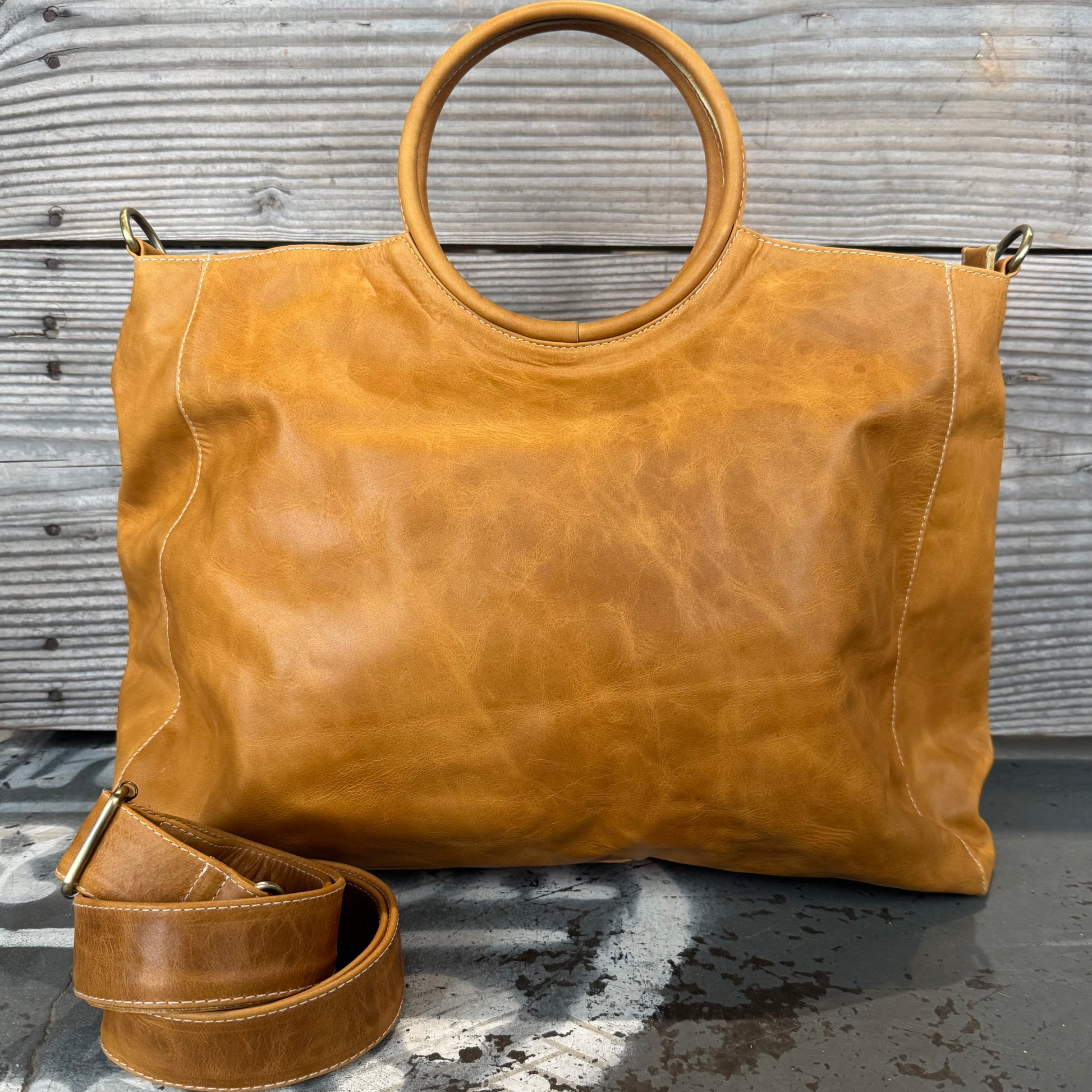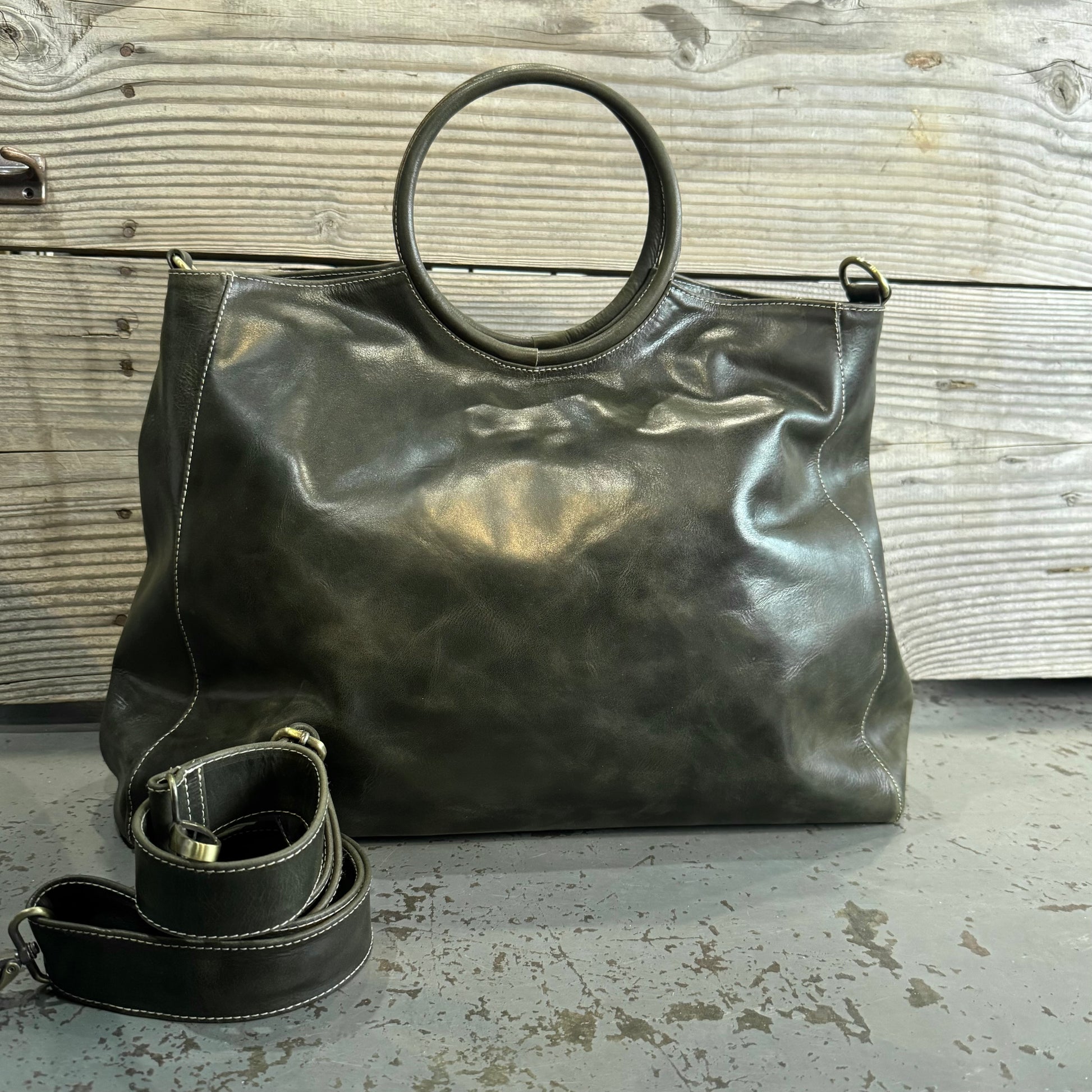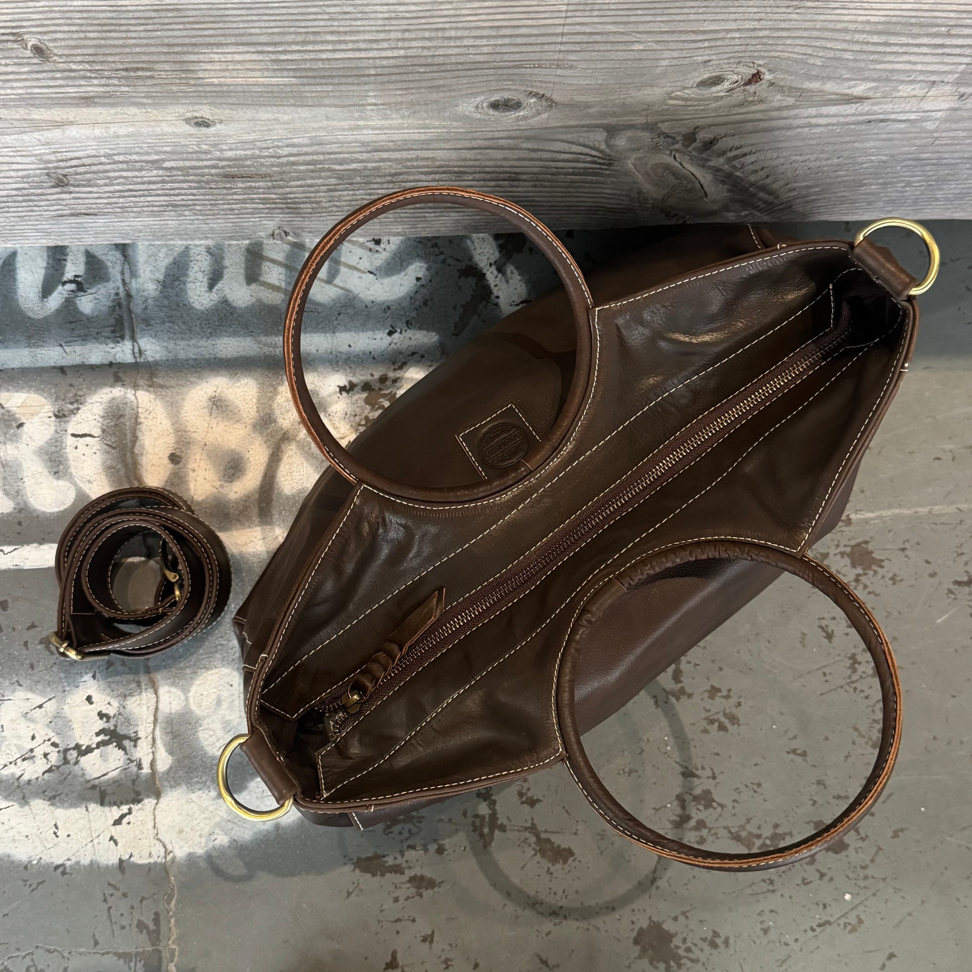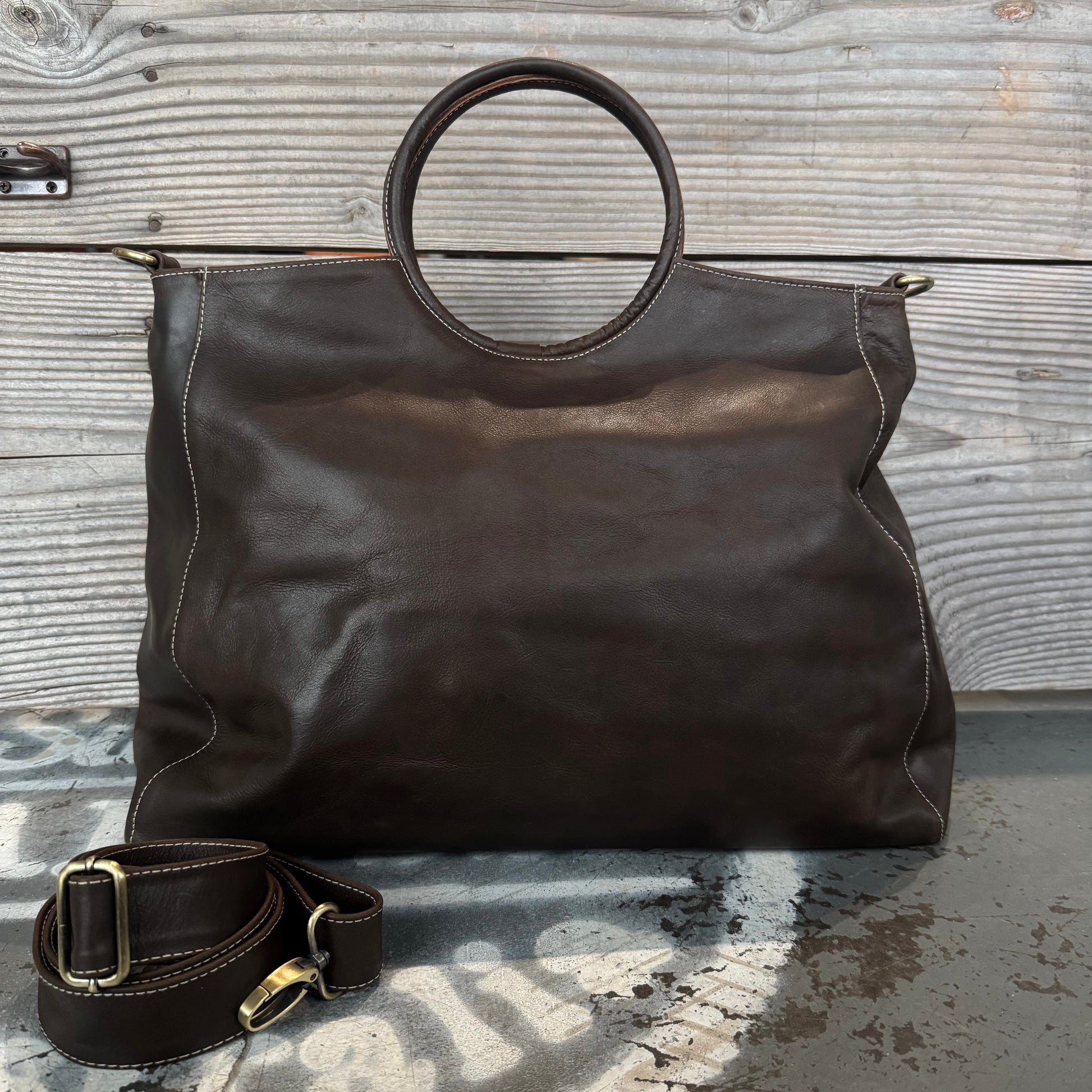 There are three colour options available for this stunning handcrafted, high-quality Large Ring Handle Bag. The vintage look, yet modern feel is what attracts it to be owners which is created not only with the stunning leathers used but the shape, size and handles of this stunner.