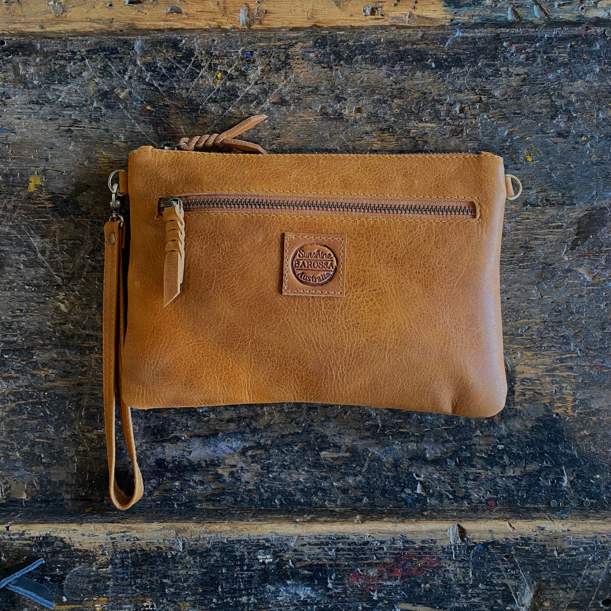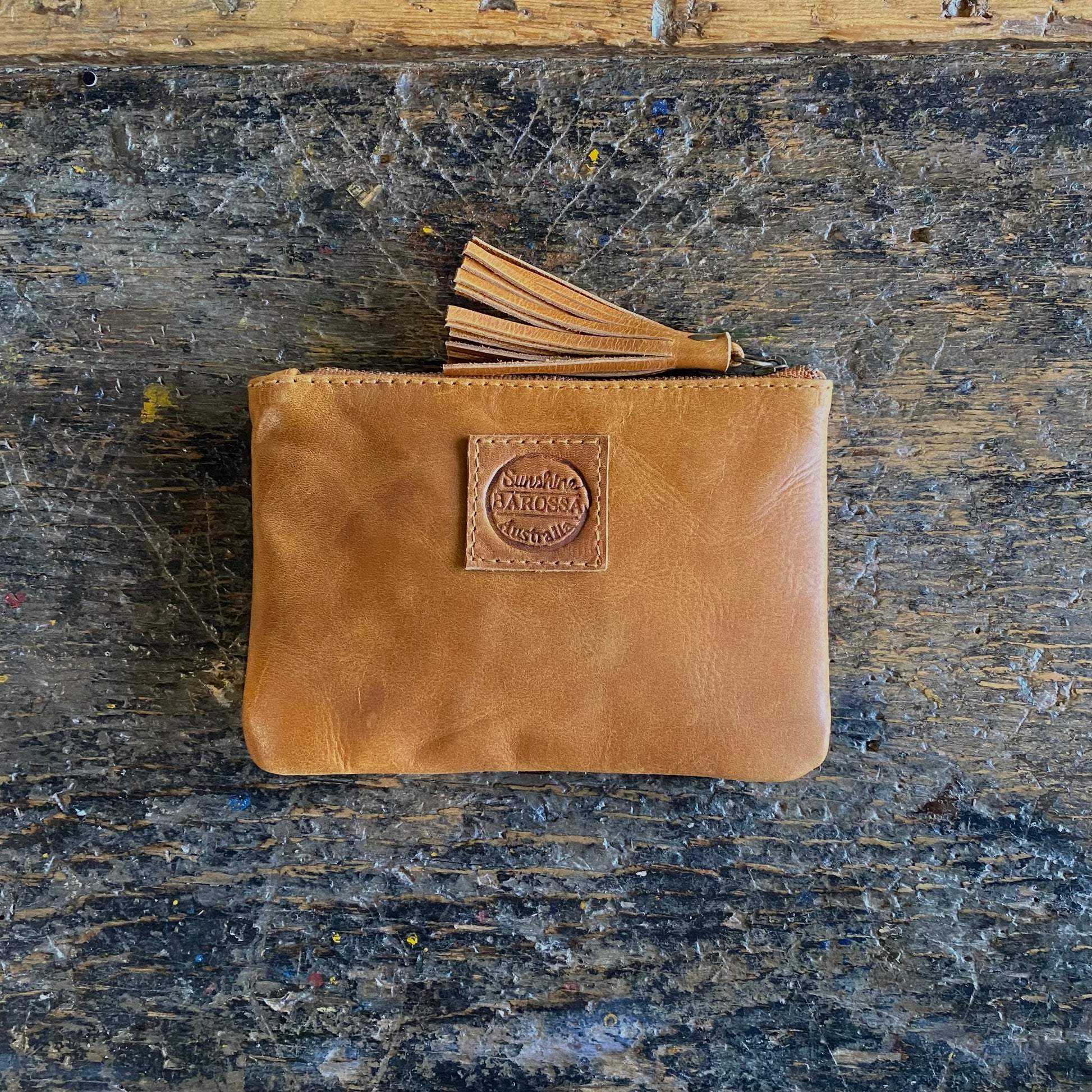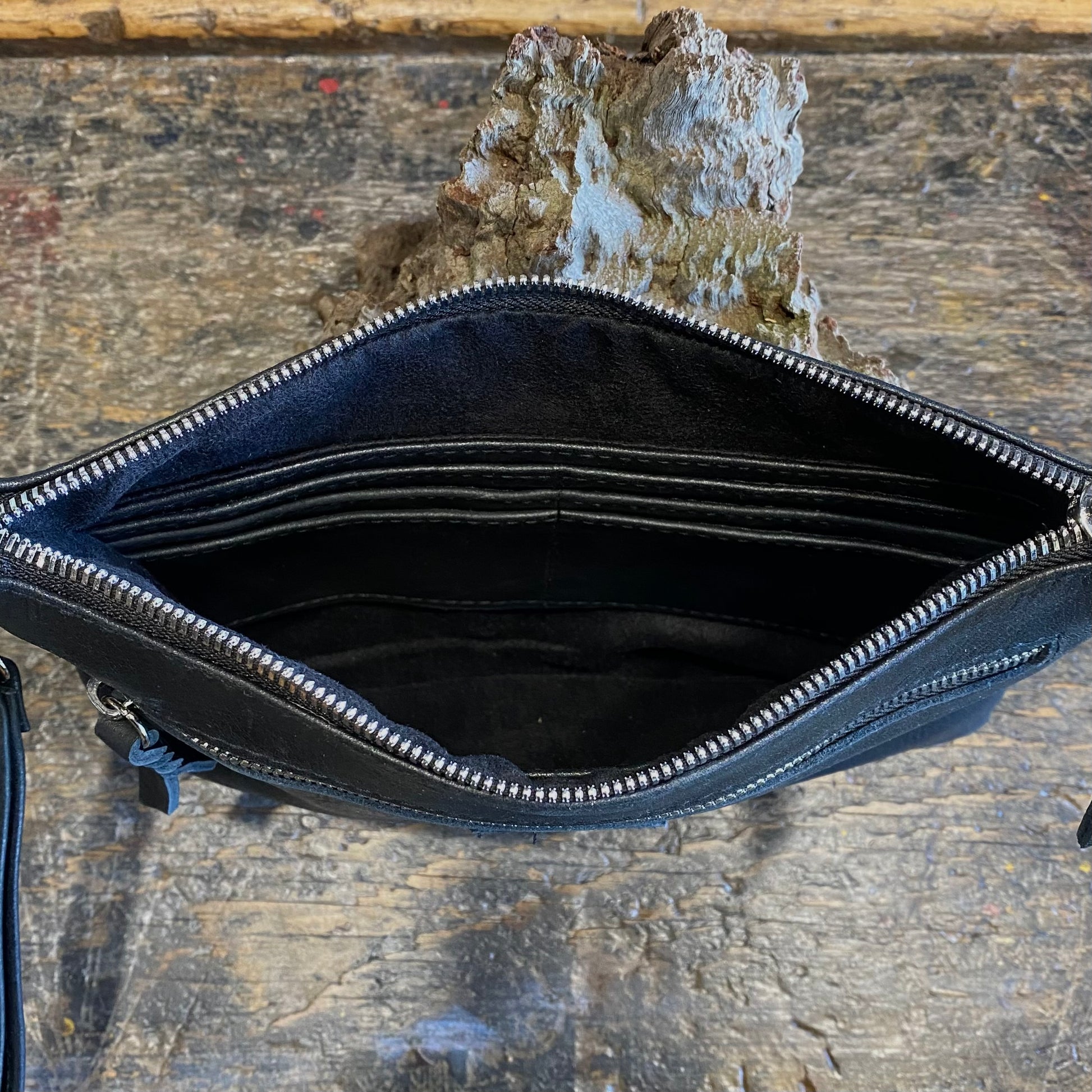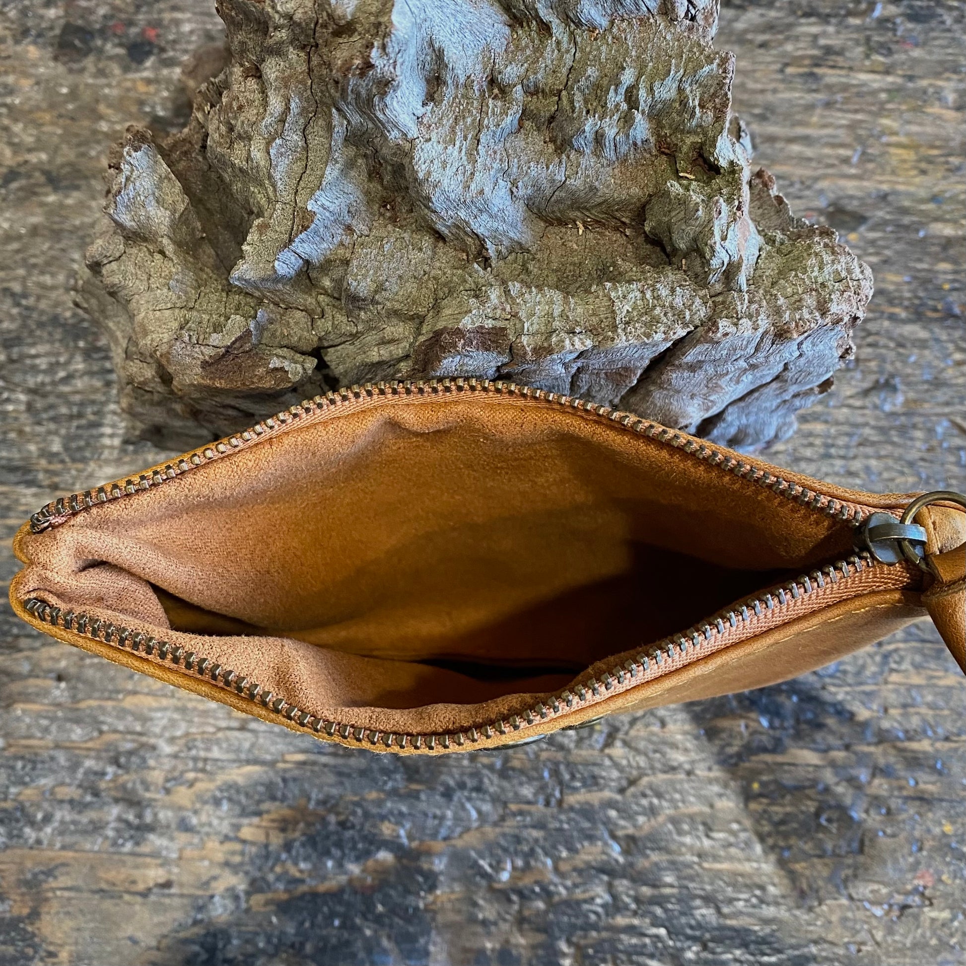 Internal metal zippered pocket 13cm wide with plated leather pull