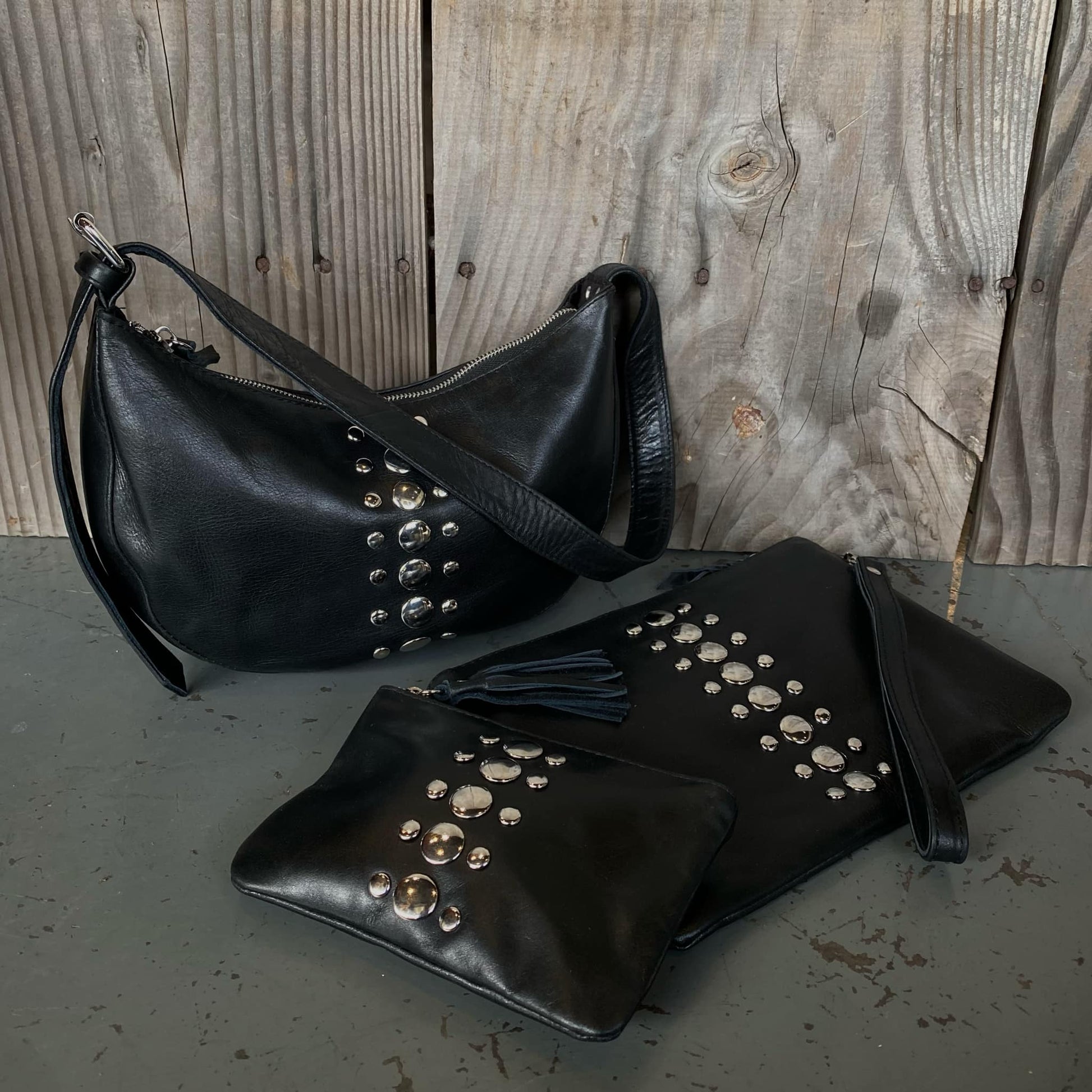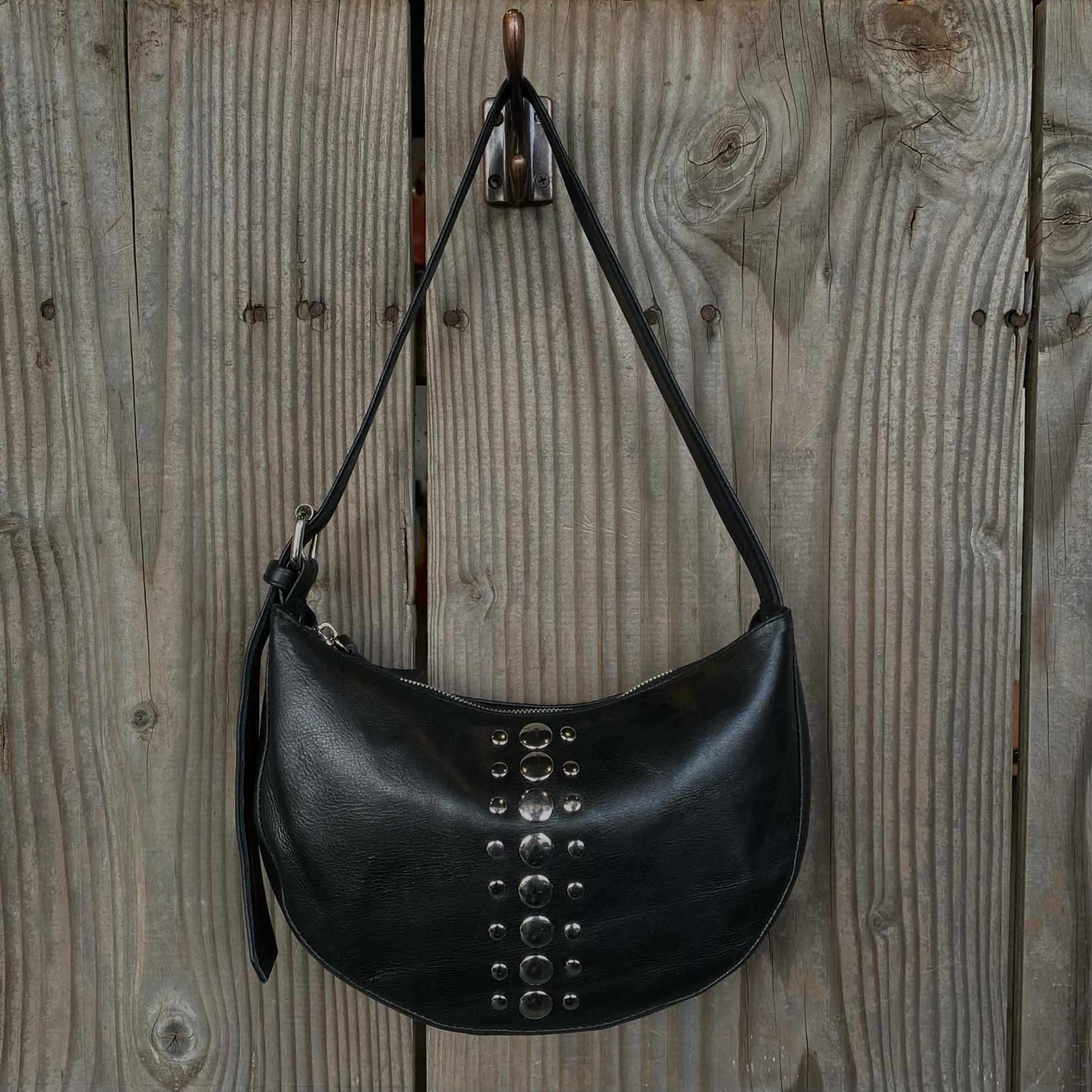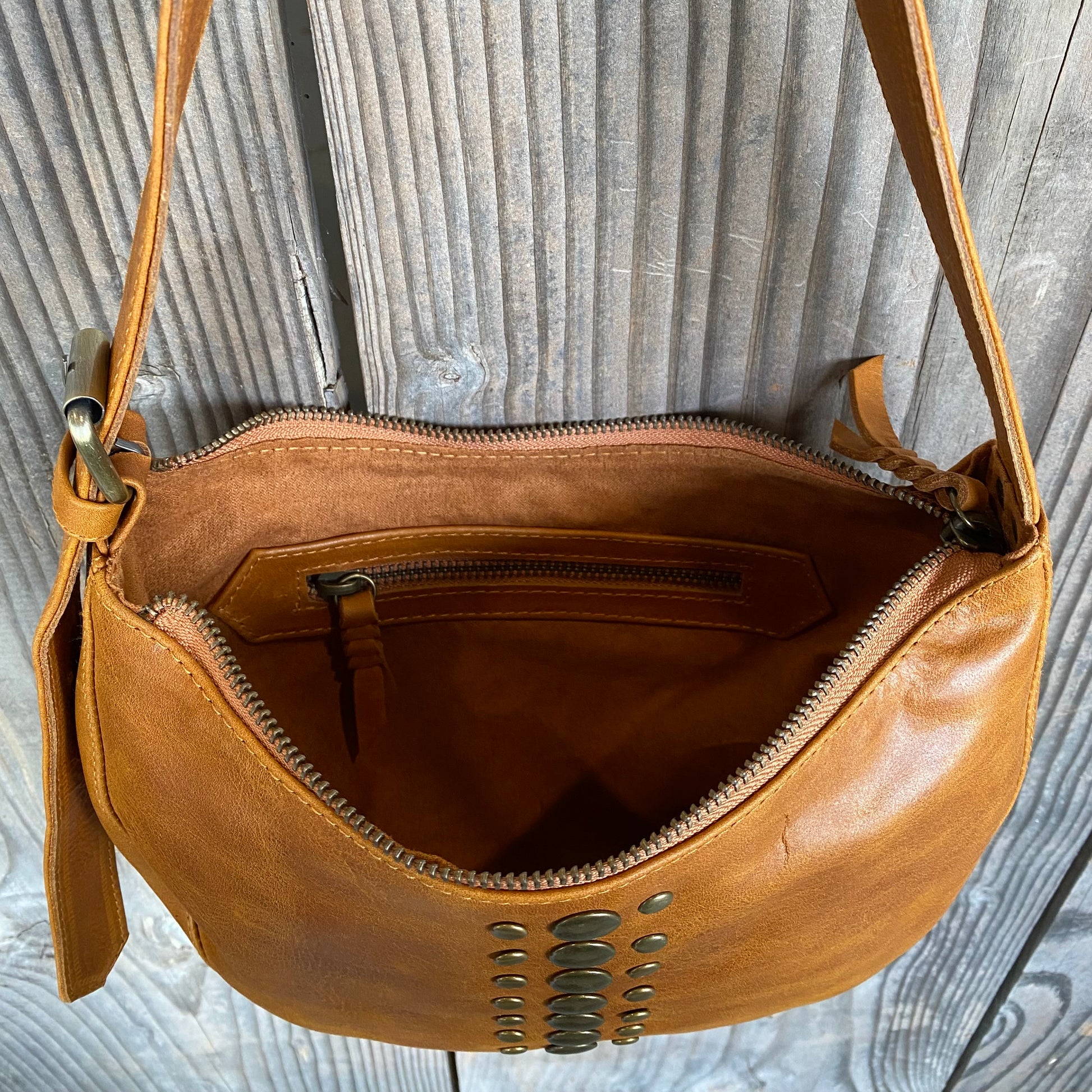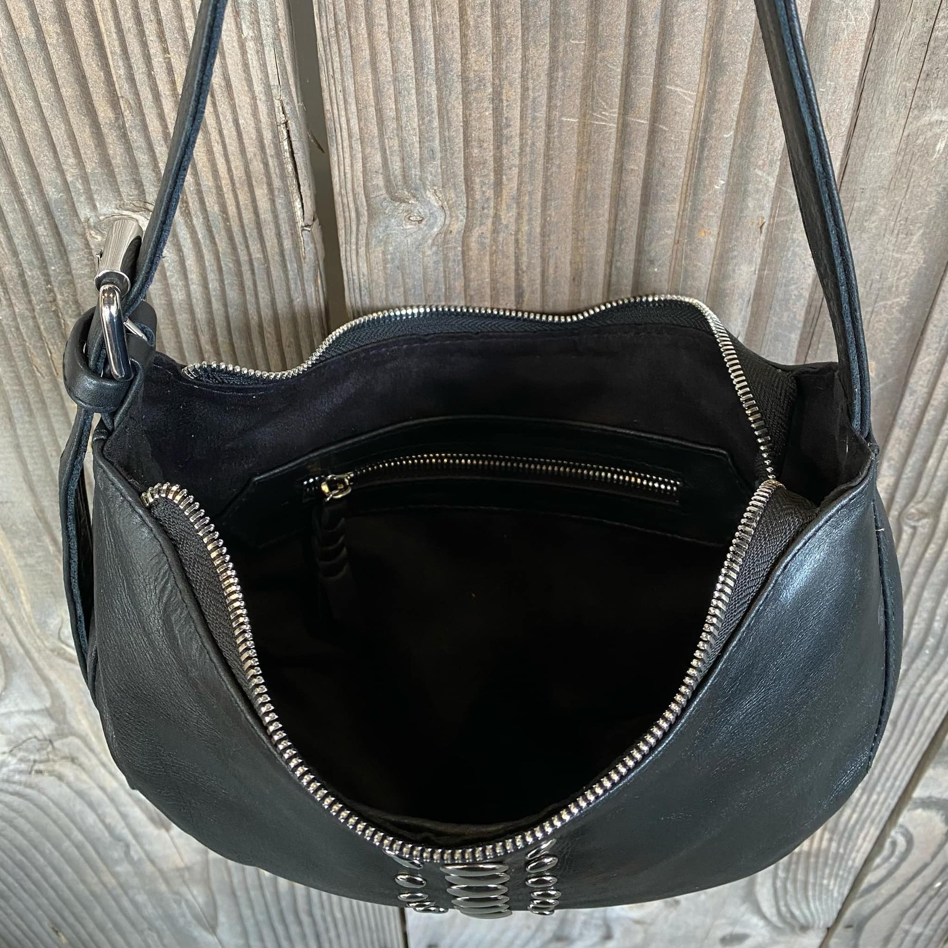 25cm metal zippered opening to the bag with plated leather zipper pull