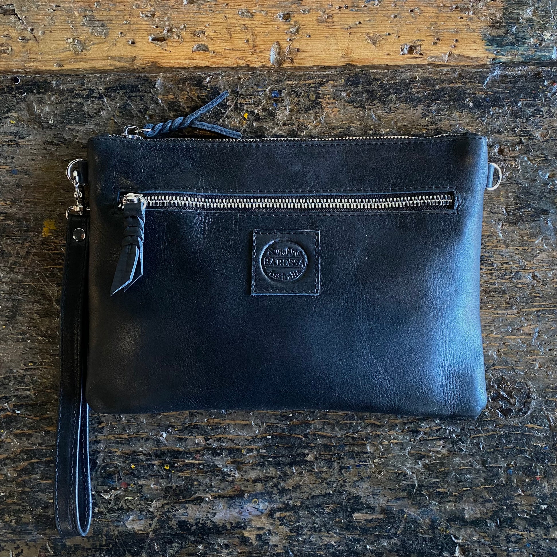 An internal zip pocket measuring 13cm x 10cm and a open pocket along the opposite side measuring 19cm x 13cm