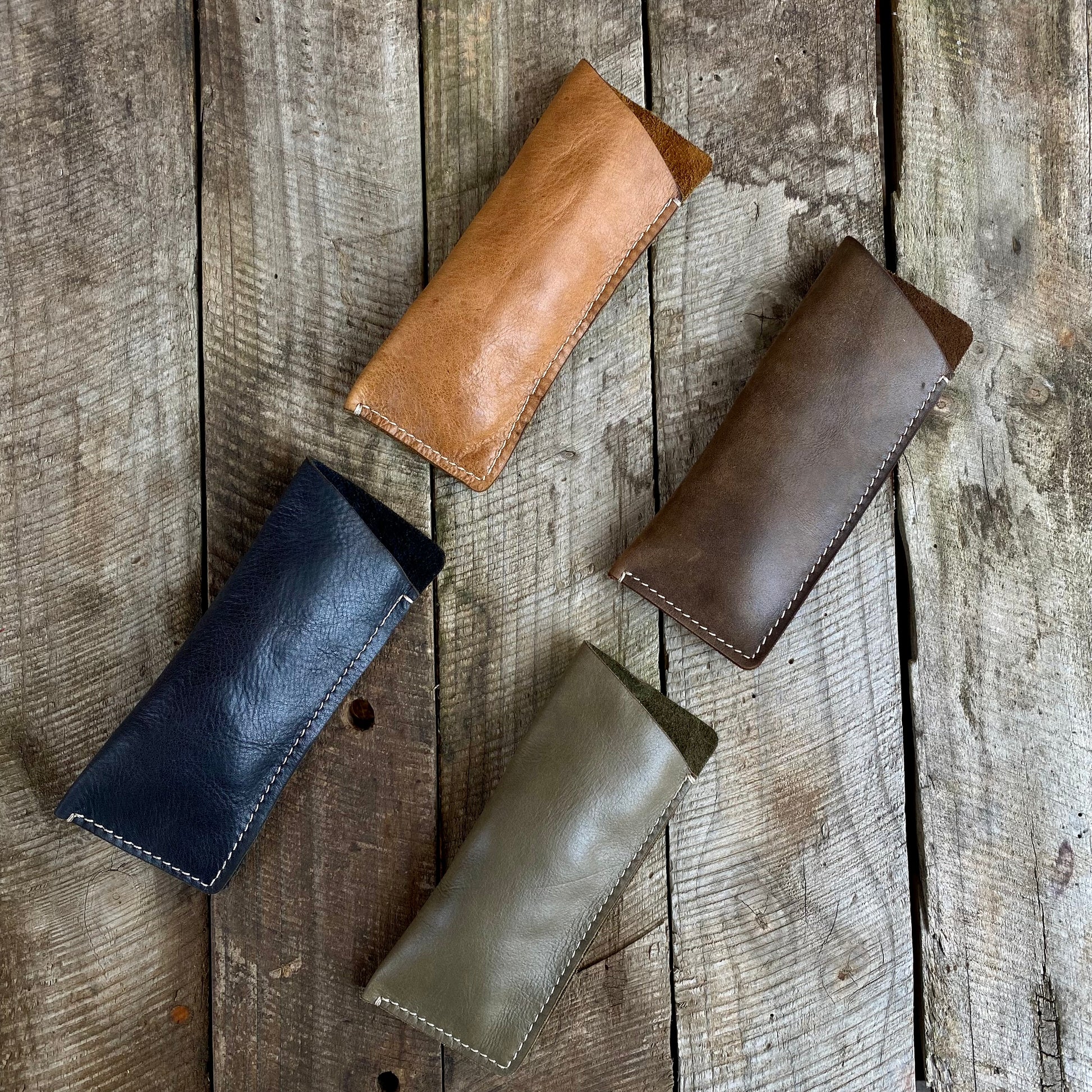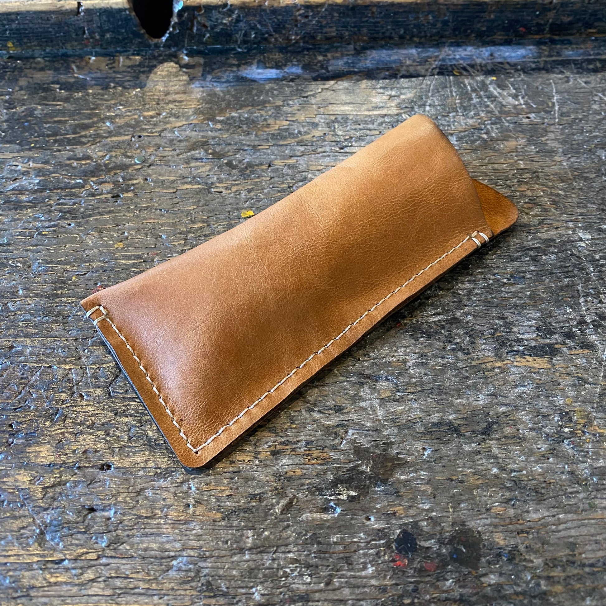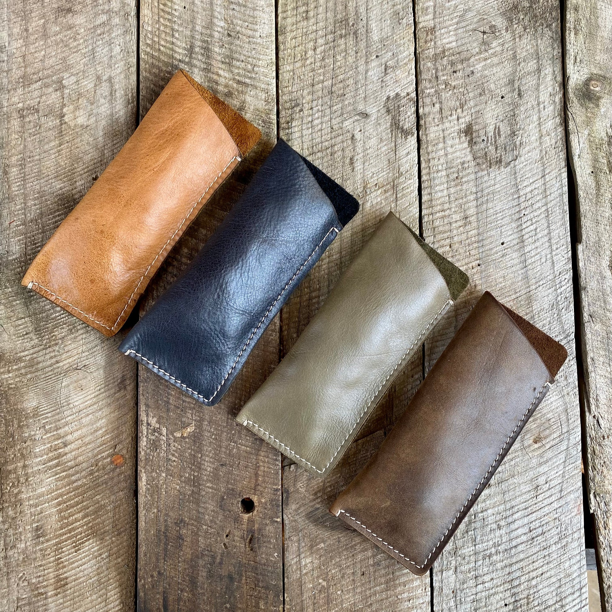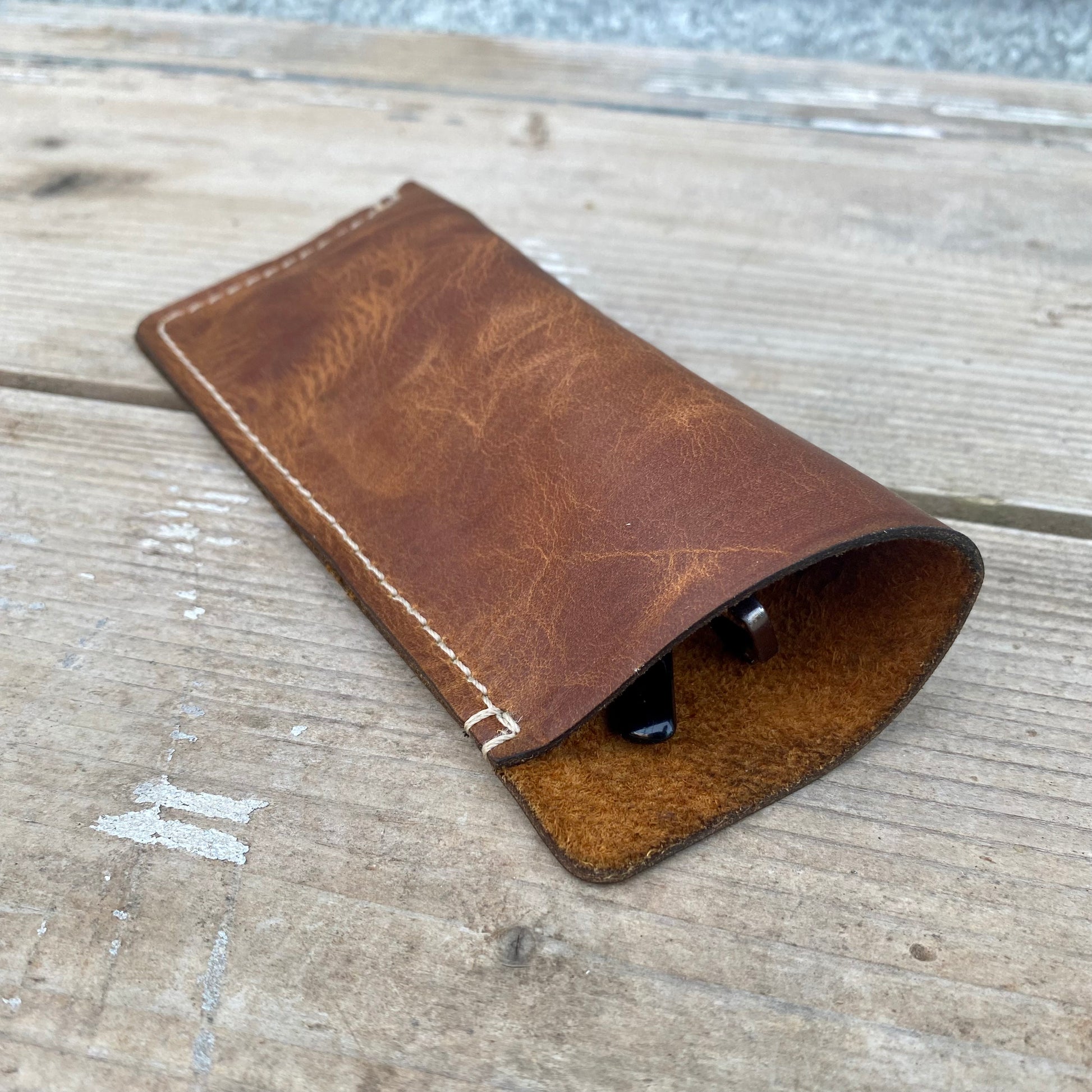 These hand crafted glasses sleeves are made of stunning buttery soft leathers. Usually upholstery leathers with a vintage feel which are extremely soft, yet hard wearing, so they will be with you for a very long time getting better with age. These pieces are suitable for anyone needing a smaller more practical way to house and transport their glasses. With the style of leathers used they will stretch around most glasses like a glove.