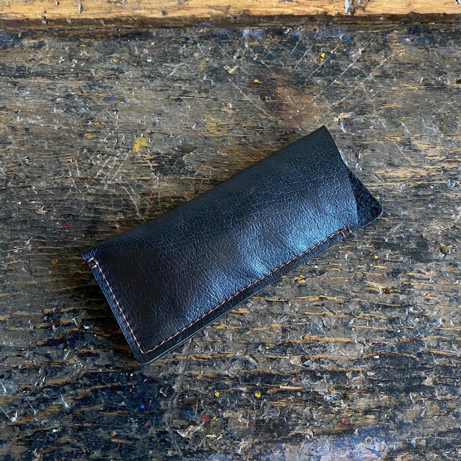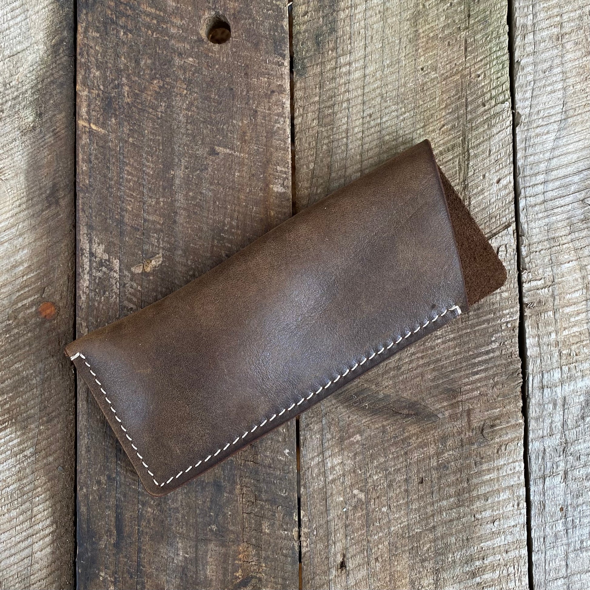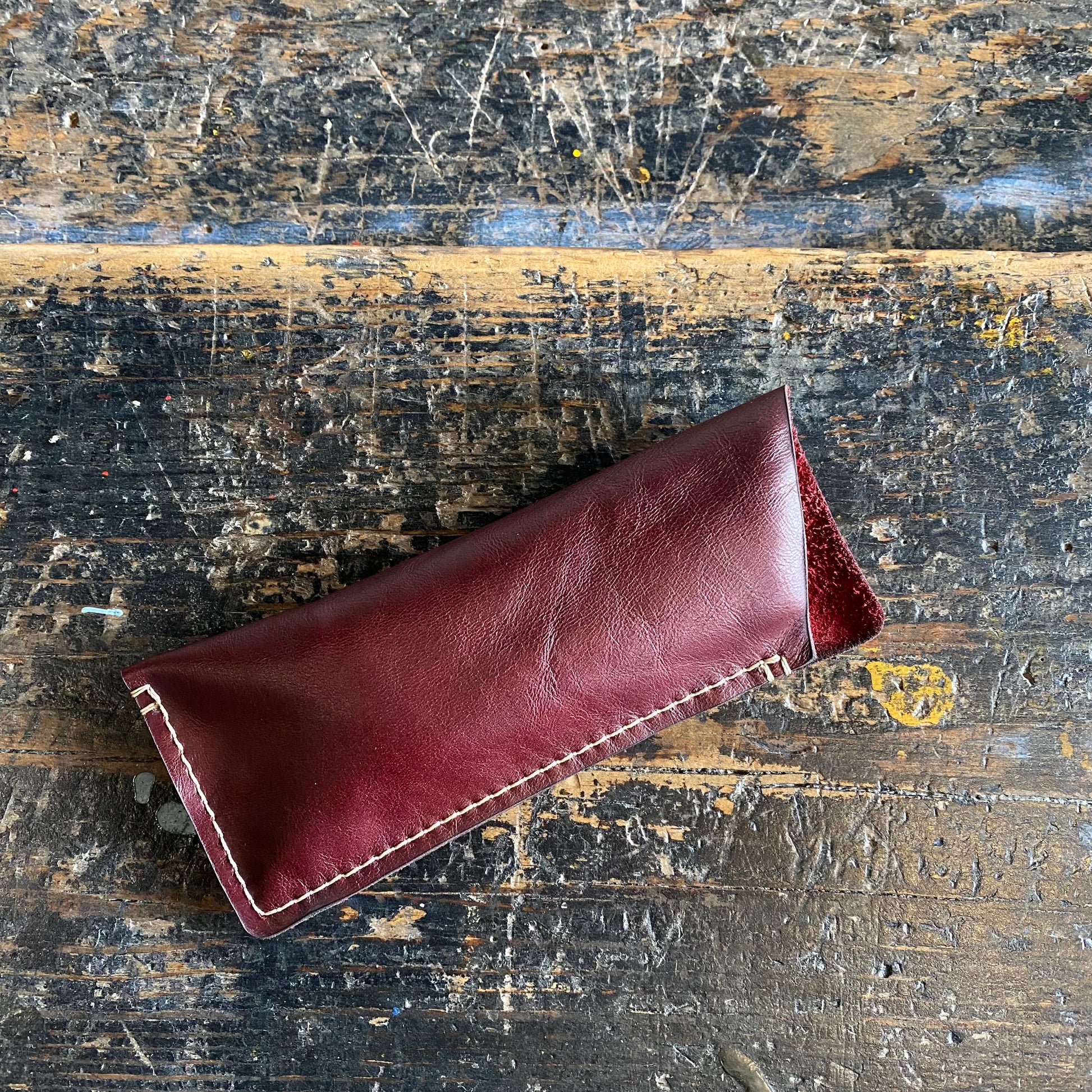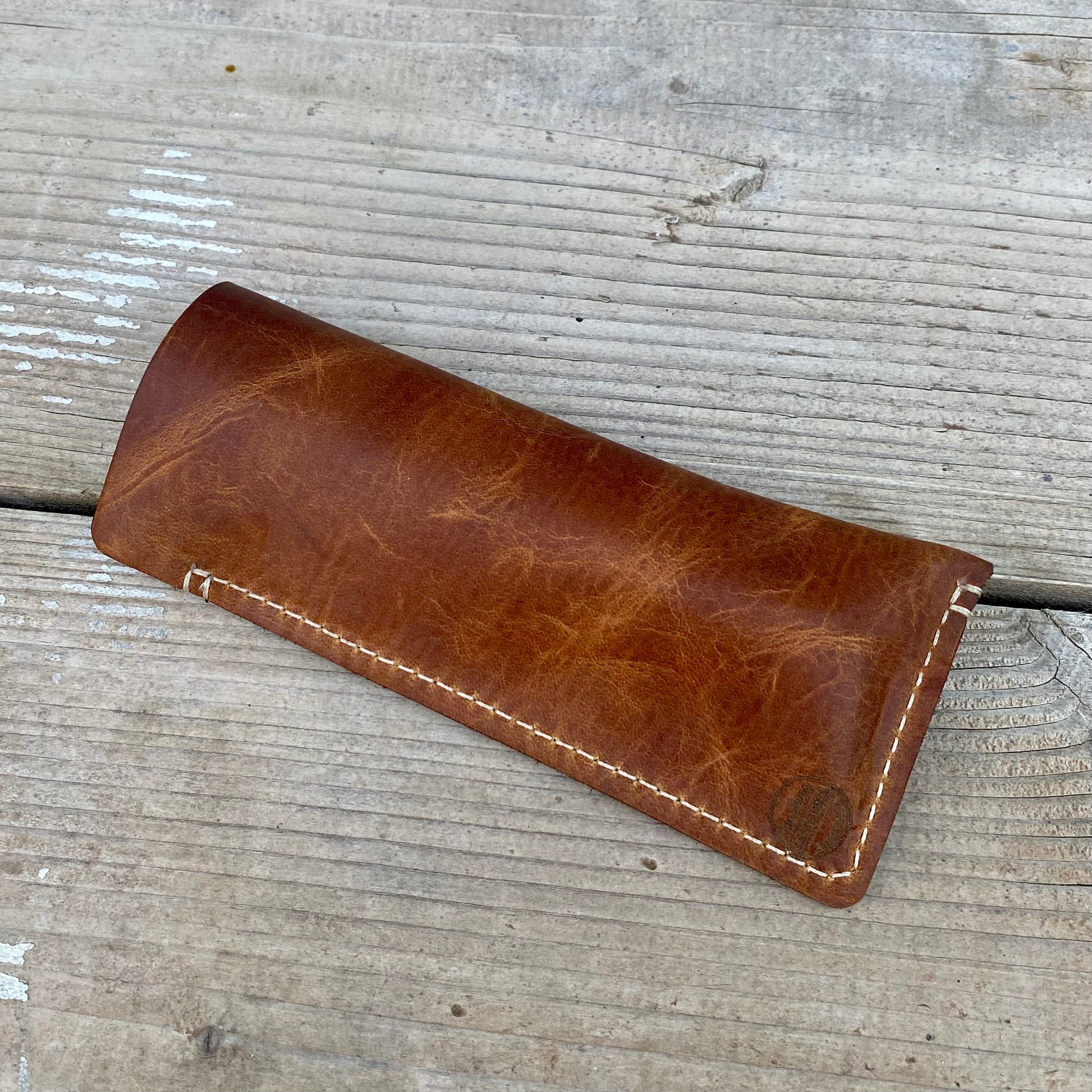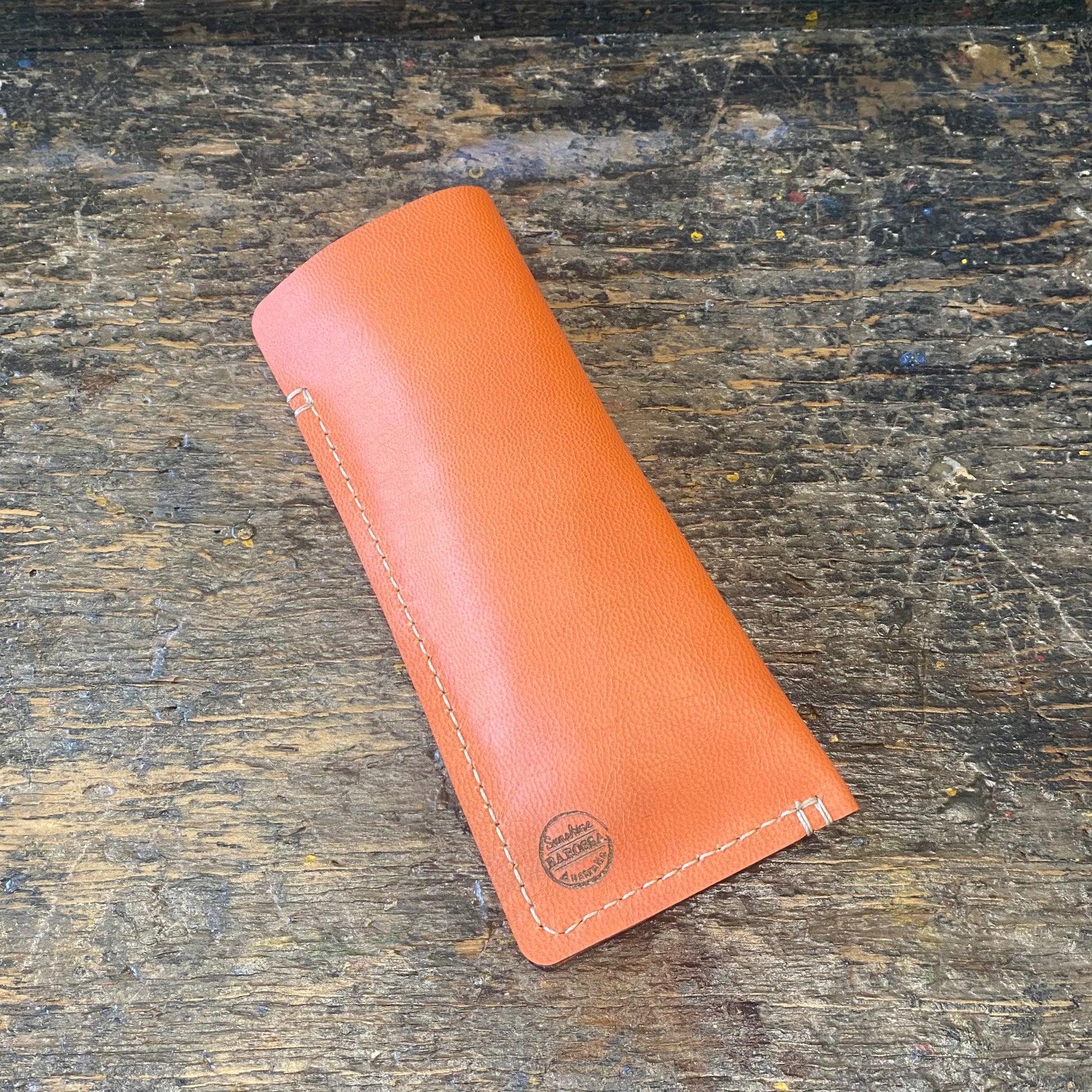 These hand crafted glasses sleeves are made of stunning buttery soft leathers. Usually upholstery leathers with a vintage feel which are extremely soft, yet hard wearing, so they will be with you for a very long time getting better with age. These pieces are suitable for anyone needing a smaller more practical way to house and transport their glasses. With the style of leathers used they will stretch around most glasses like a glove.