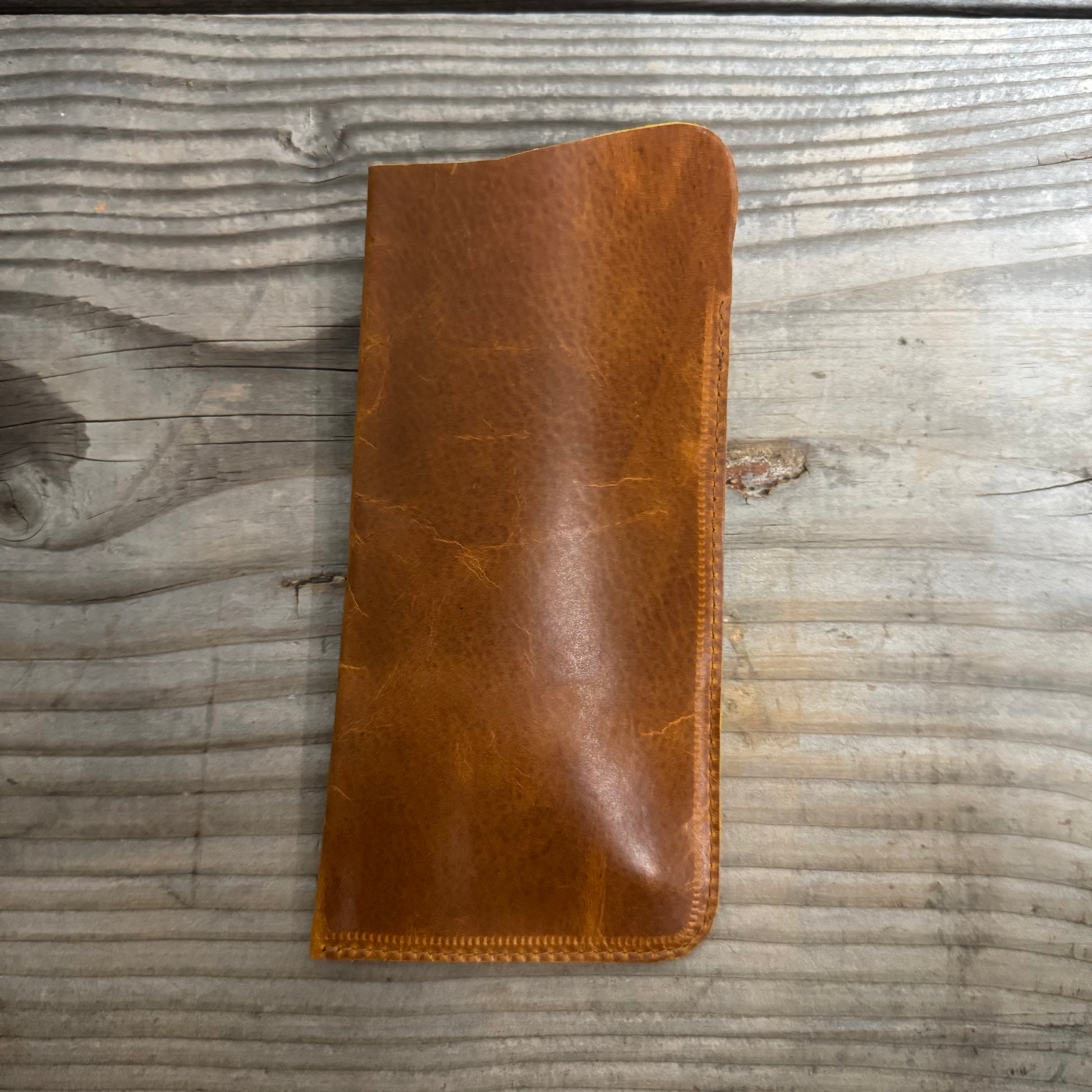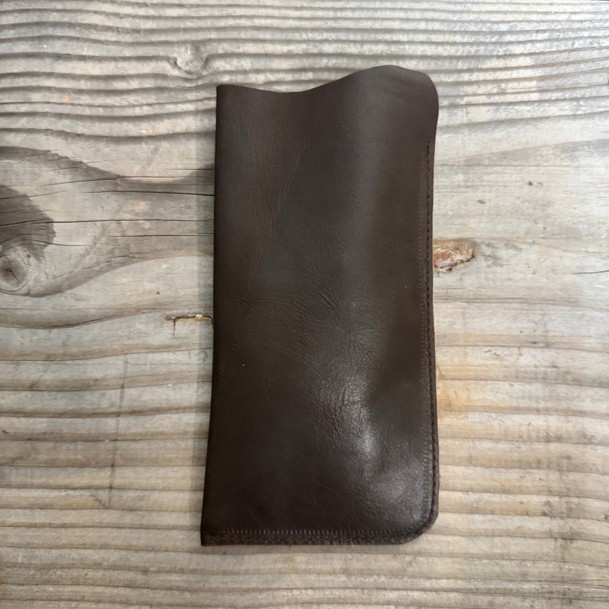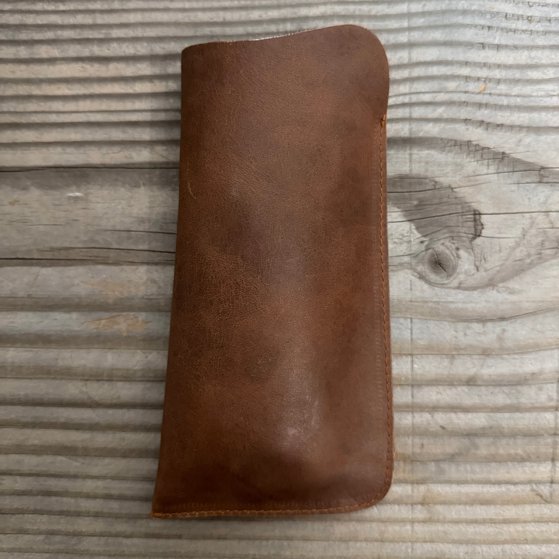 These hand crafted pouches are made of buttery soft yet durable cow leathers. The elegant, simple design is classy yet versatile, pairing beautifully with anything else in our range. The soft leathers will ensure your glasses or belongings don't get scratched or damaged while inside and with the style of leathers used, they will stretch around most glasses or items like a glove. These pieces are suitable for anyone needing a smaller more practical way to house and transport their glasses.