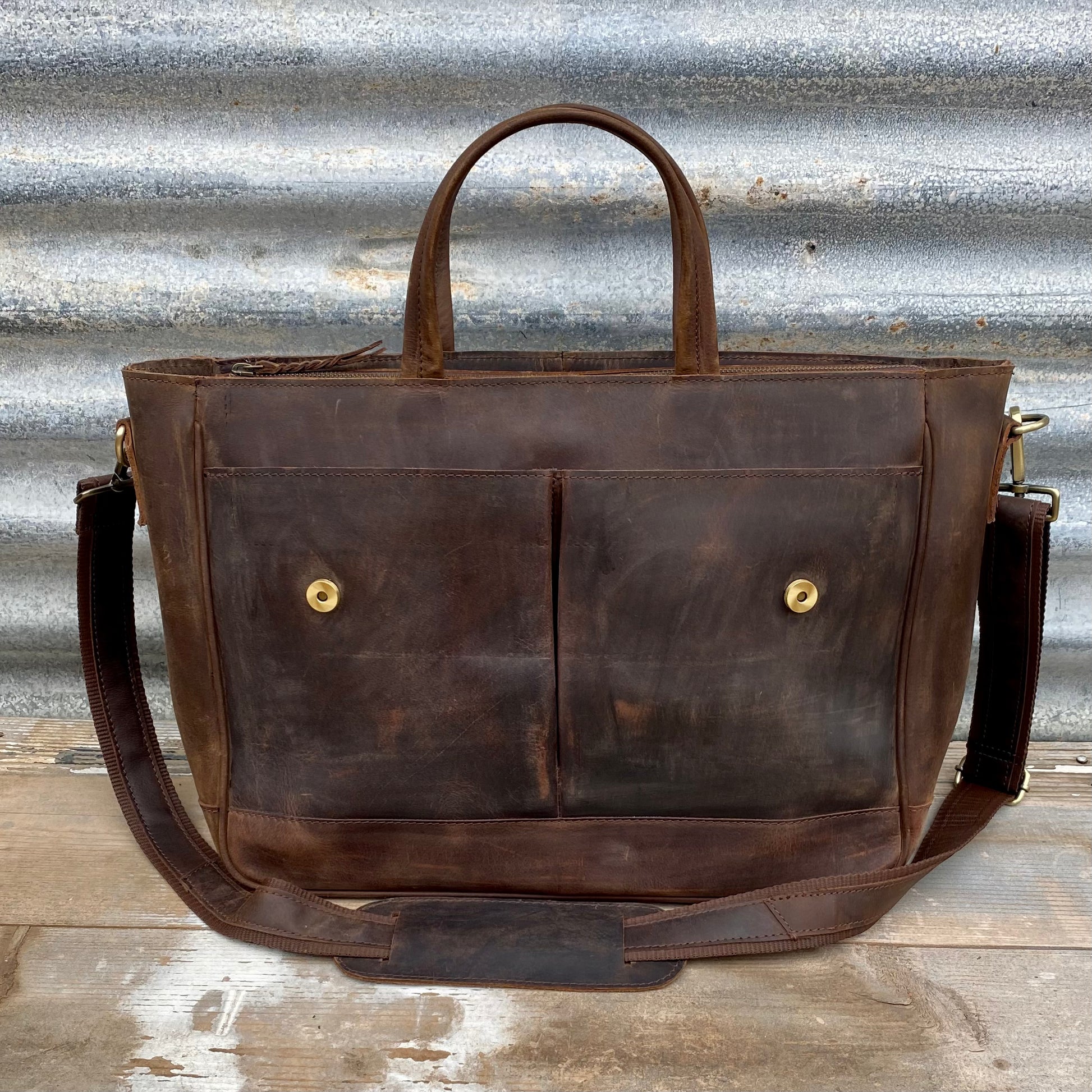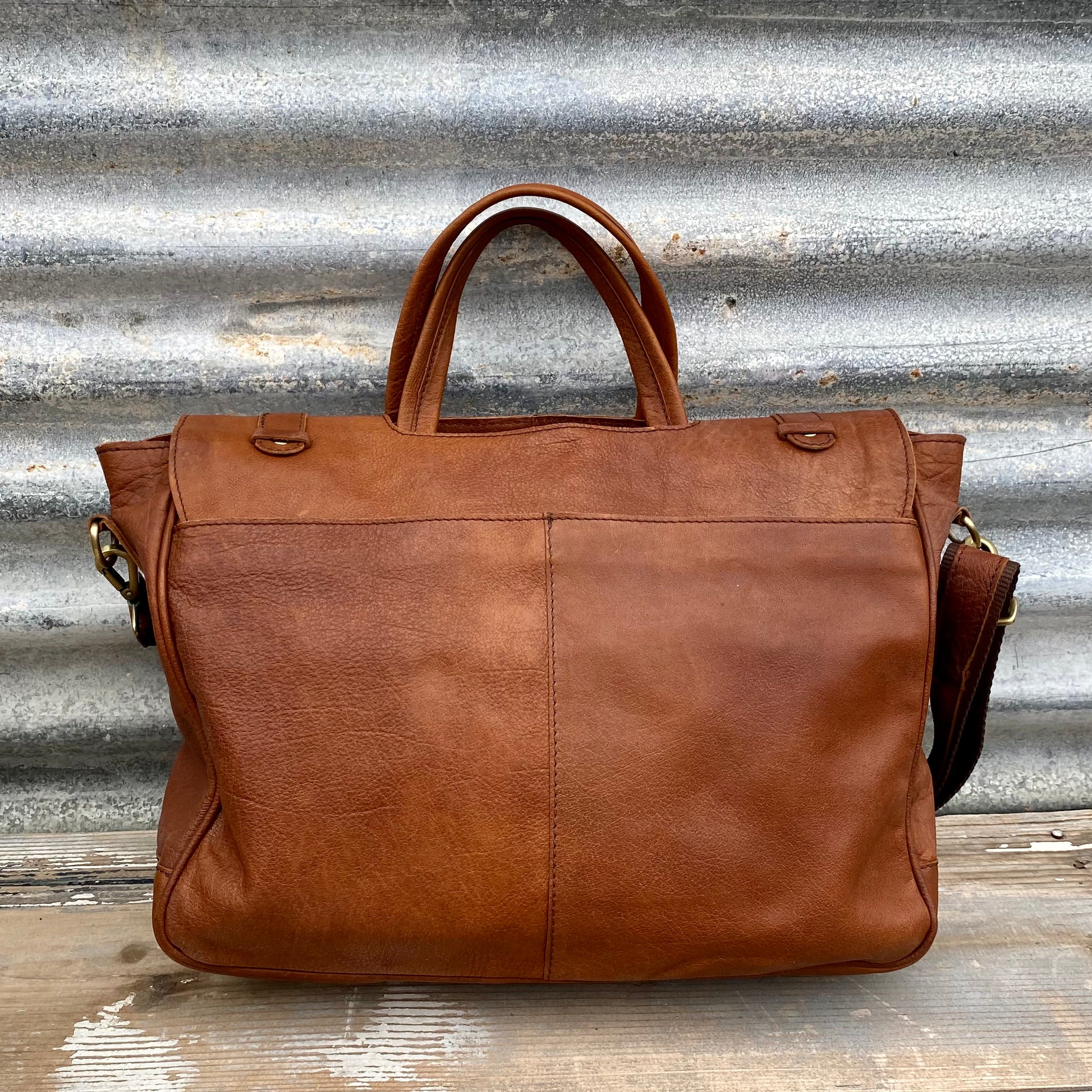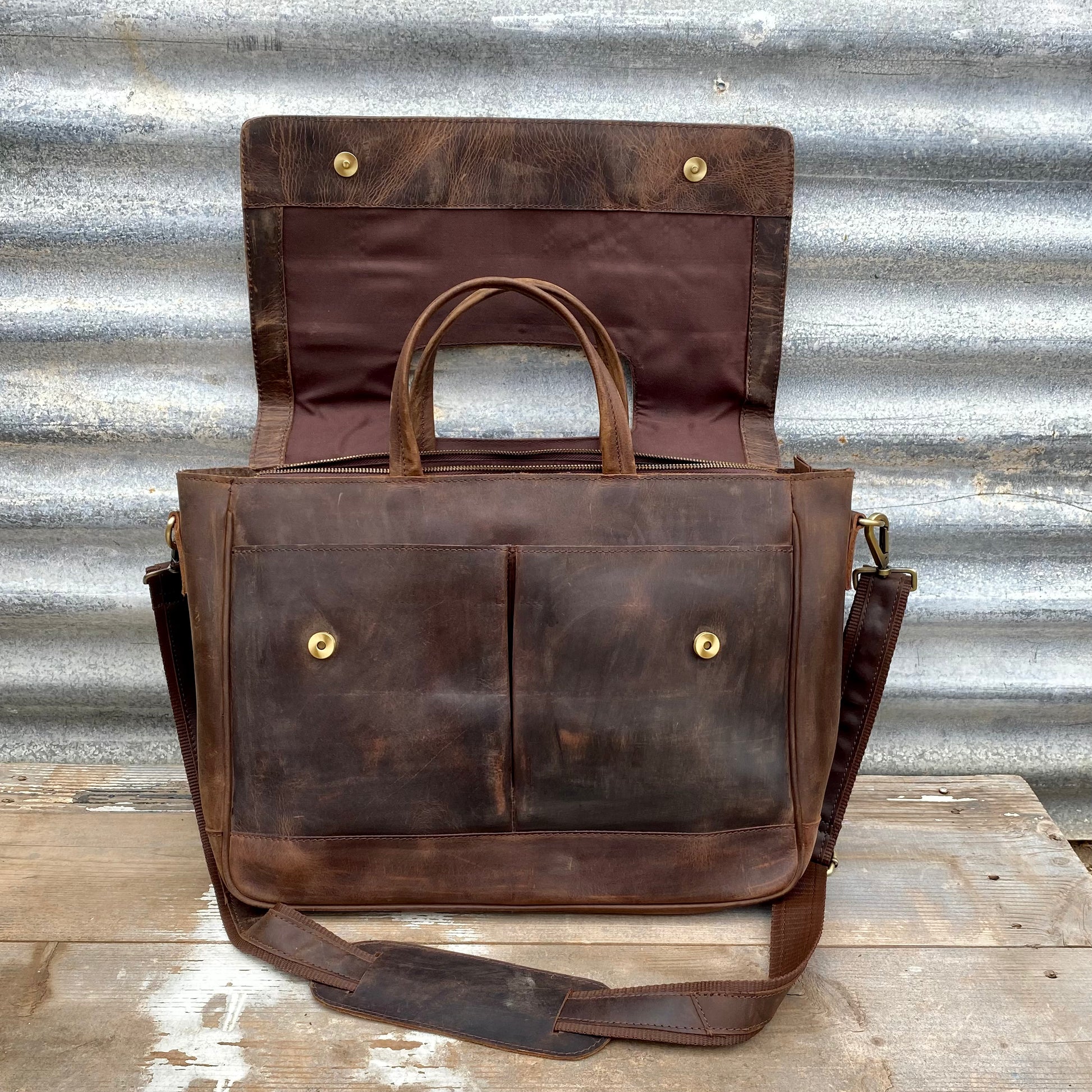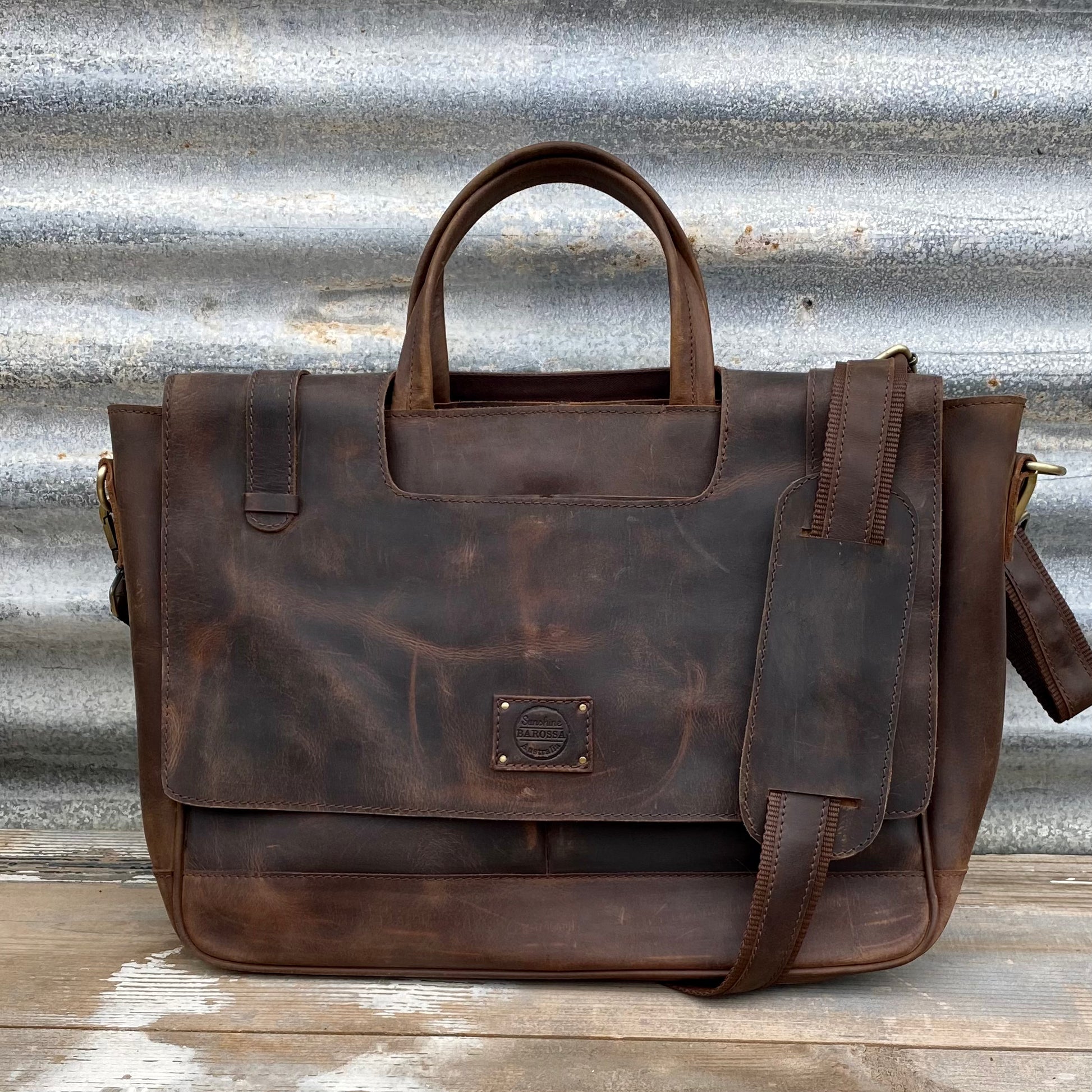 An exquisite piece of craftsmanship, the Buffalo Hide Laptop Satchel is the only work bag you will ever need. Crafted from gorgeous, durable Buffalo leather, this satchel, when properly cared for, is sure to see you through all your working days and beyond. Adorned with high quality heavy-duty antique brass hardware, a signature of Sunshine Barossa designs, this satchel will certainly last the distance.