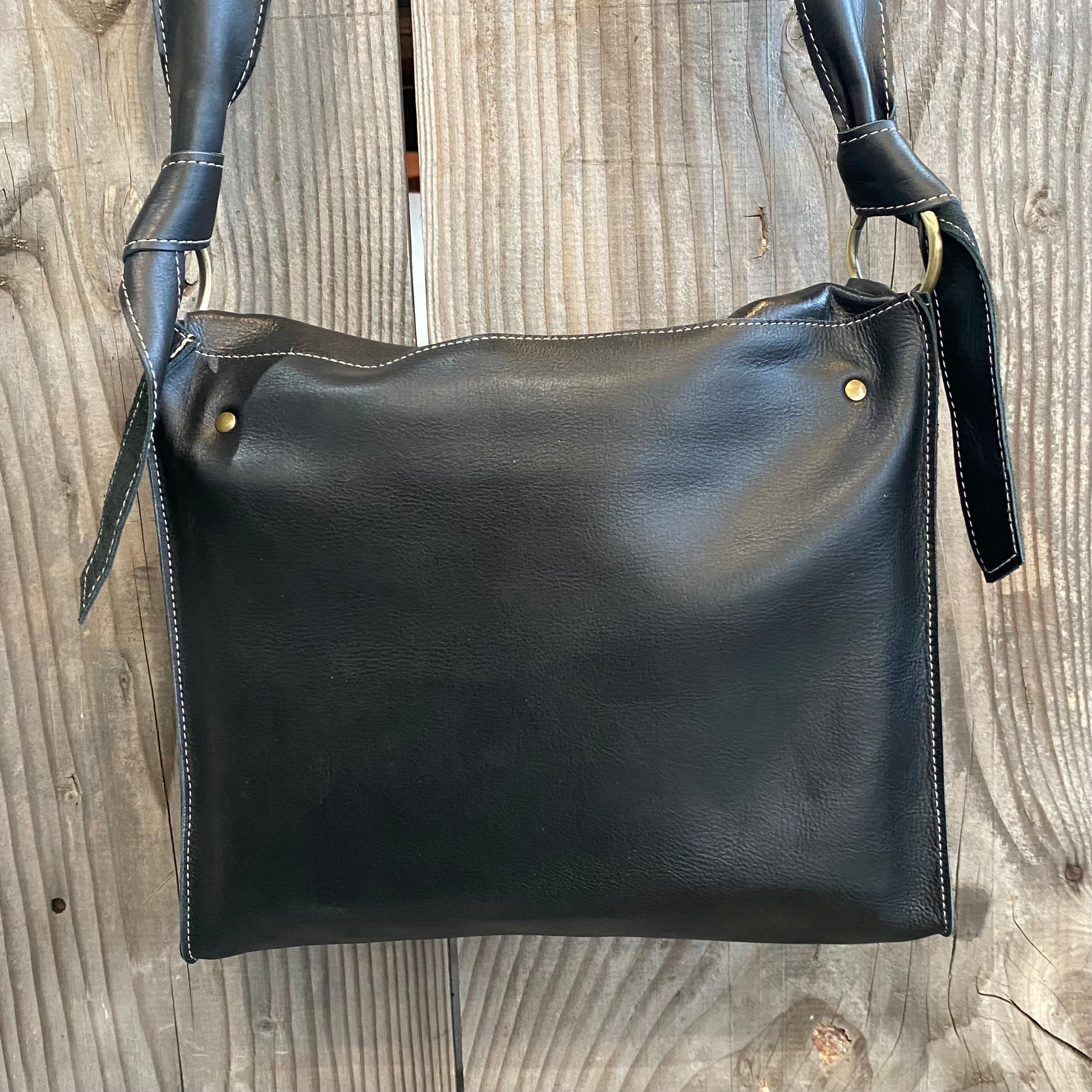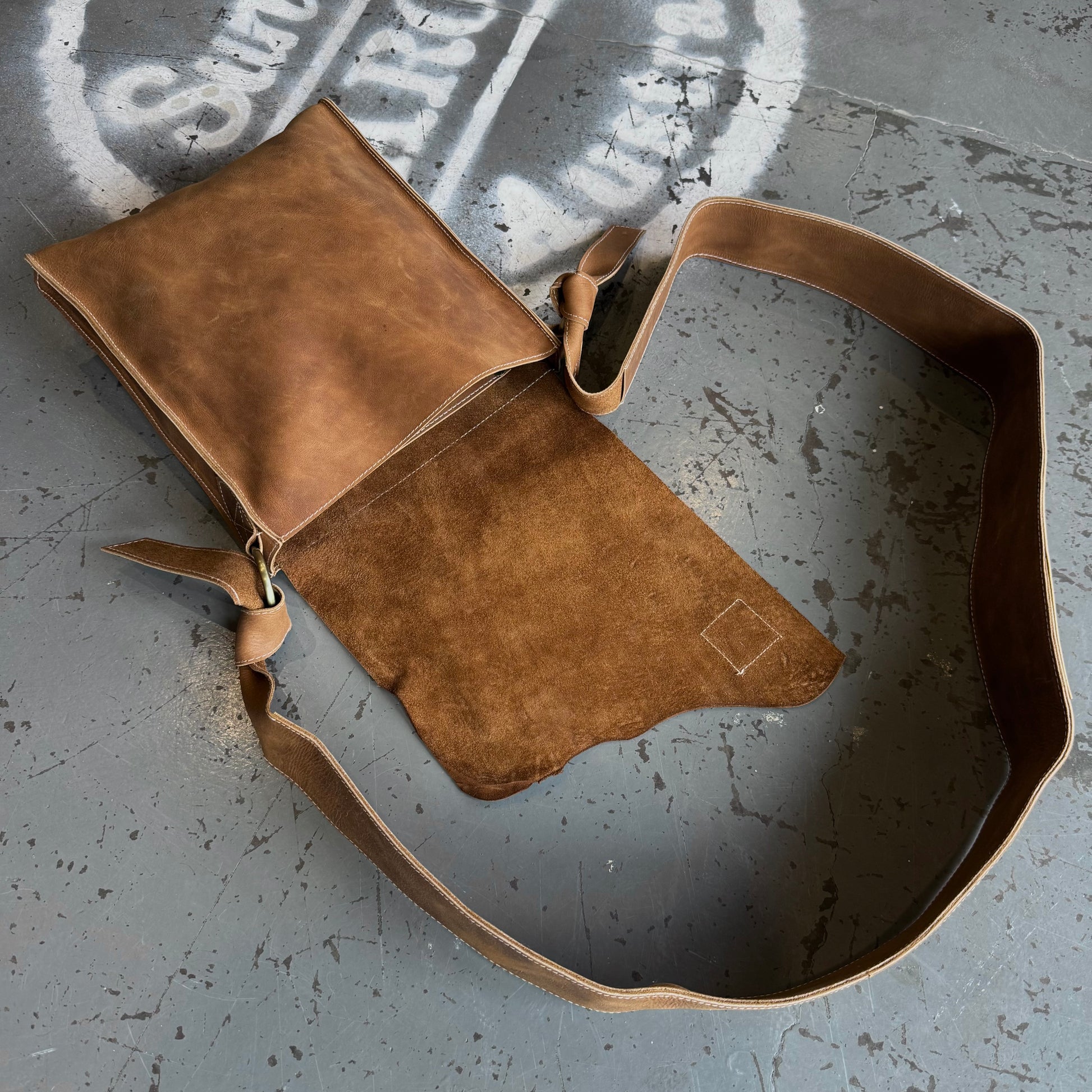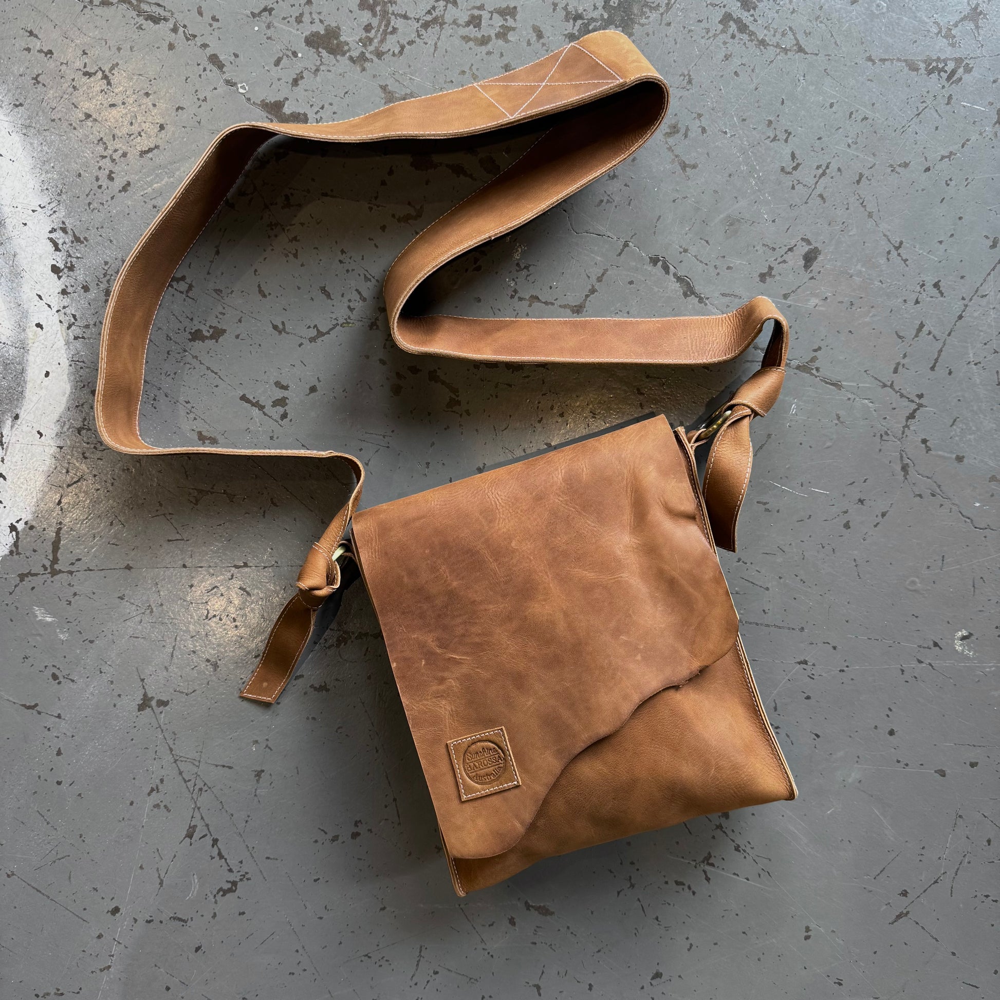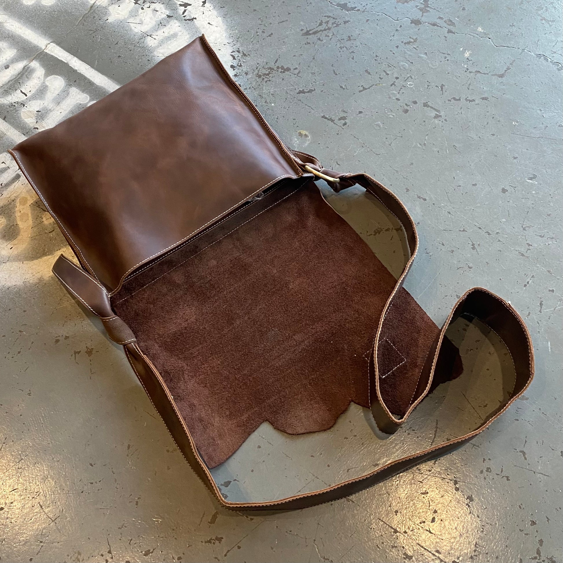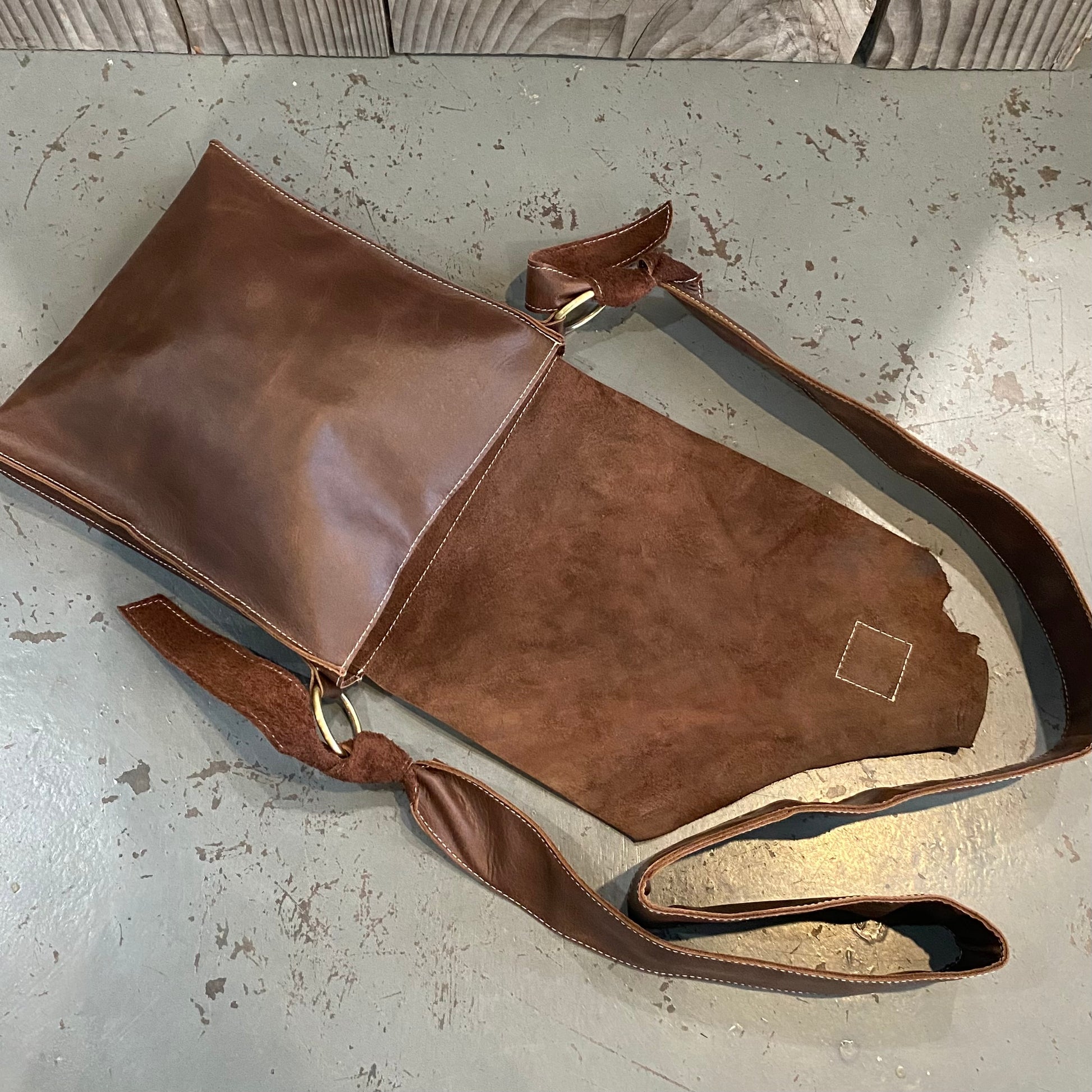 These satchels sit across the body with ease with a wide leather strap for comfort. The straps are wider in the middle and tapered towards the ends so they can be knotted onto the antique brass rings. This is the way you adjust the strap to suit exactly how you want to wear it and the soft durable leather will mold to your body to give you a very comfortable-to-wear bag.