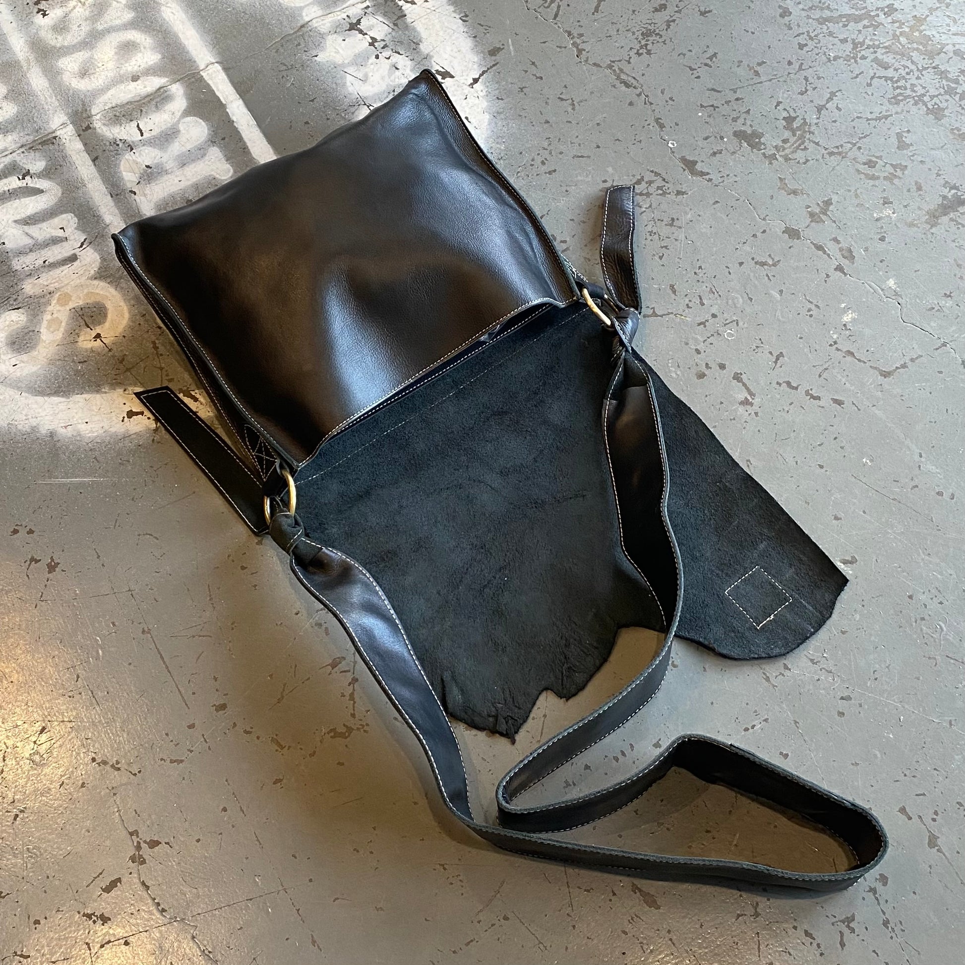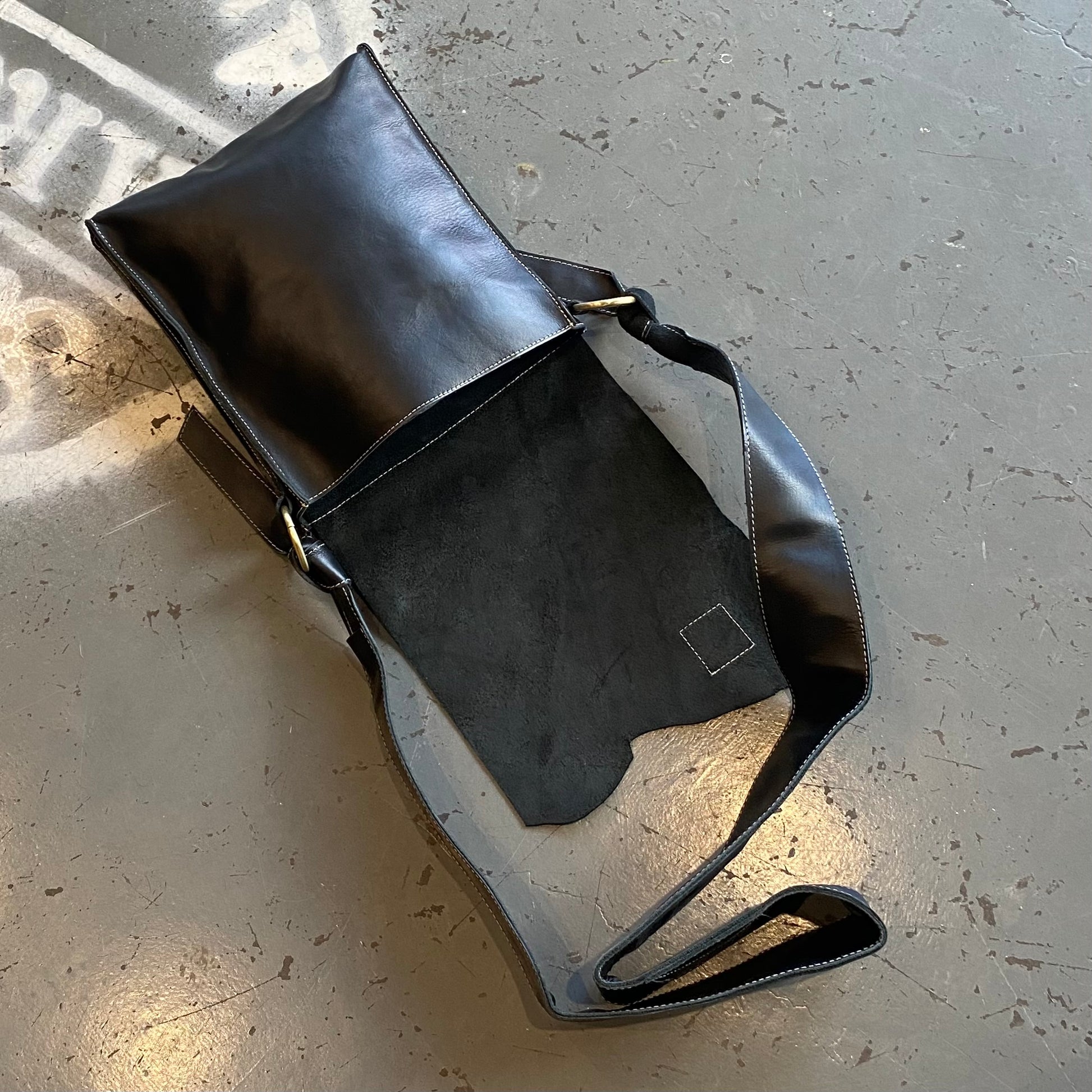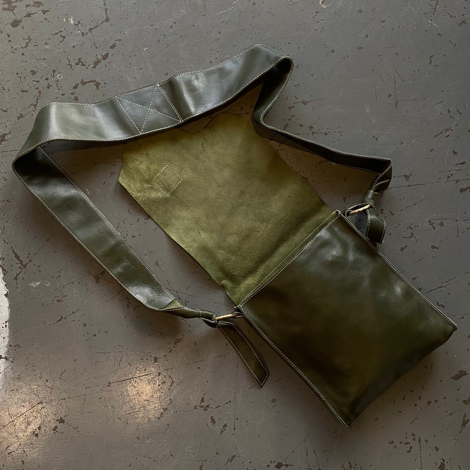 1. a satchel made out of high-quality soft leather carried across the body or on the shoulder by a long strap and closed by a flap.