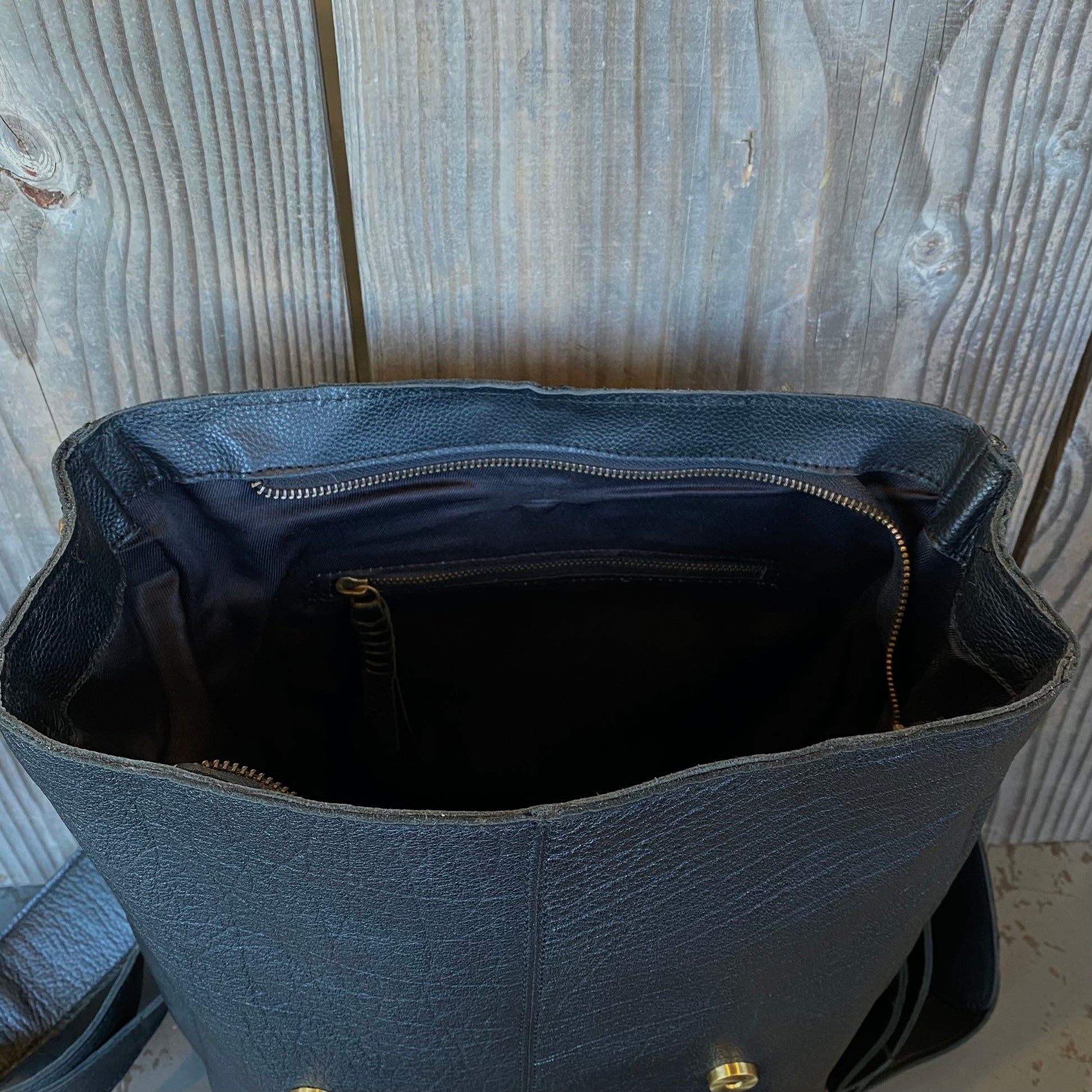 Sunshine Barossa continues its perfect finish and high-quality craftsmanship with these stunning mixture of strong and vintage leathers used to make these Traditional Leather Backpacks. There's plenty of room in this backpack! Perfect for a day that you might need gym gear, school books, Uni books, or just need your hands free for your baby, children, shopping, bike riding, beaching it or a weekend getaway as the zippered opening makes the bag very secure and the pocket at the front with press studs is easy access to your phone, keys etc.